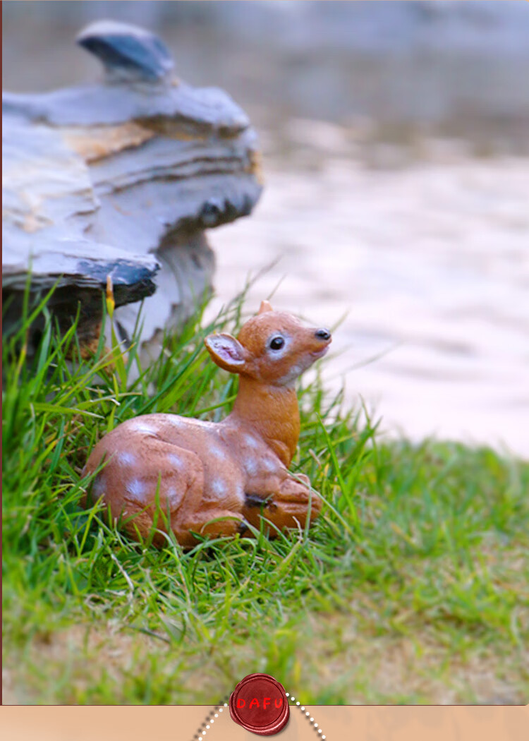 Leaves move with the wind in the outdoor courtyard, simulated sika deer ornaments, resin animal model sculptures, garden furnishings, desktop entrance decorations, small sika deer