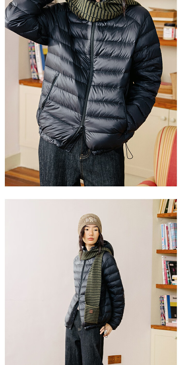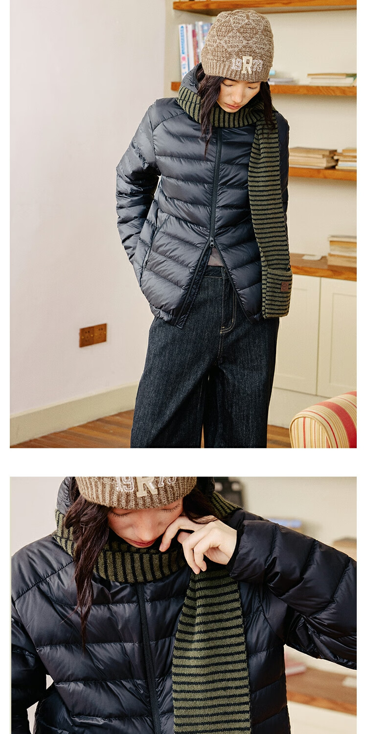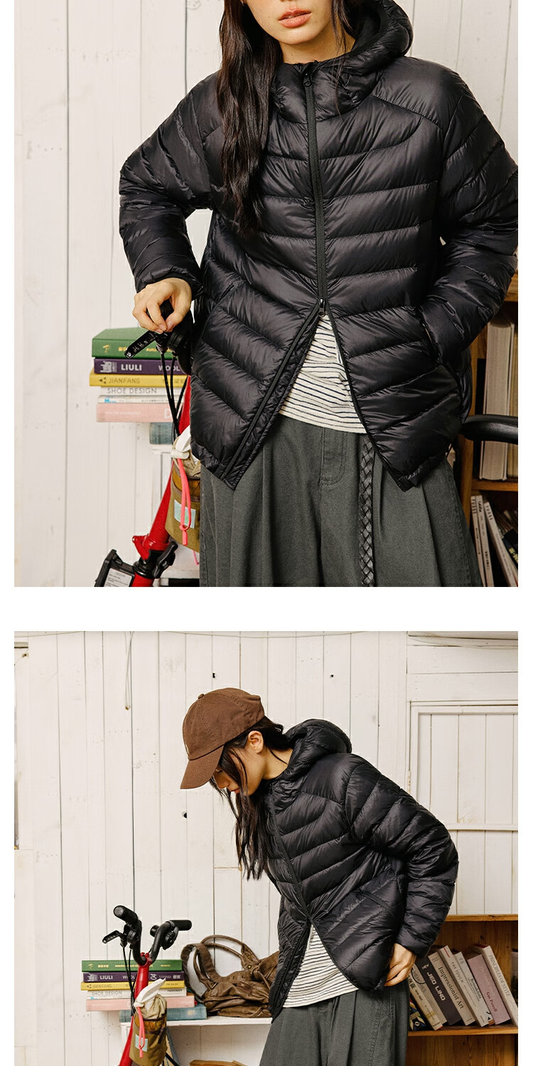 OCTOPUSME Lightweight Warm Rib Down Jacket Women's 2025 New Simple Short Jacket Black M