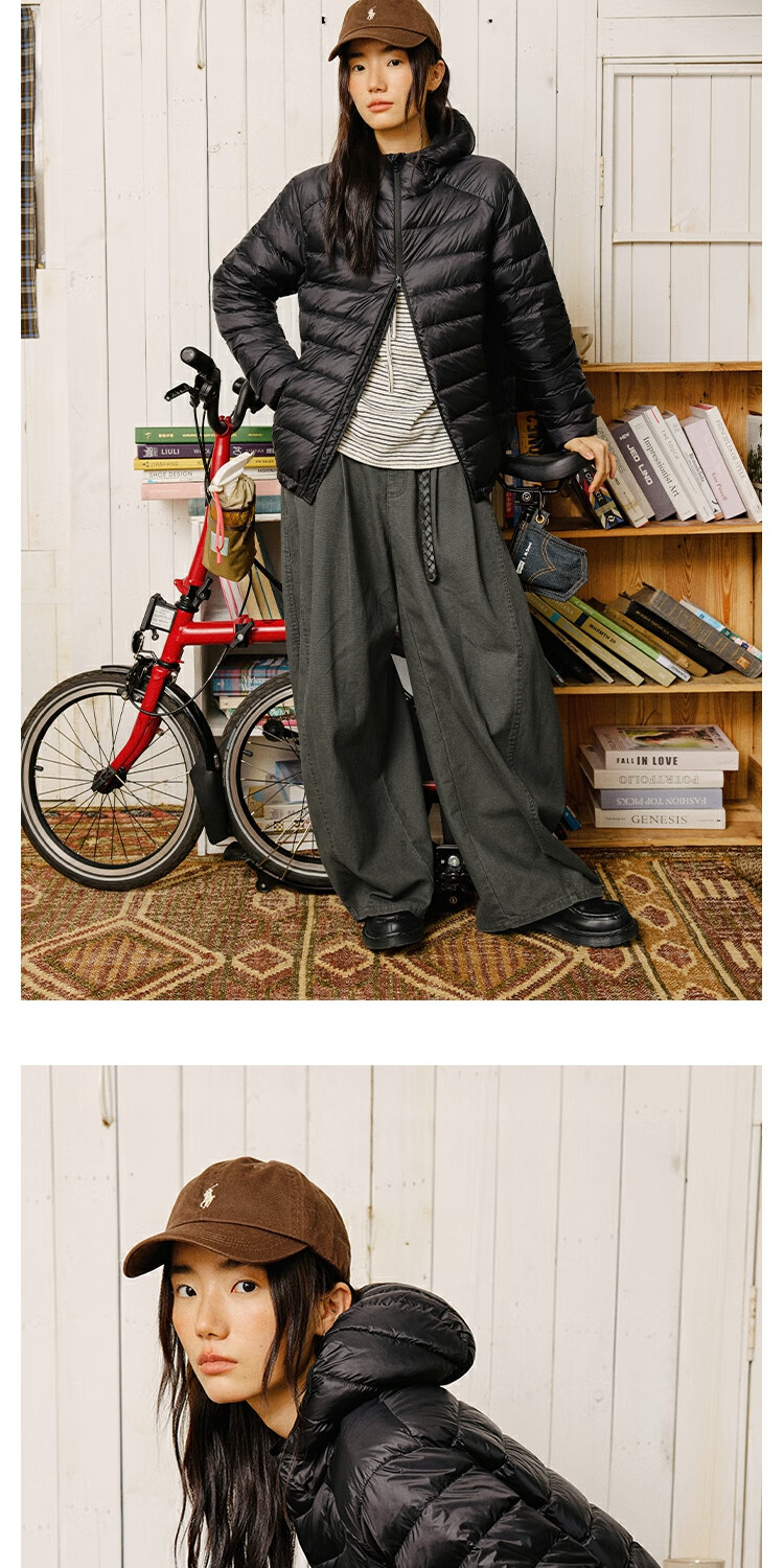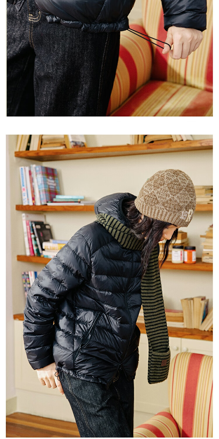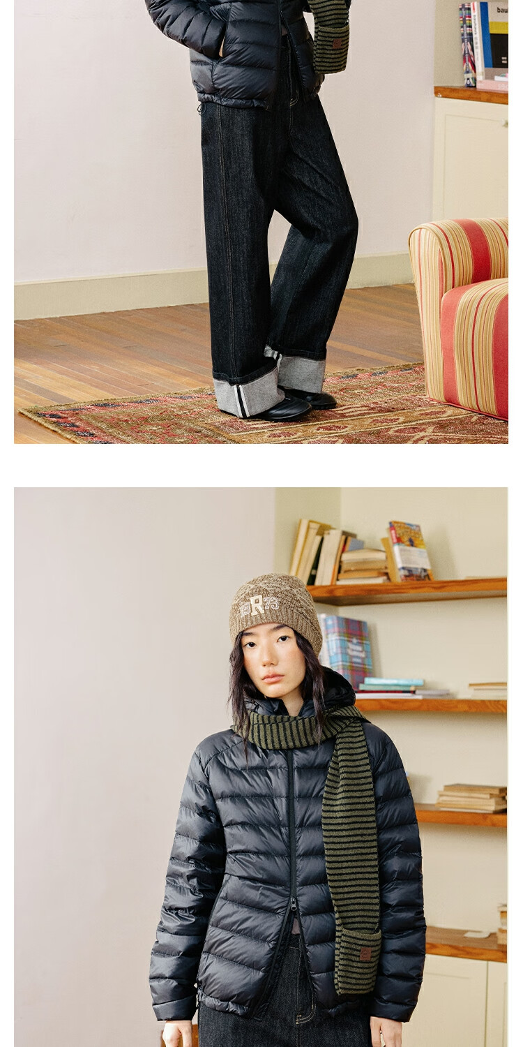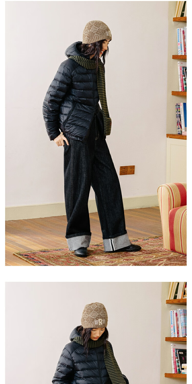 OCTOPUSME Lightweight Warm Rib Down Jacket Women's 2025 New Simple Short Jacket Black M