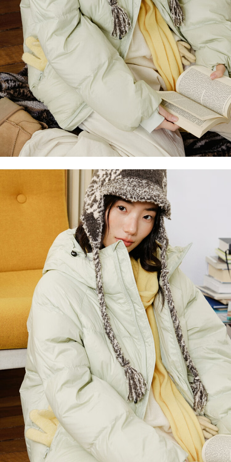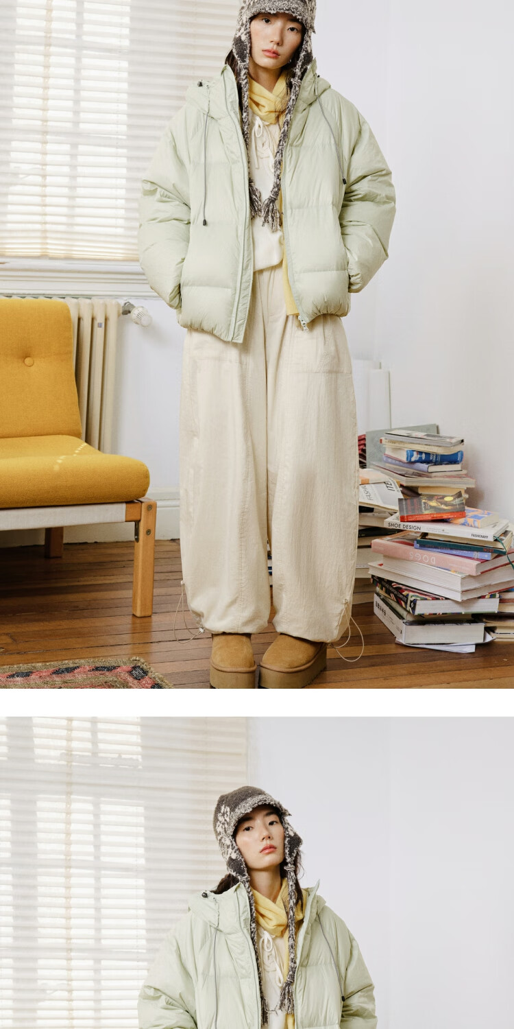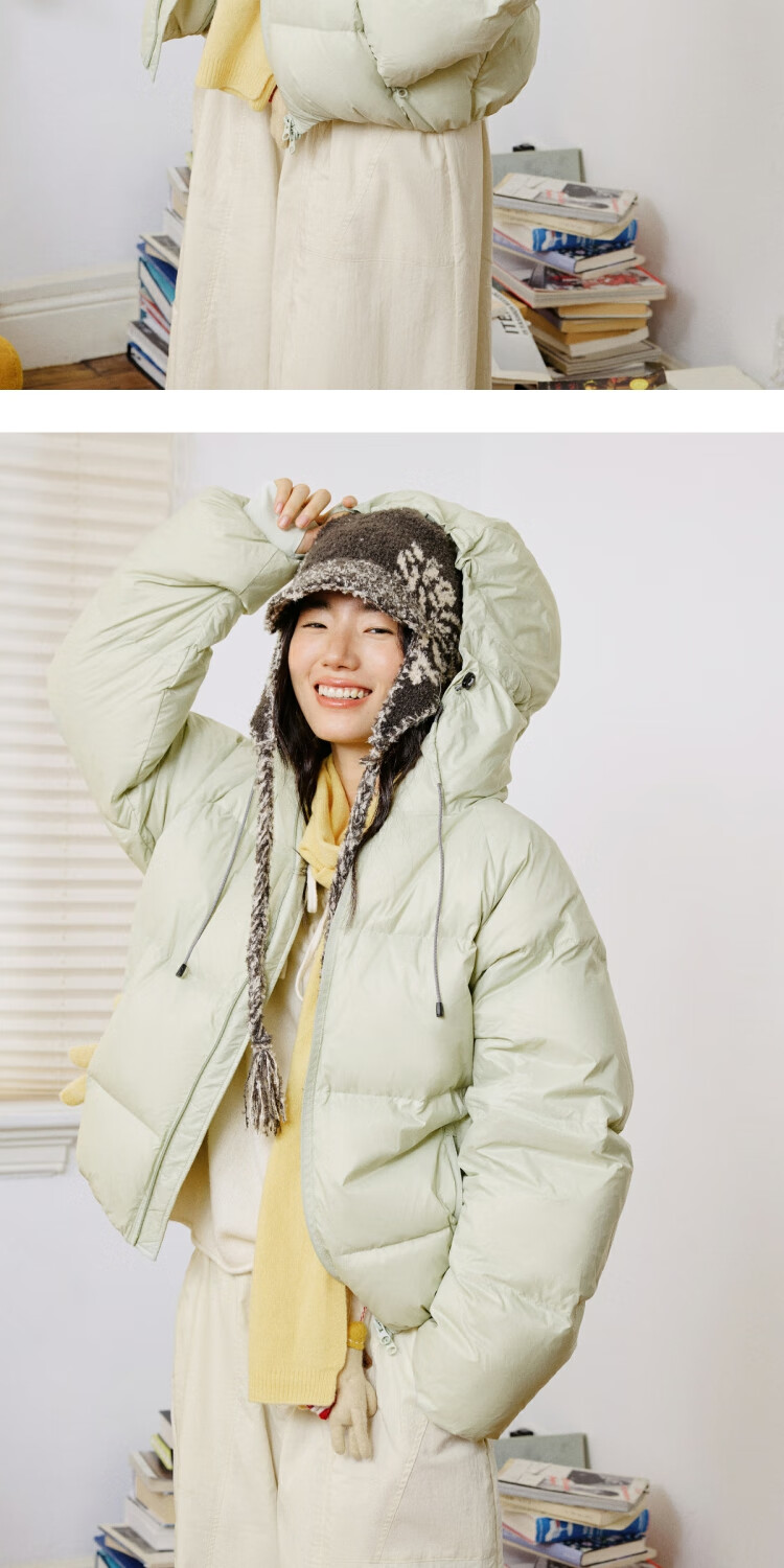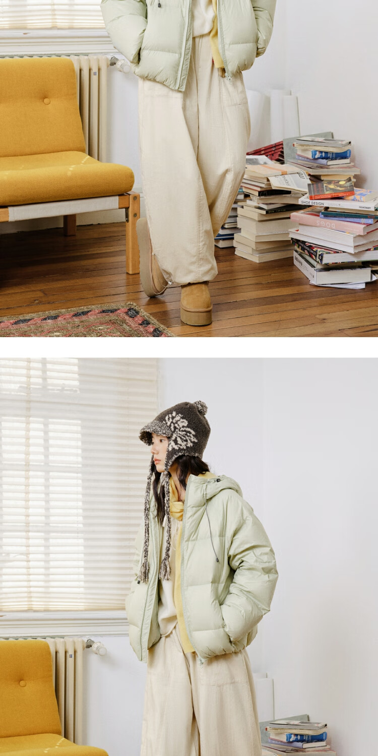 OCTOPUSME Black Hooded Lightweight Down Jacket Women's Autumn and Winter Short Warm Bread Jacket Light Green M