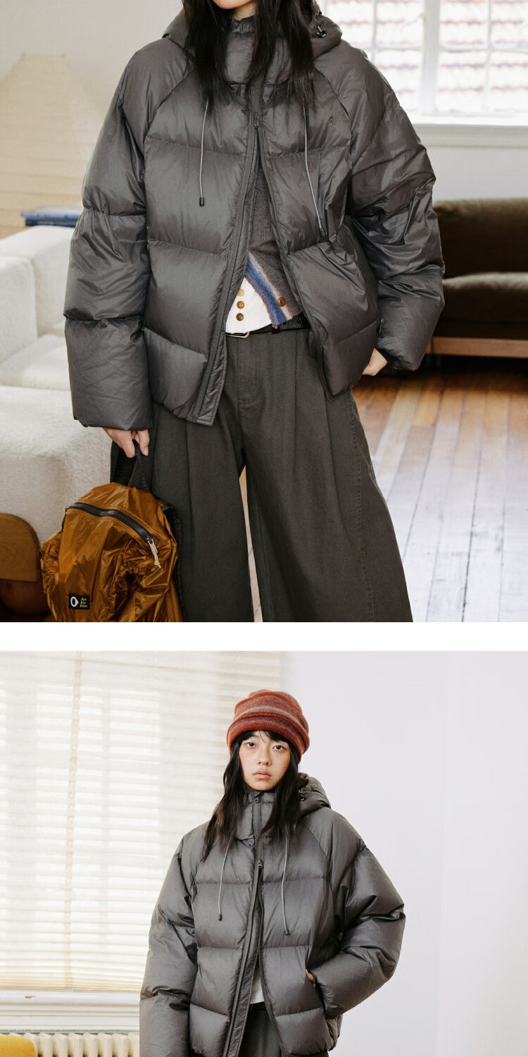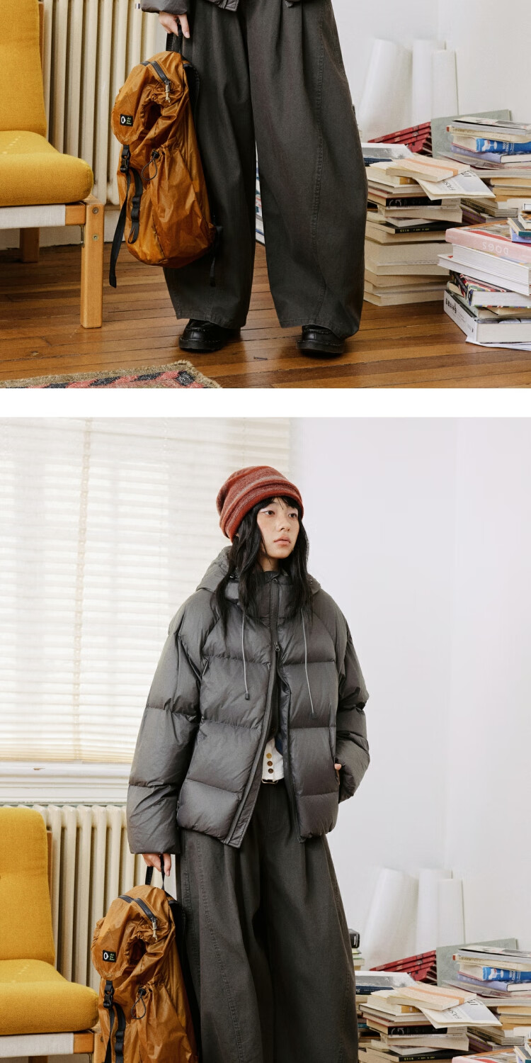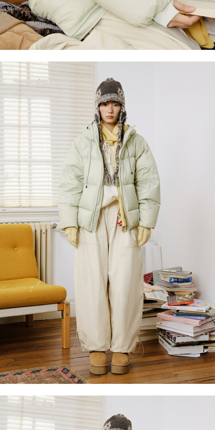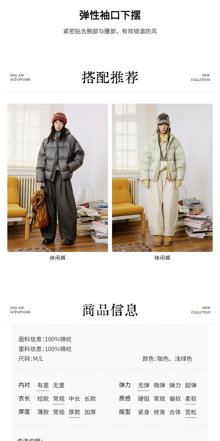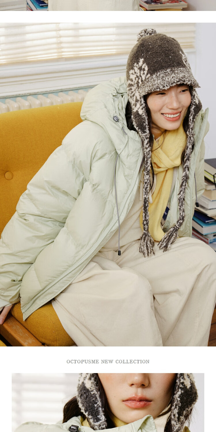 OCTOPUSME Black Hooded Lightweight Down Jacket Women's Autumn and Winter Short Warm Bread Jacket Light Green M