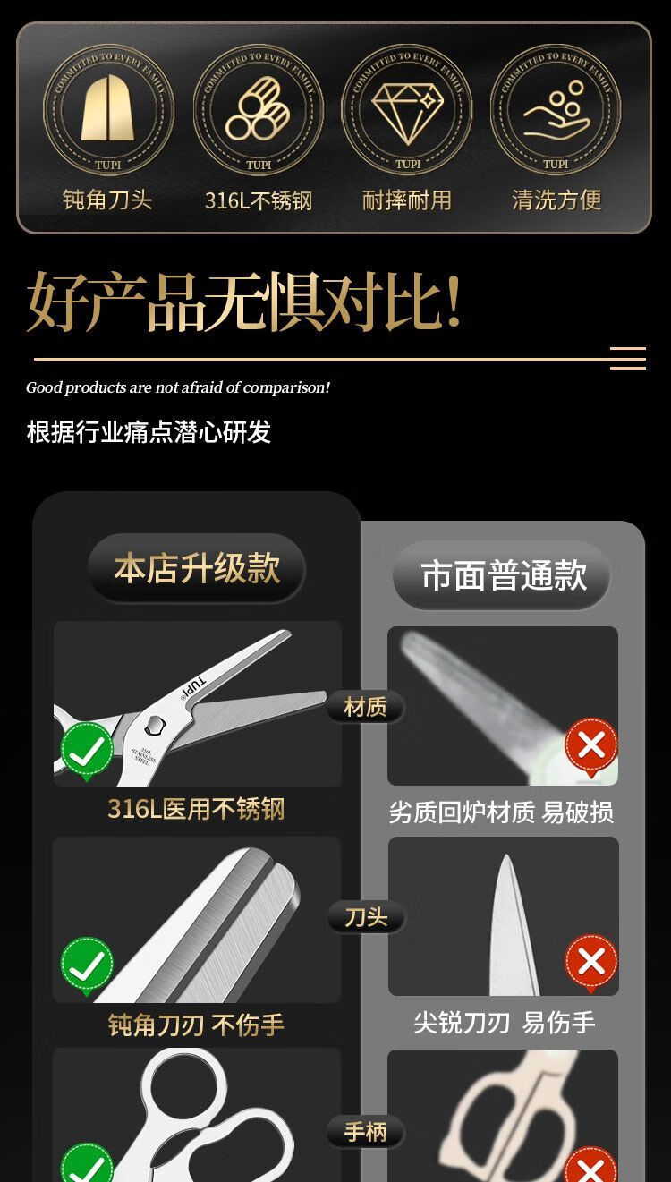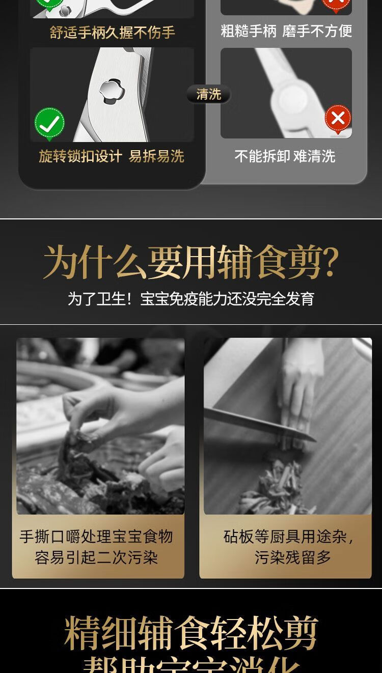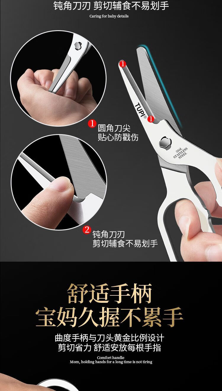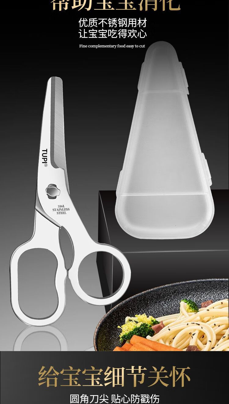 Imported complementary food scissors 316 stainless steel baby special baby food scissors Kitchen tools removable and washable scissors (14.5cm) 316 steel food grade small scissors Get two pieces complementary food scissors + complementary food box