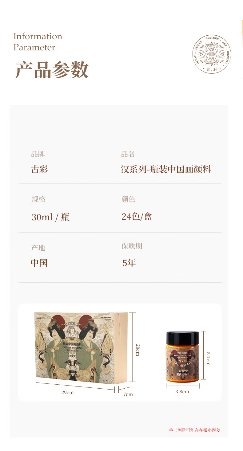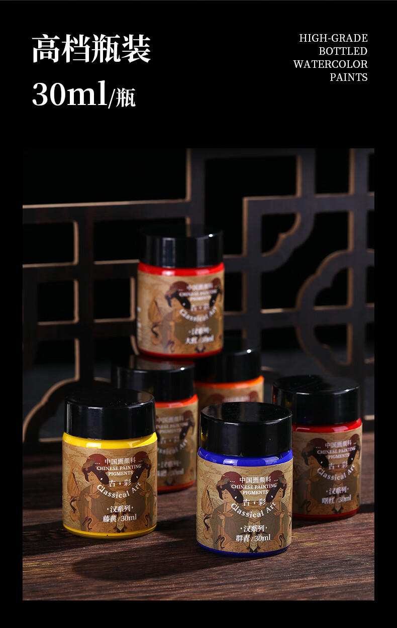 Ancient Color CLASSICAL ART Chinese Painting Pigments 30ml Set 24 Colors Professional Full Set Ink Painting Mineral Pigments Landscape Gongbi Painting Materials Rock Color Garcinia Titanium White Advanced Traditional Chinese Paintings Full Set 24 Colors