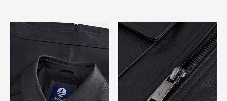 Navigare Italian sailboat lapel genuine leather jacket for men 2025 autumn new old money style cowhide jacket Dark Night Black 0979 S