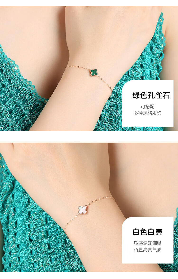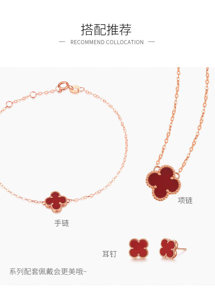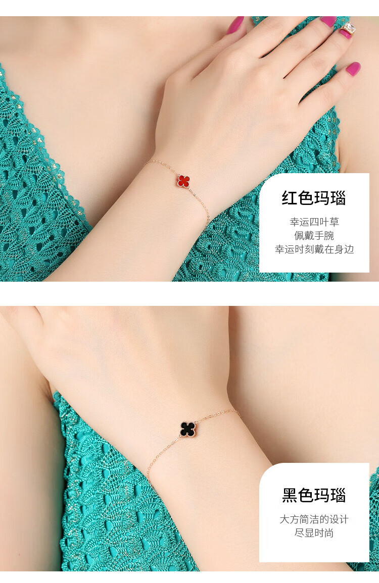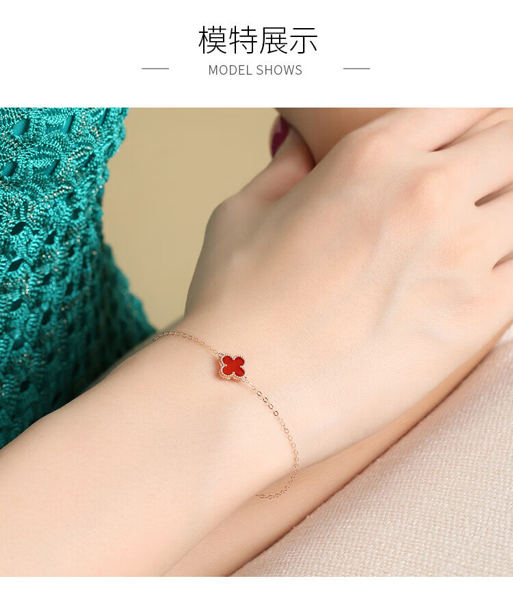 18K gold four-leaf clover bracelet AU750 color gold rose gold gold five-flower bracelet red agate birthday gift for girl rose gold red agate