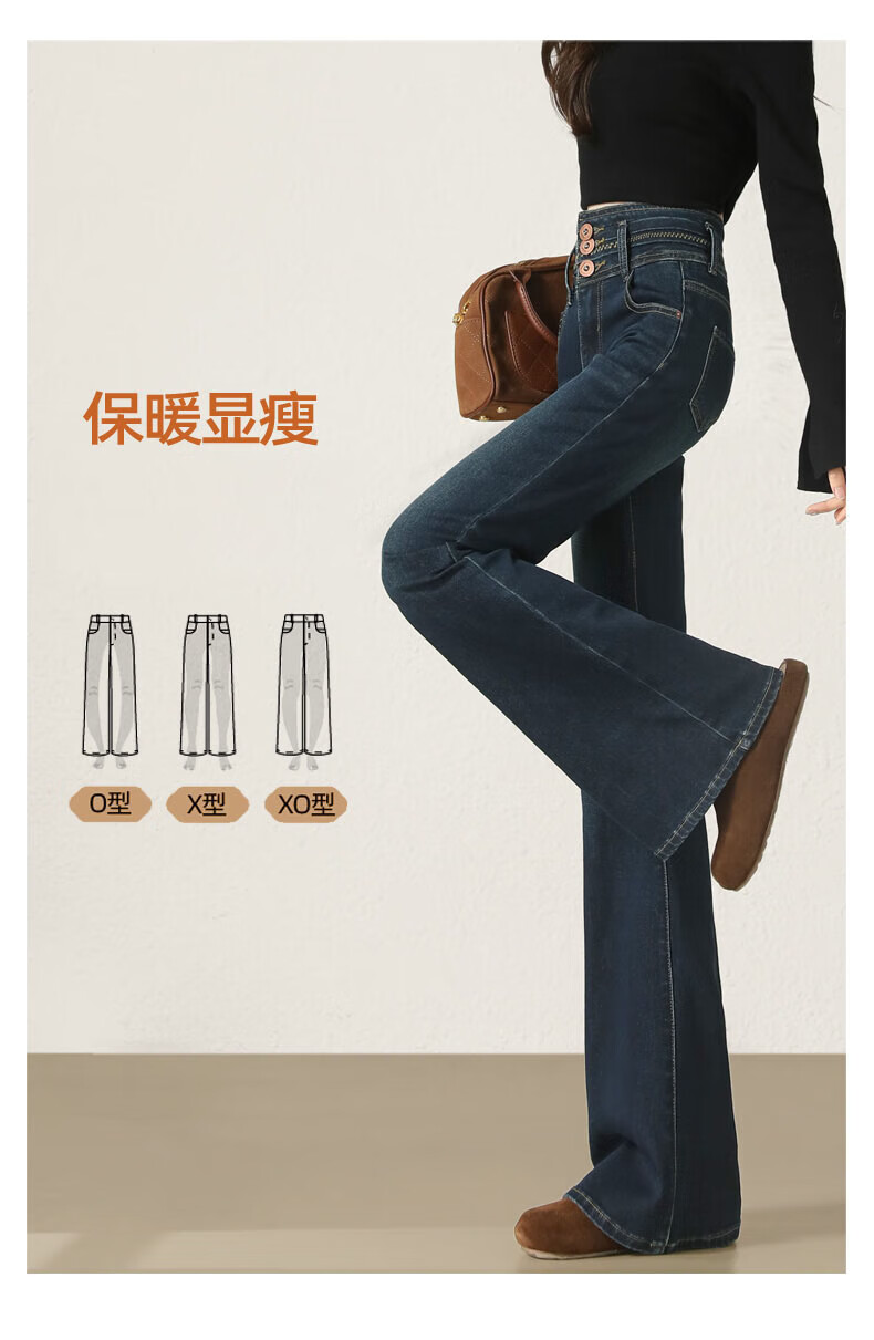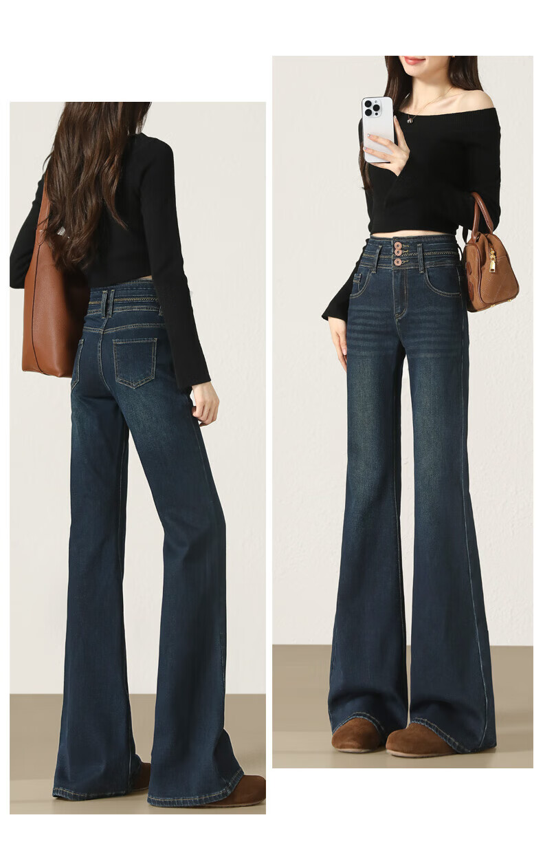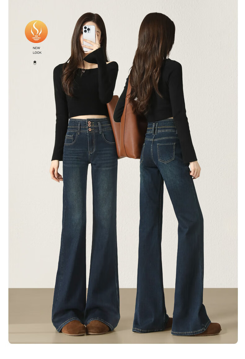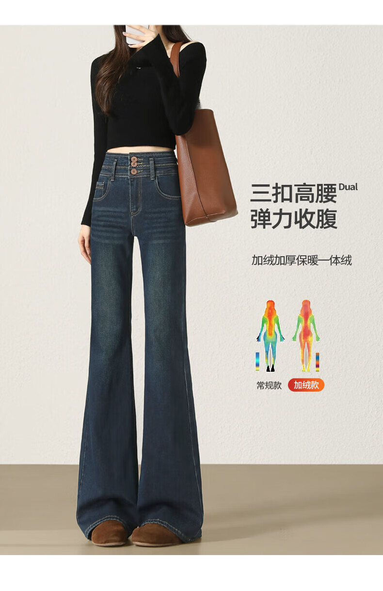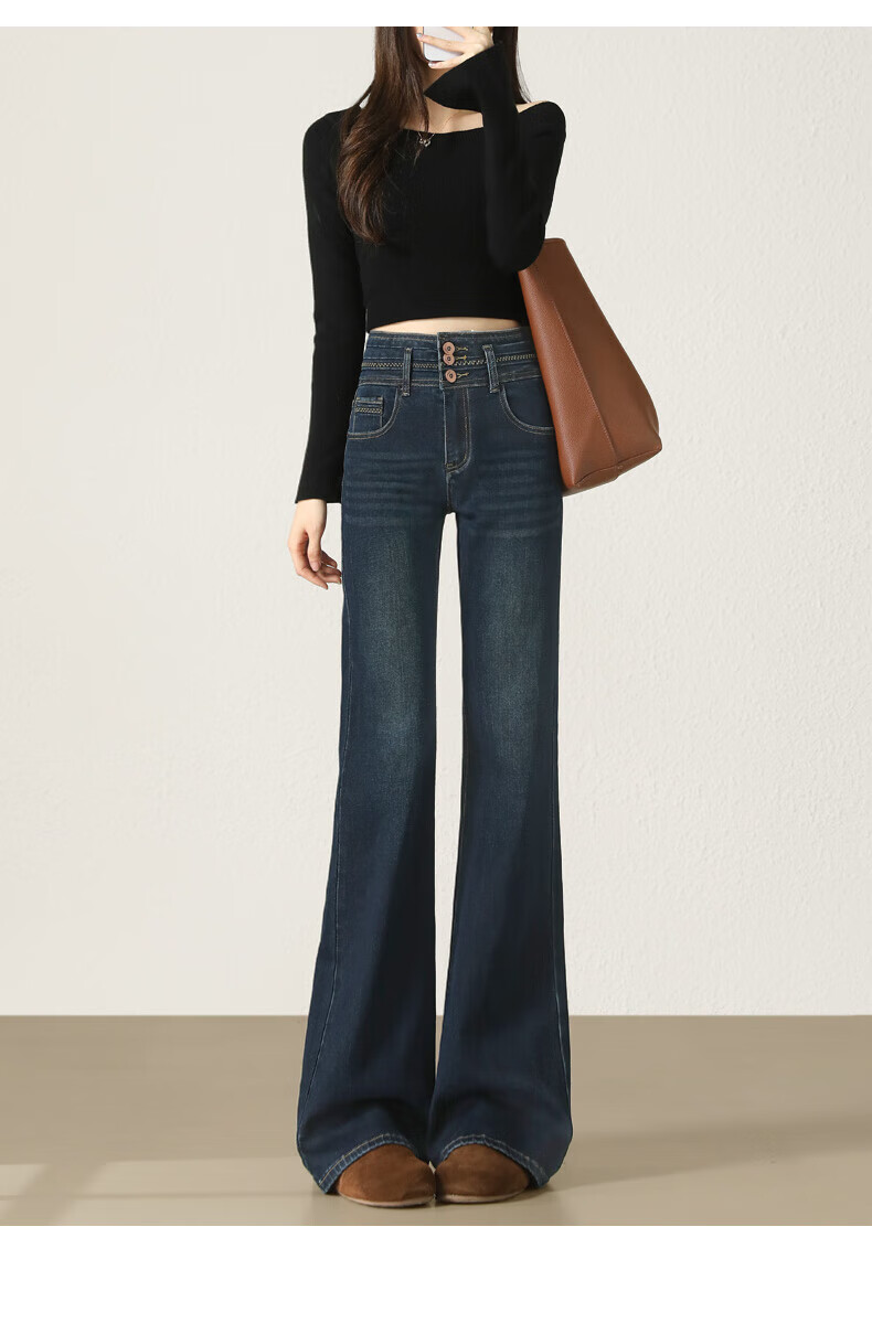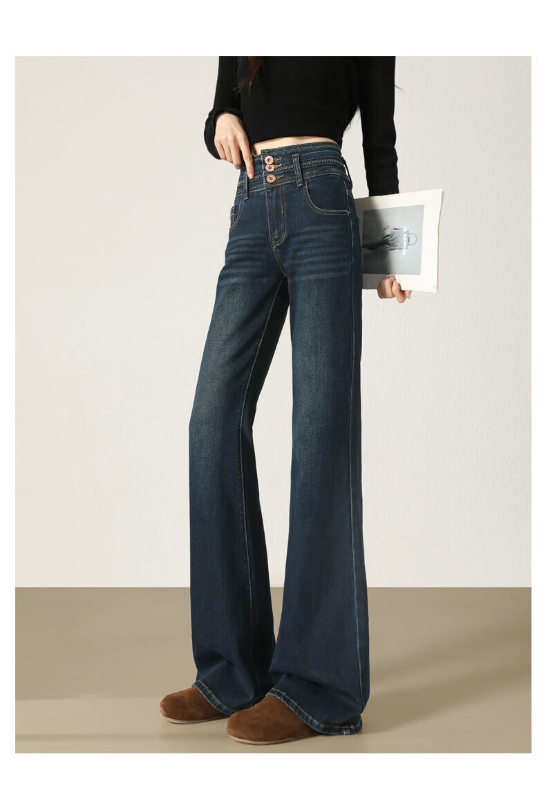 Fabesa Brand Small High Waist Velvet Bootleg Jeans Women's 2025 Autumn and Winter Slim Slim Retro Flared Jeans Women Blue Velvet S 90Jin Jin is equal to within 0.5 kg