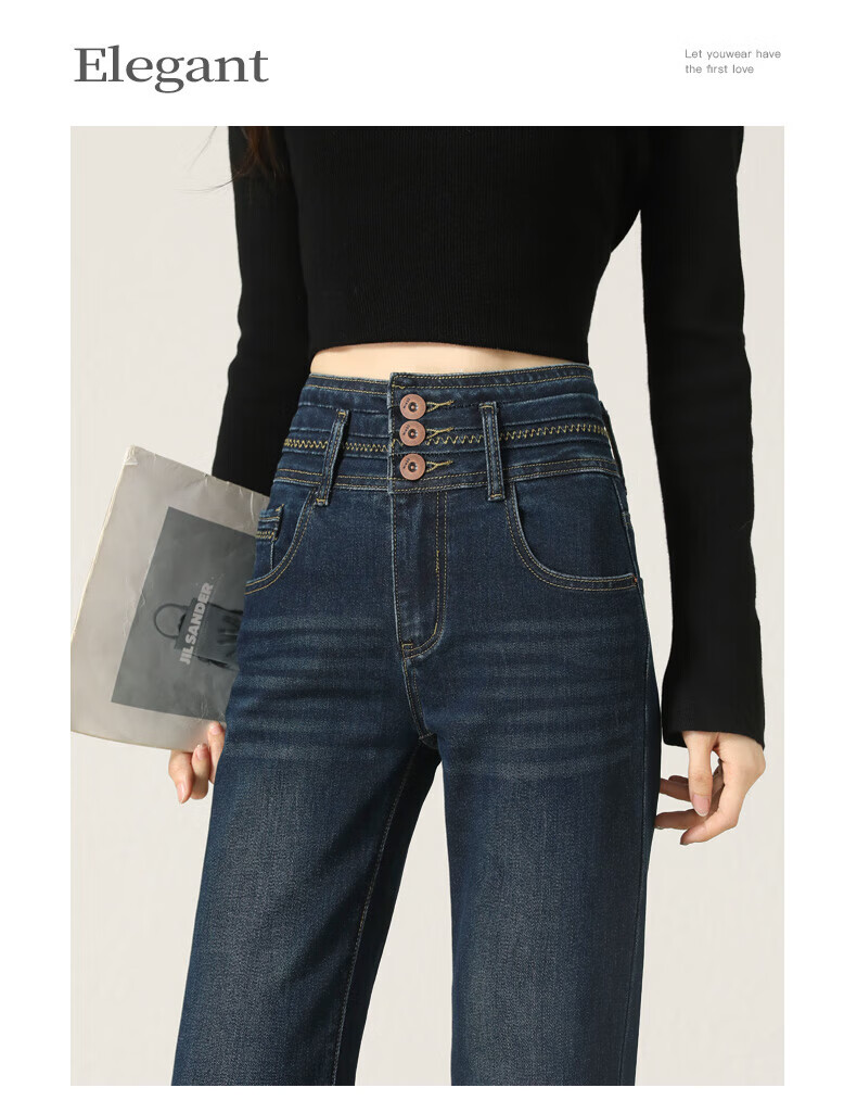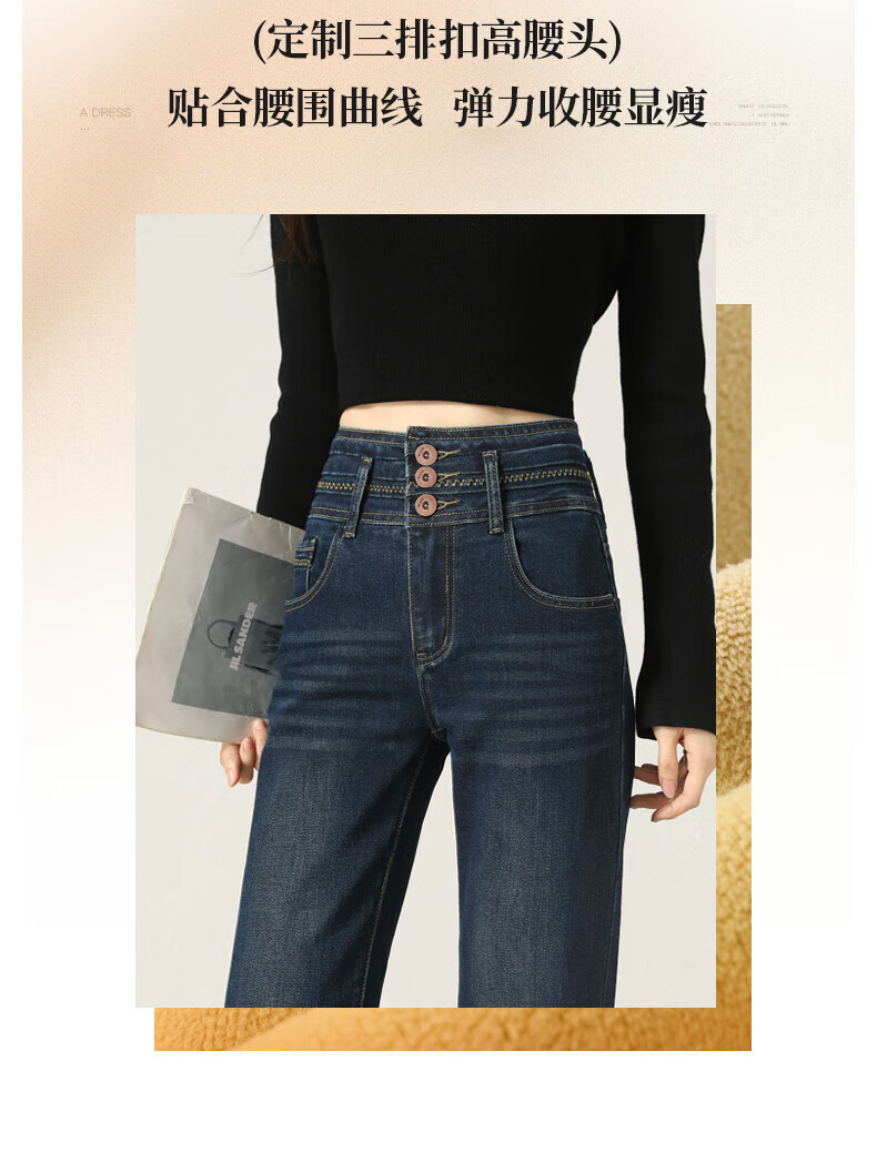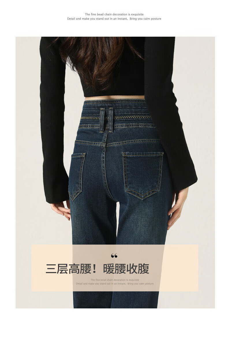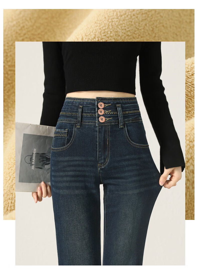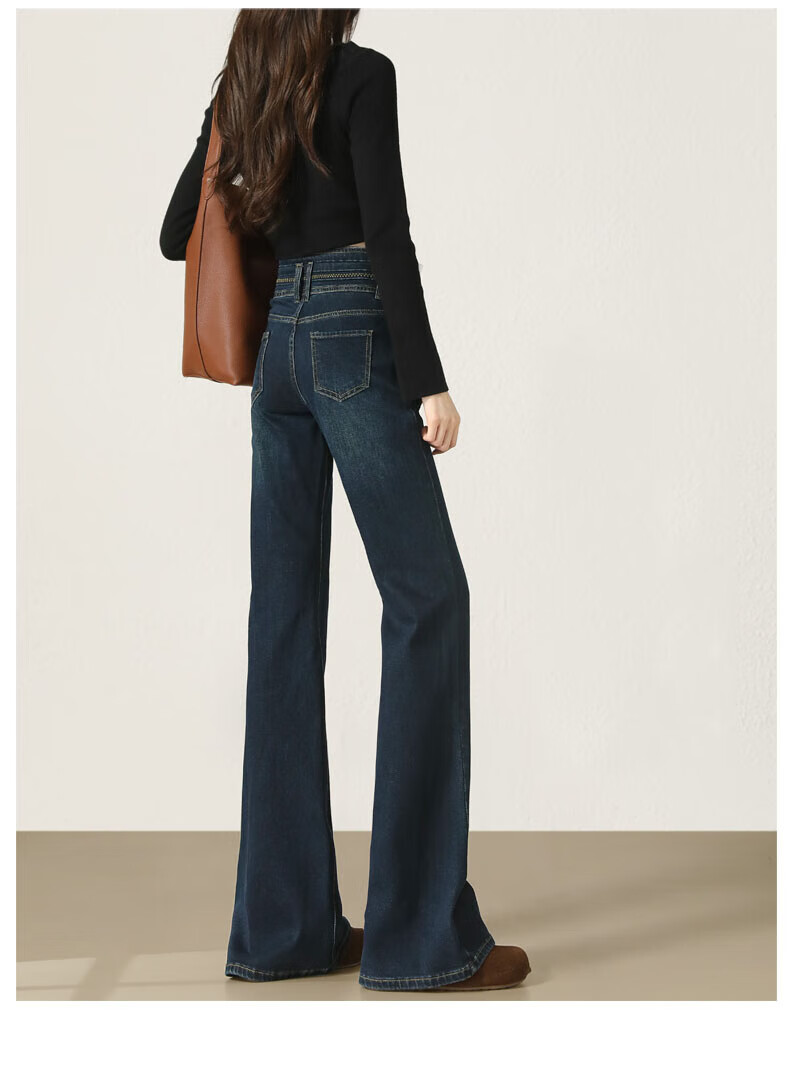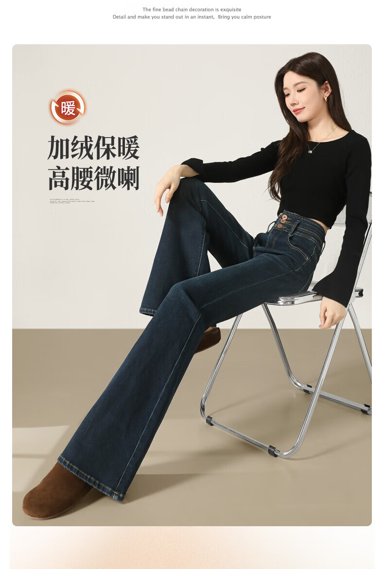 Fabesa Brand Small High Waist Velvet Bootleg Jeans Women's 2025 Autumn and Winter Slim Slim Retro Flared Jeans Women Blue Velvet S 90Jin Jin is equal to within 0.5 kg