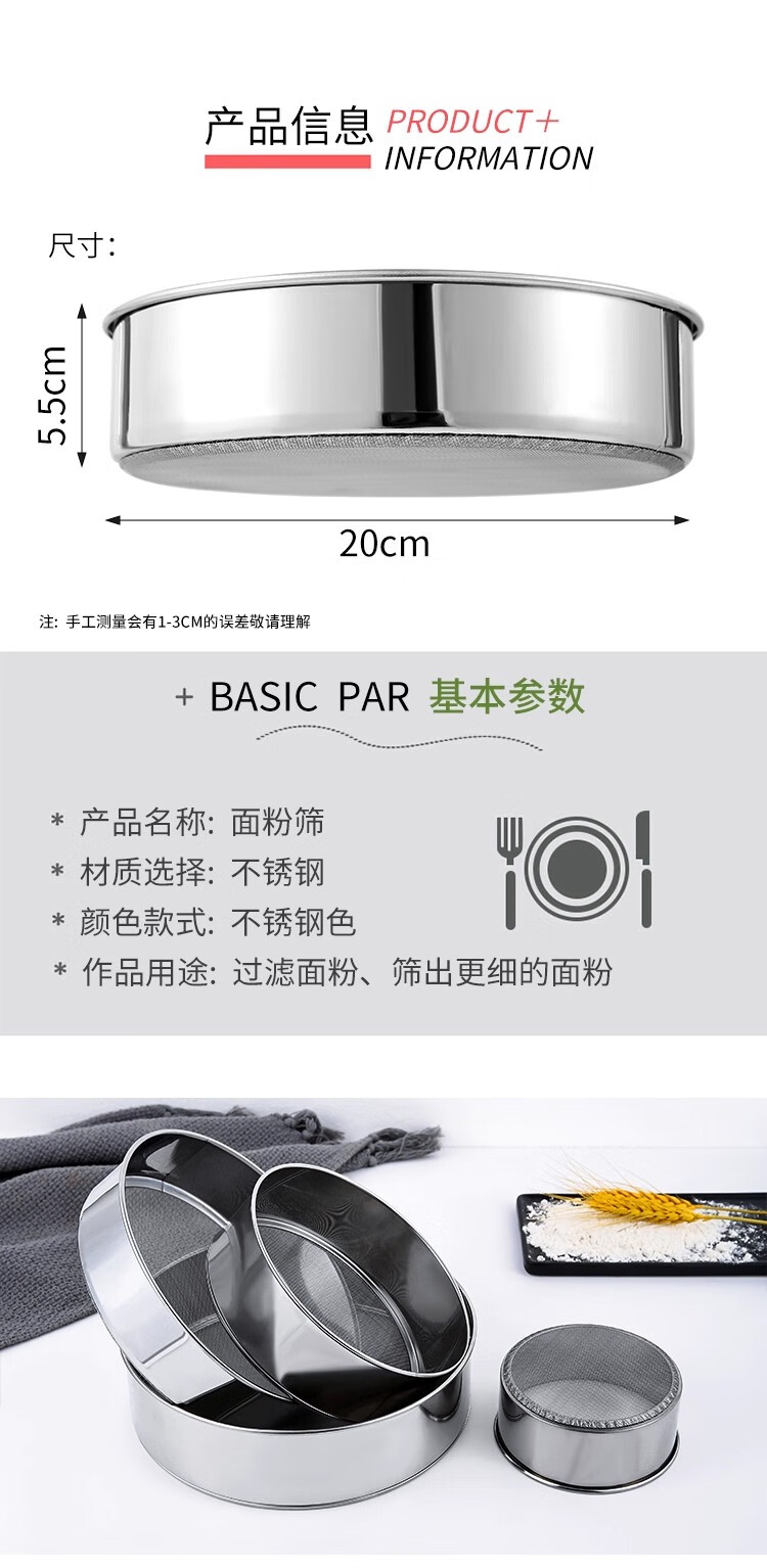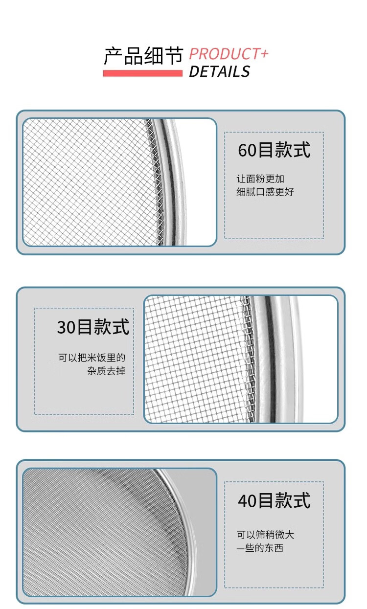 NUOVA POINT sieve flour sieve stainless steel basket gong sieve filter mesh sieve household mesh sieve baking ultra-fine leakage flour rice small medium 10cm 40 mesh filter cake powder/flour stainless steel