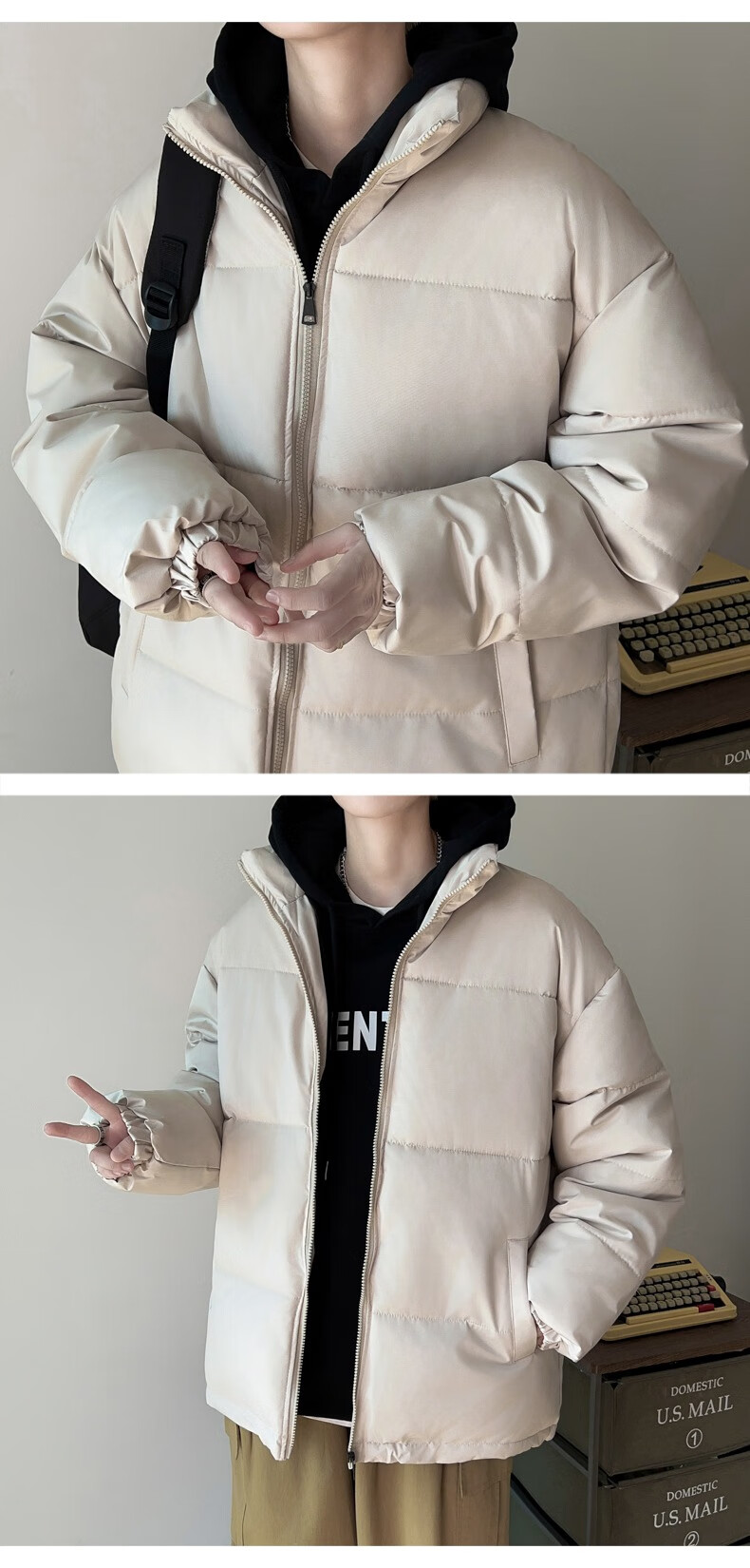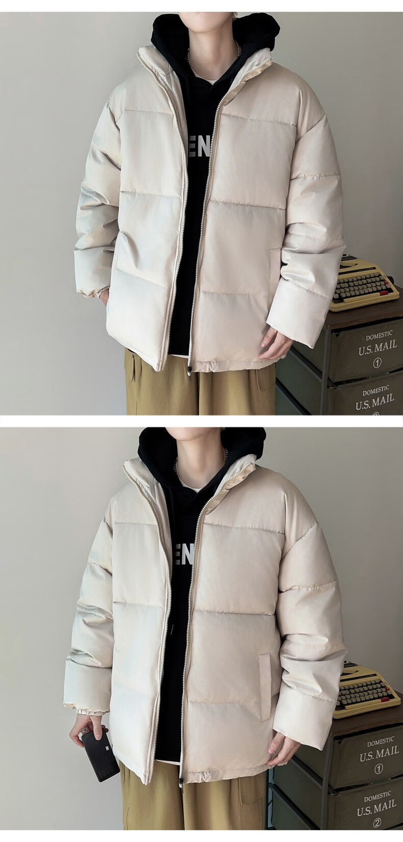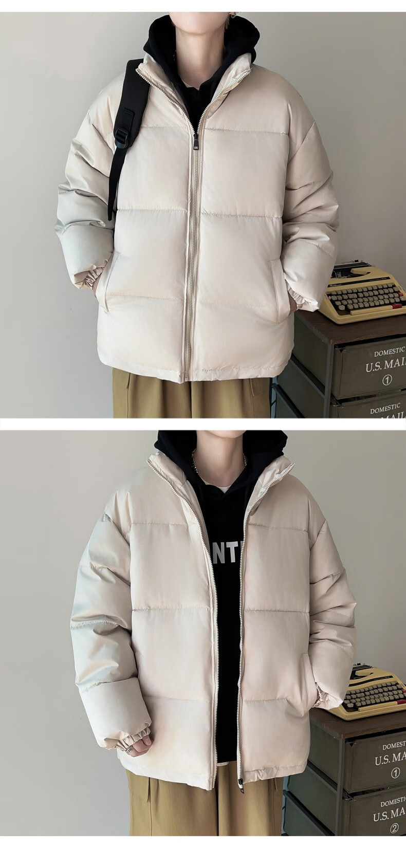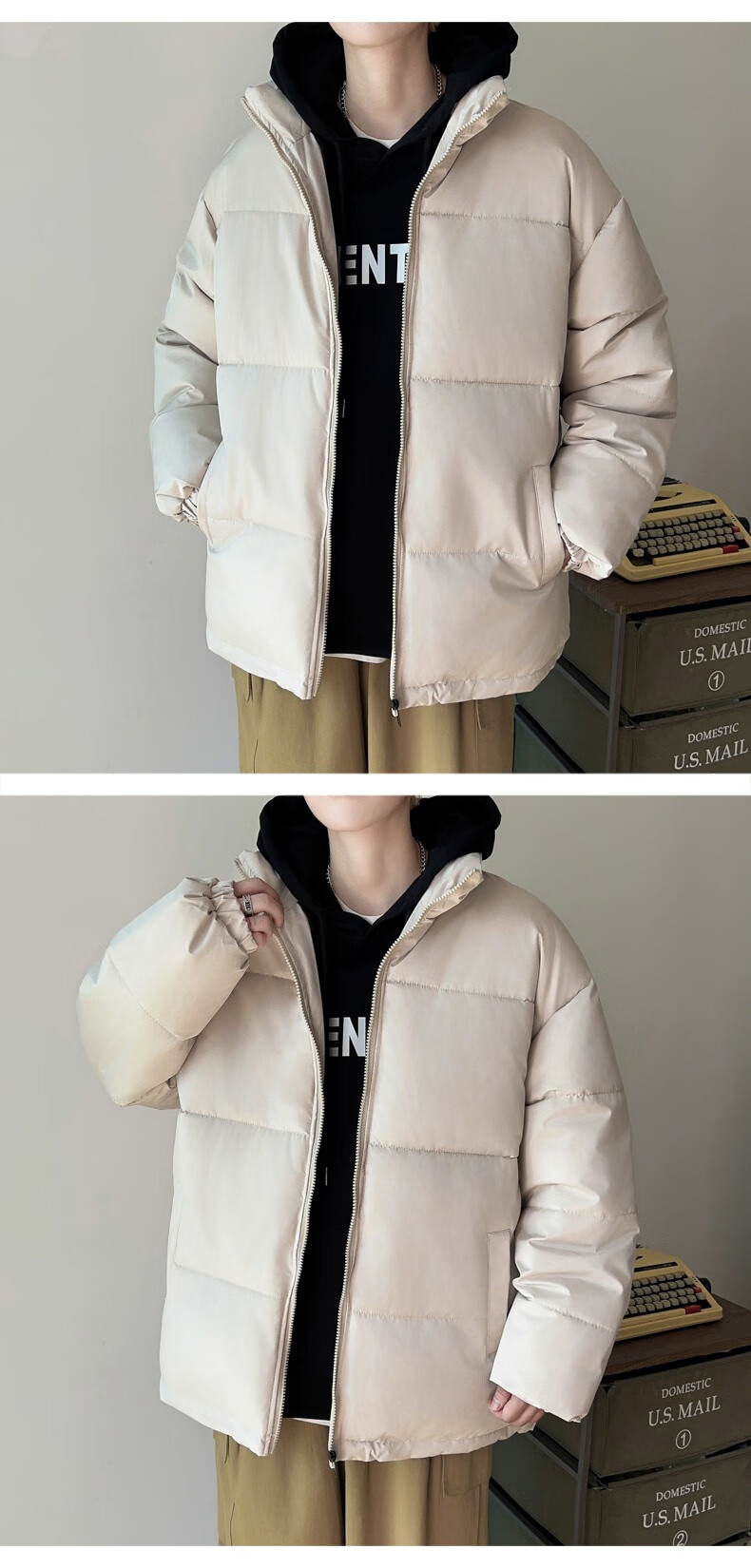 Down Cotton Jacket Men's Trendy Lightweight Cotton Jacket 2025 New Thick Large Size Warm Black Bakery Jacket Apricot 5XL