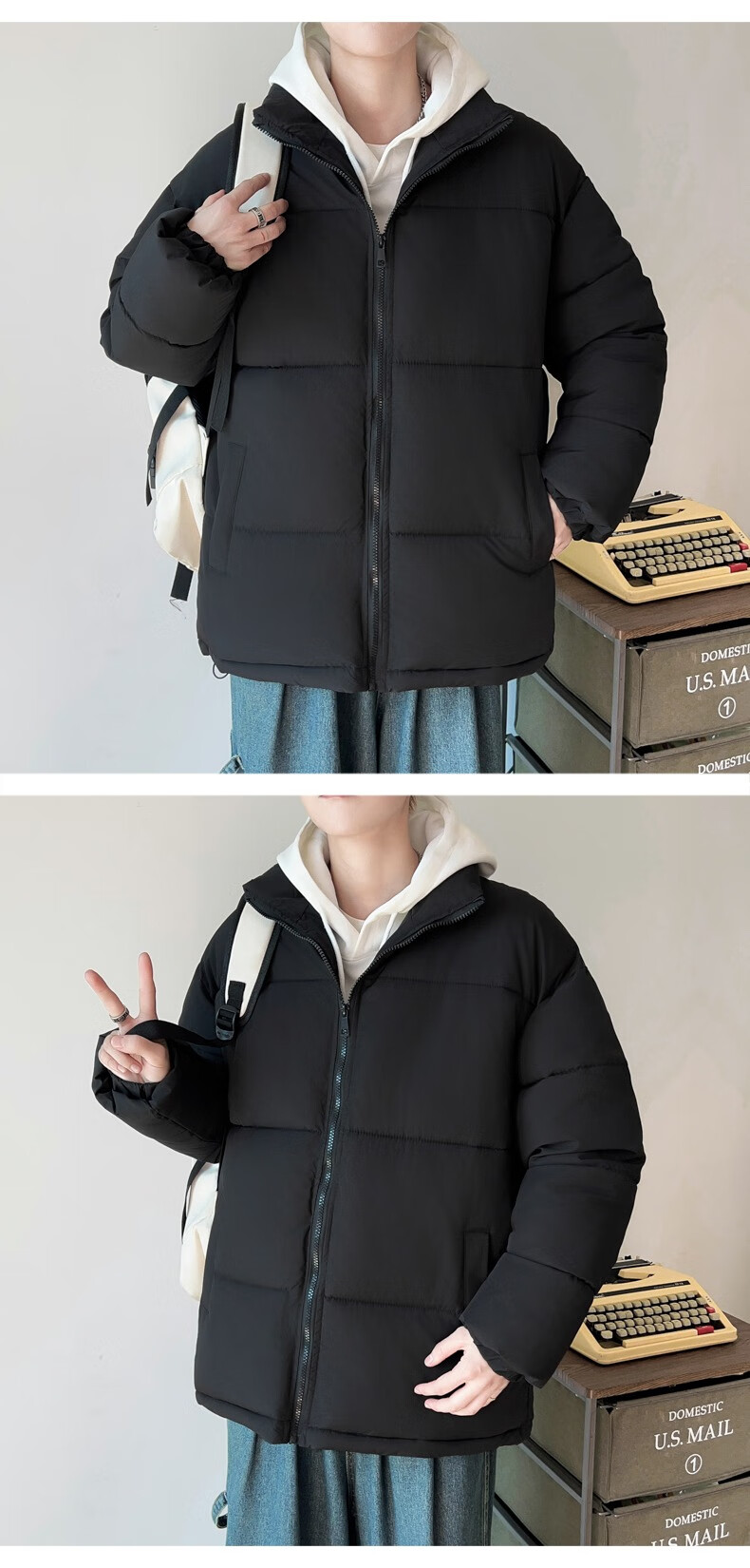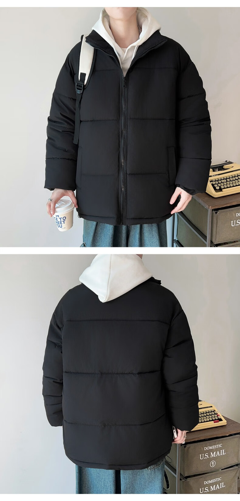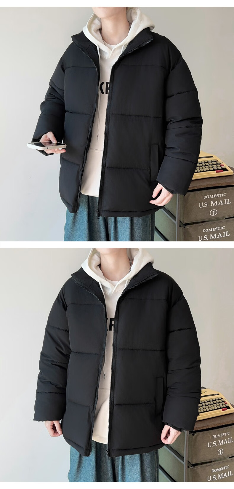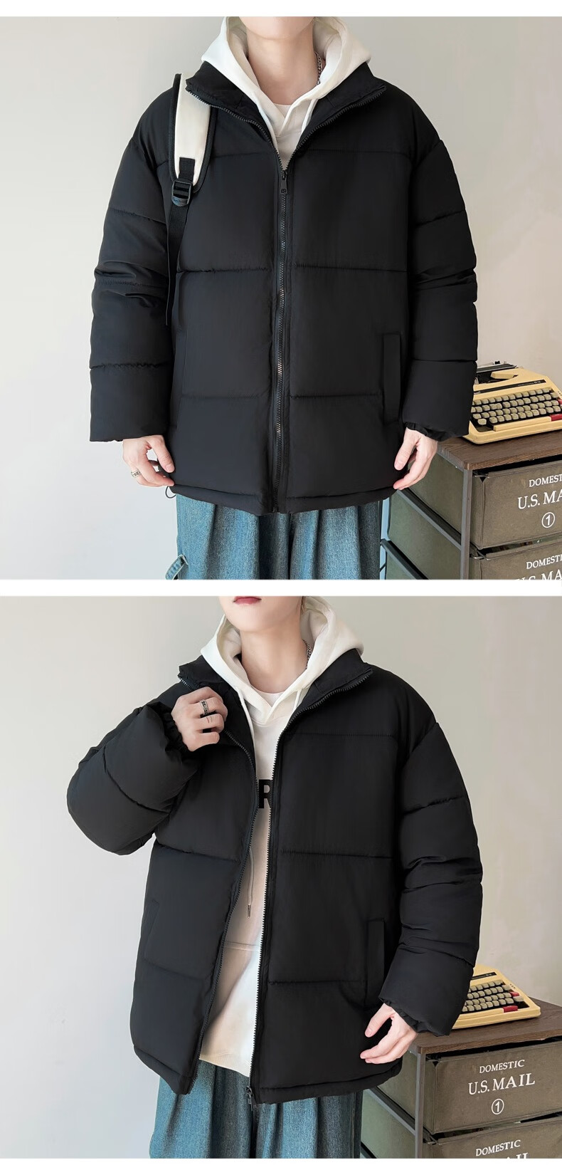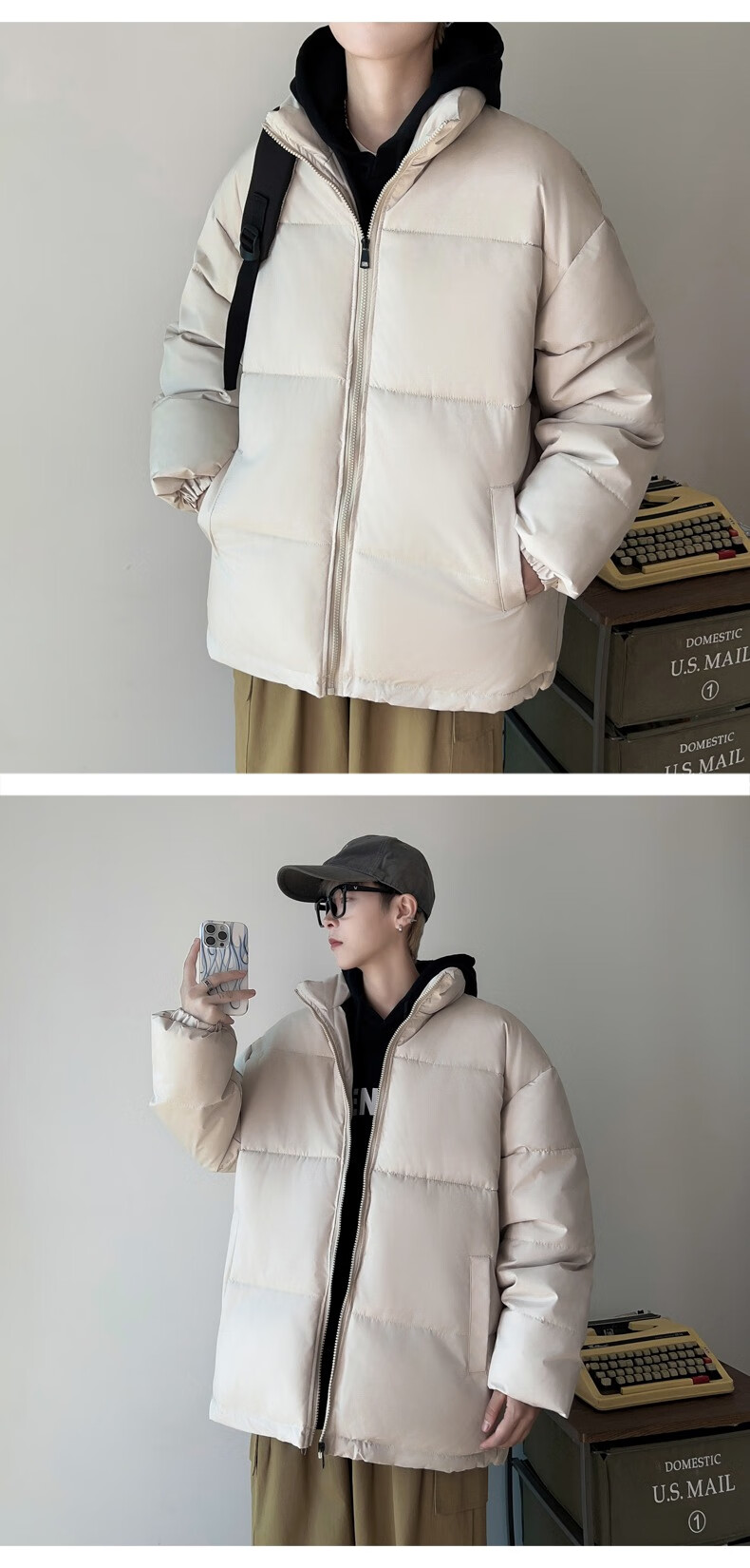Down Cotton Jacket Men's Trendy Lightweight Cotton Jacket 2025 New Thick Large Size Warm Black Bakery Jacket Apricot 5XL