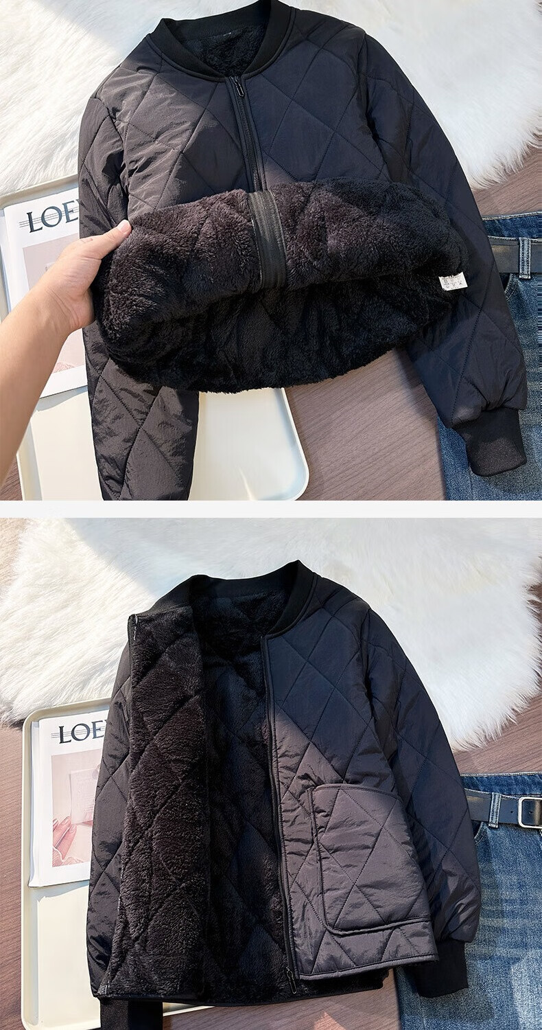 Northeastern subzero temperature extra thick student bottoming cotton-padded jacket for men in middle and high school windproof liner plus velvet cotton jacket anti-freeze school uniform artifact JSL1042 stand-up collar black full body plus velvet L 115Jin Jin is equal to 0.5 kg