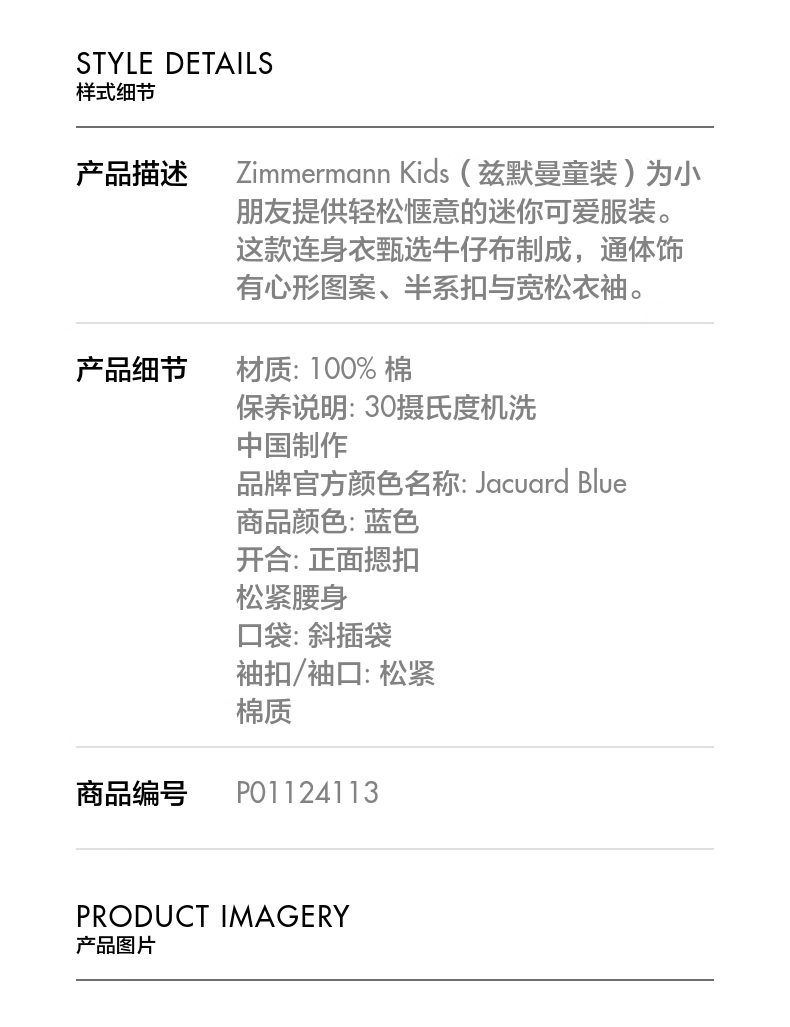 Zimmermann Girls 26 Spring/Summer New Arrival Printed Denim Jumpsuit P01124113 Blue XXS Y 2