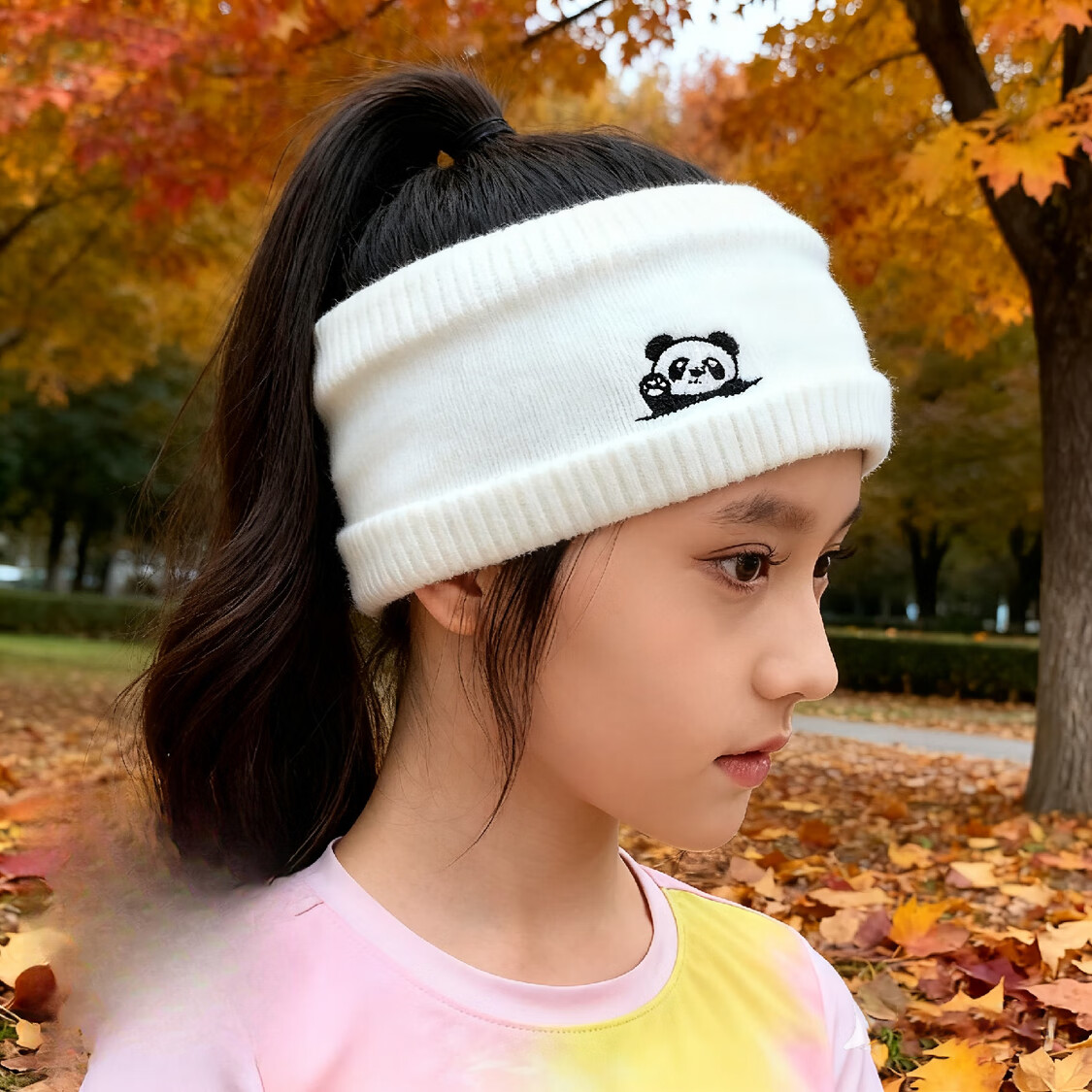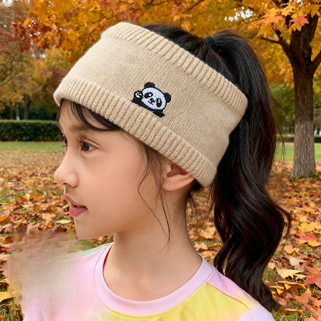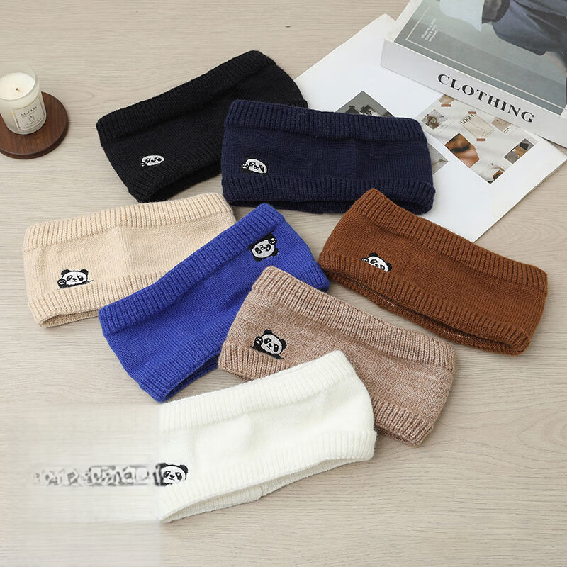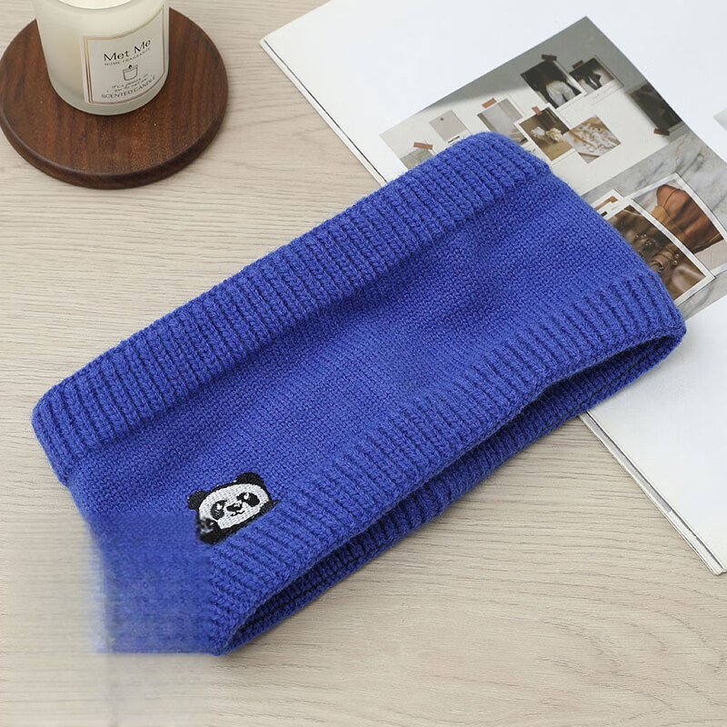 Nian Meifang children's hairband girls cute autumn and winter forehead protector knitted forehead wipe outdoor windproof hood warm scarf blue