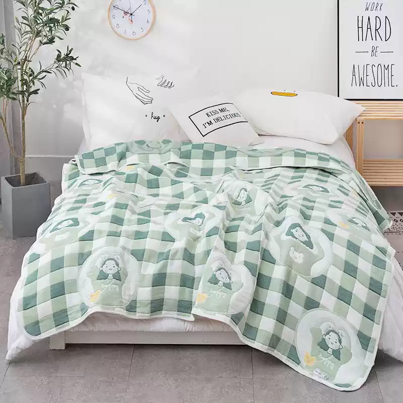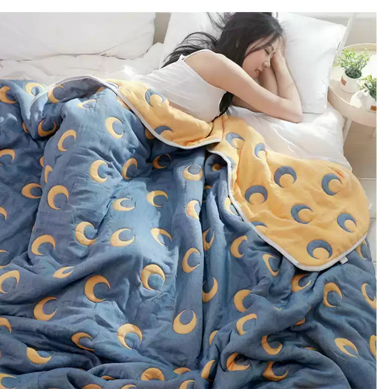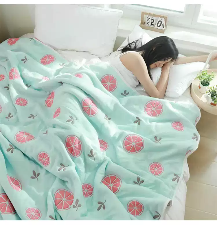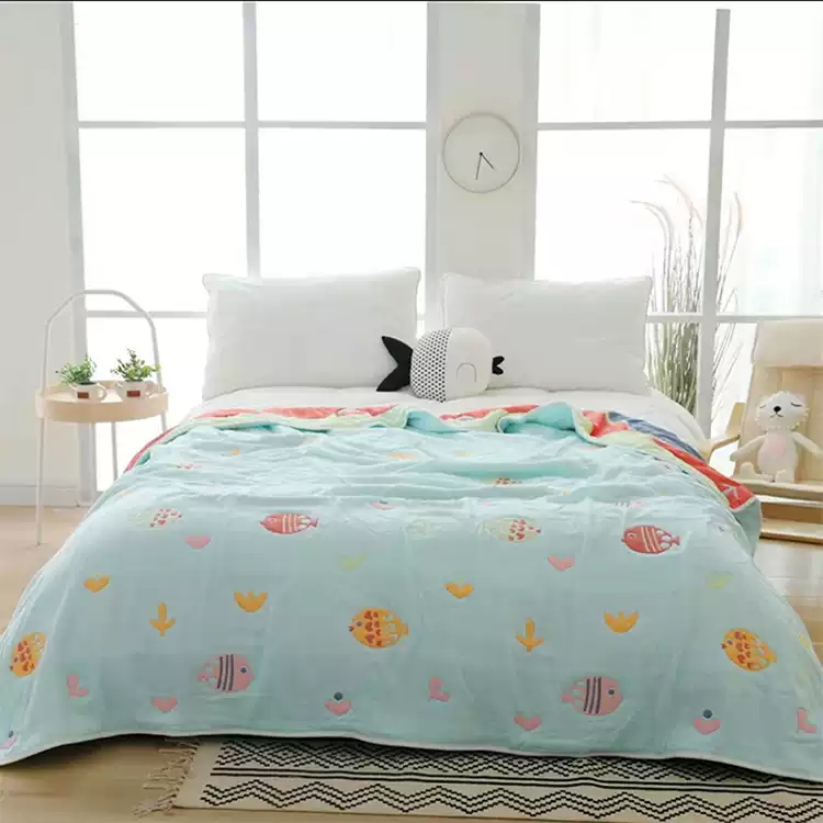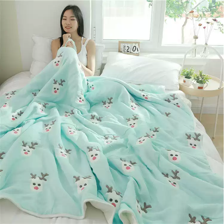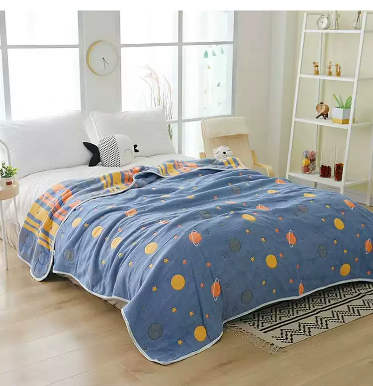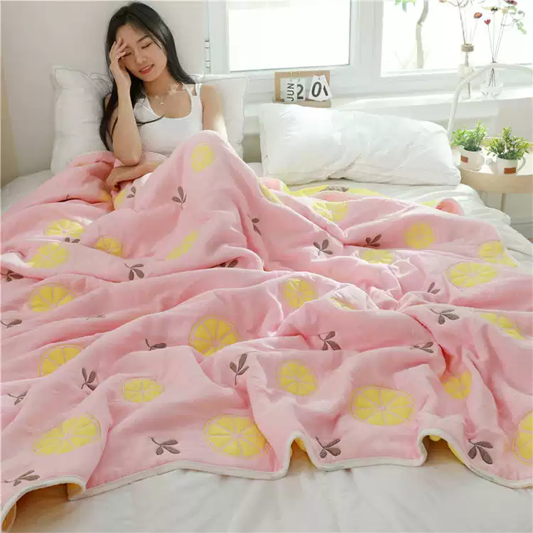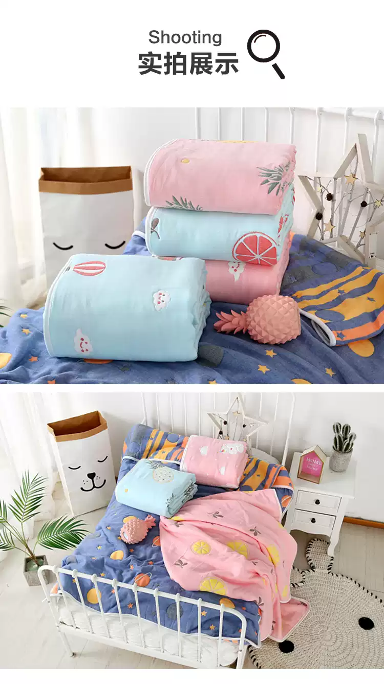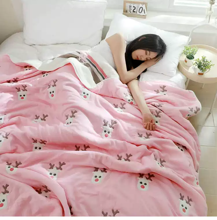 RSRDDY Autumn and Winter layered gauze cover quilt thickened towel quilt children's quilt pure cotton nap blanket single and double blanket plus adult 6-layer pink pig 150*200