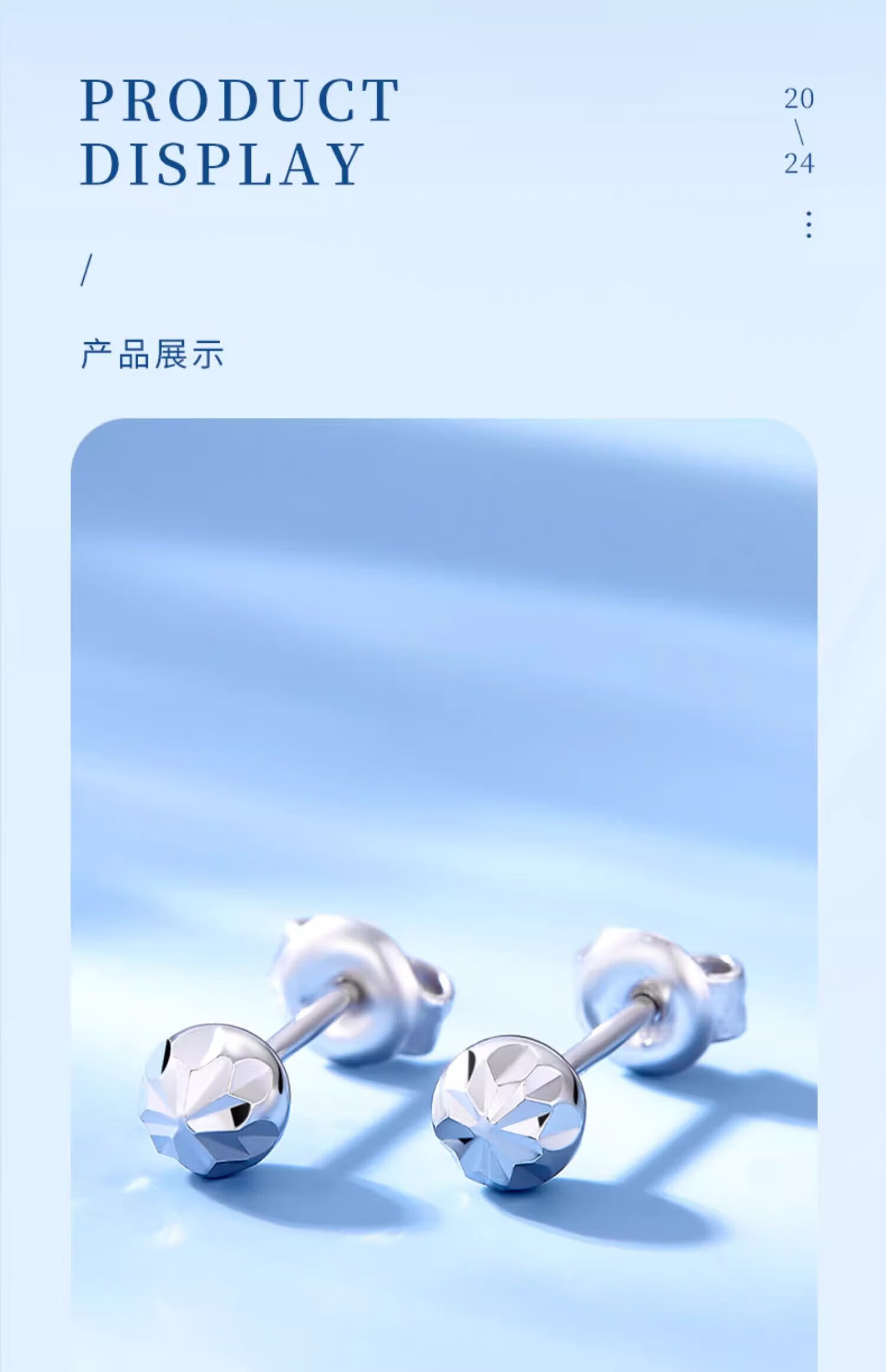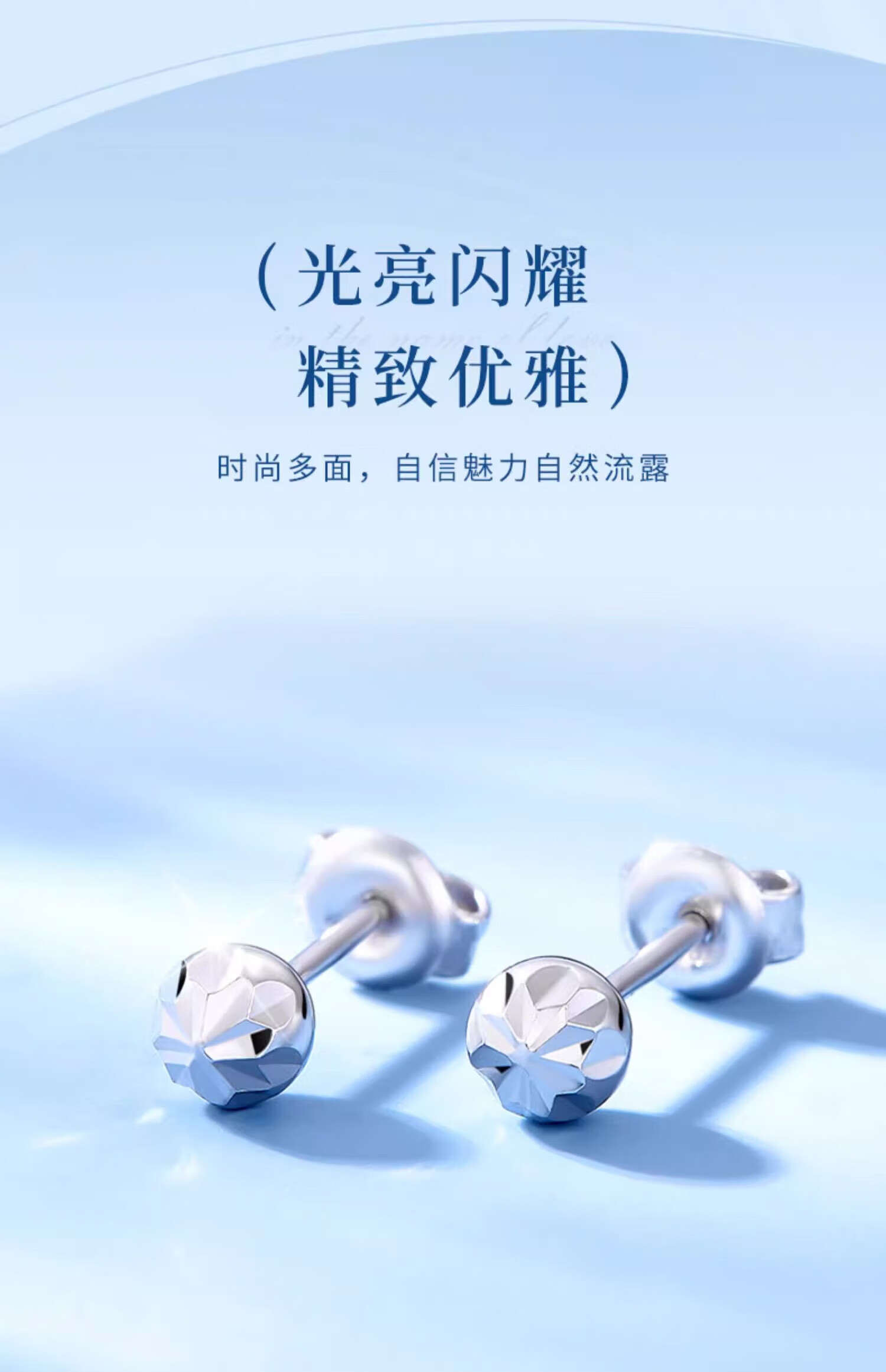 Lao Fengxiang pt950 platinum baby's breath earrings for women, platinum small ball earrings, earrings, Valentine's Day birthday gift for girlfriend, platinum baby's breath earrings, about 1.2g, brand gift box