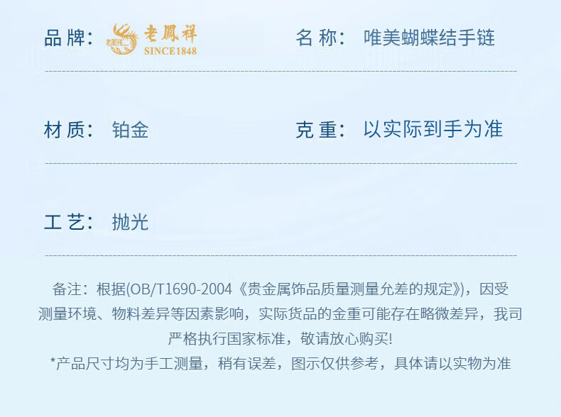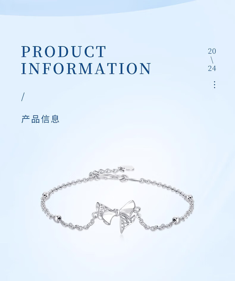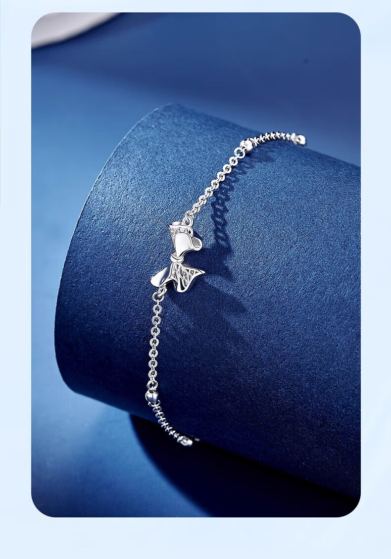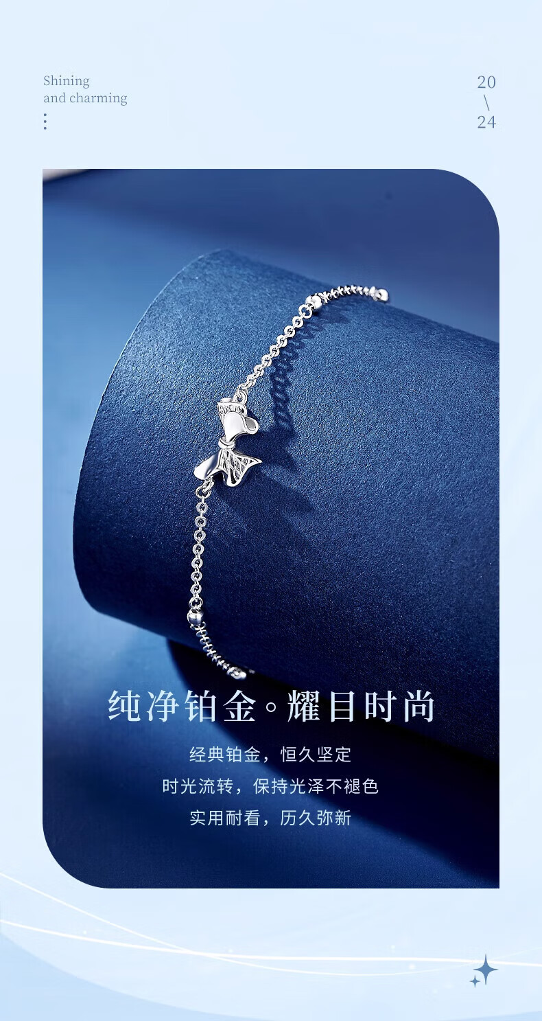Lao Fengxiang pt950 platinum bracelet for women, platinum bow bracelet, simple plain chain, Valentine's Day birthday gift for girlfriend, platinum bow bracelet, about 3.2g, brand gift box