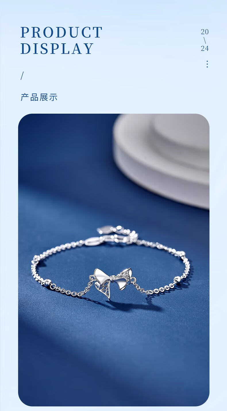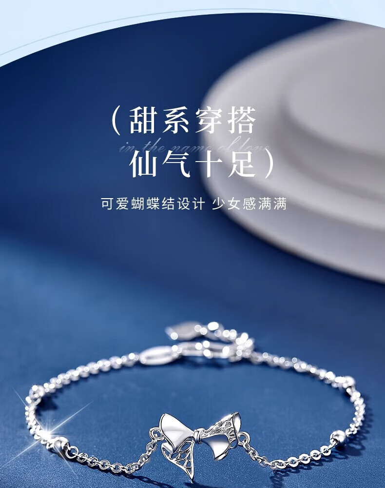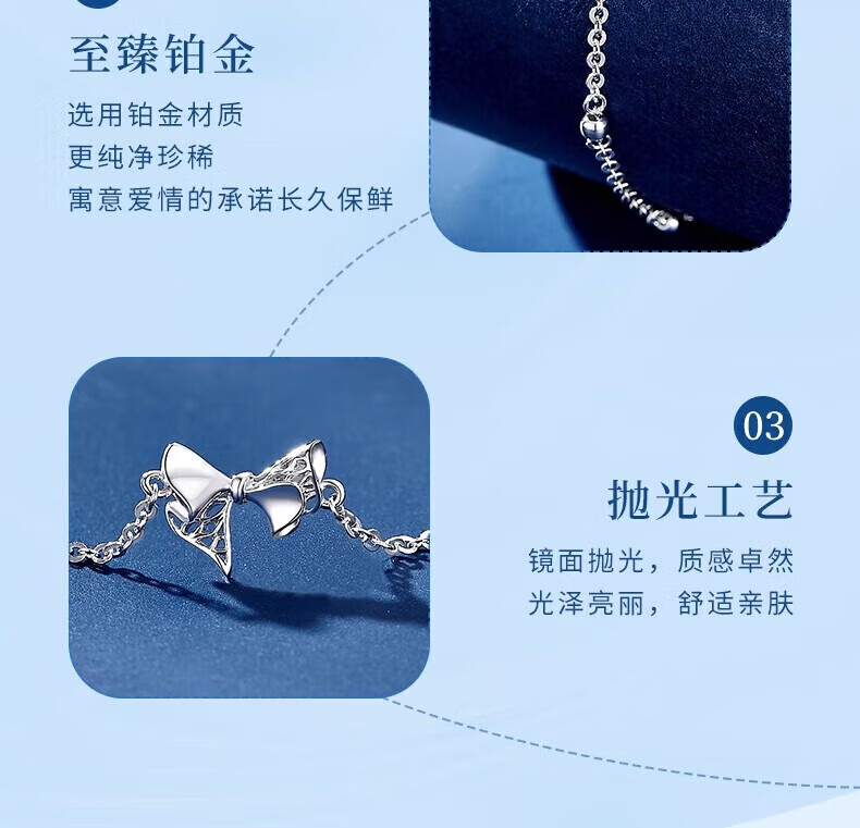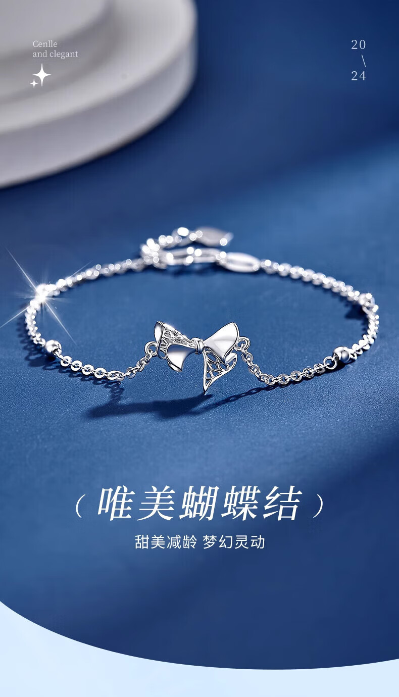 Lao Fengxiang pt950 platinum bracelet for women, platinum bow bracelet, simple plain chain, Valentine's Day birthday gift for girlfriend, platinum bow bracelet, about 3.2g, brand gift box