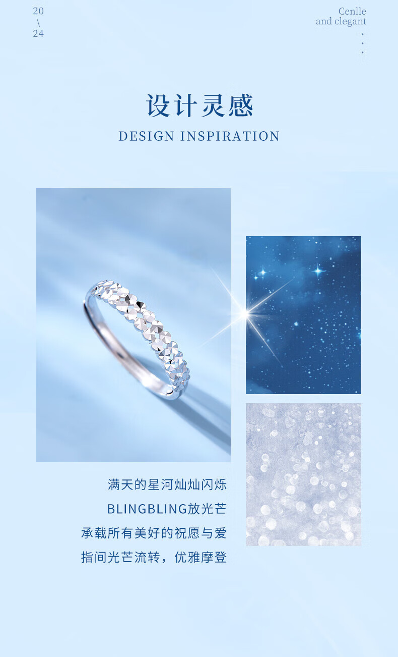 Lao Fengxiang pt950 platinum baby's breath ring for women, platinum open adjustable ring, Valentine's Day birthday gift for girlfriend, platinum baby's breath ring, about 1.9g, brand gift box