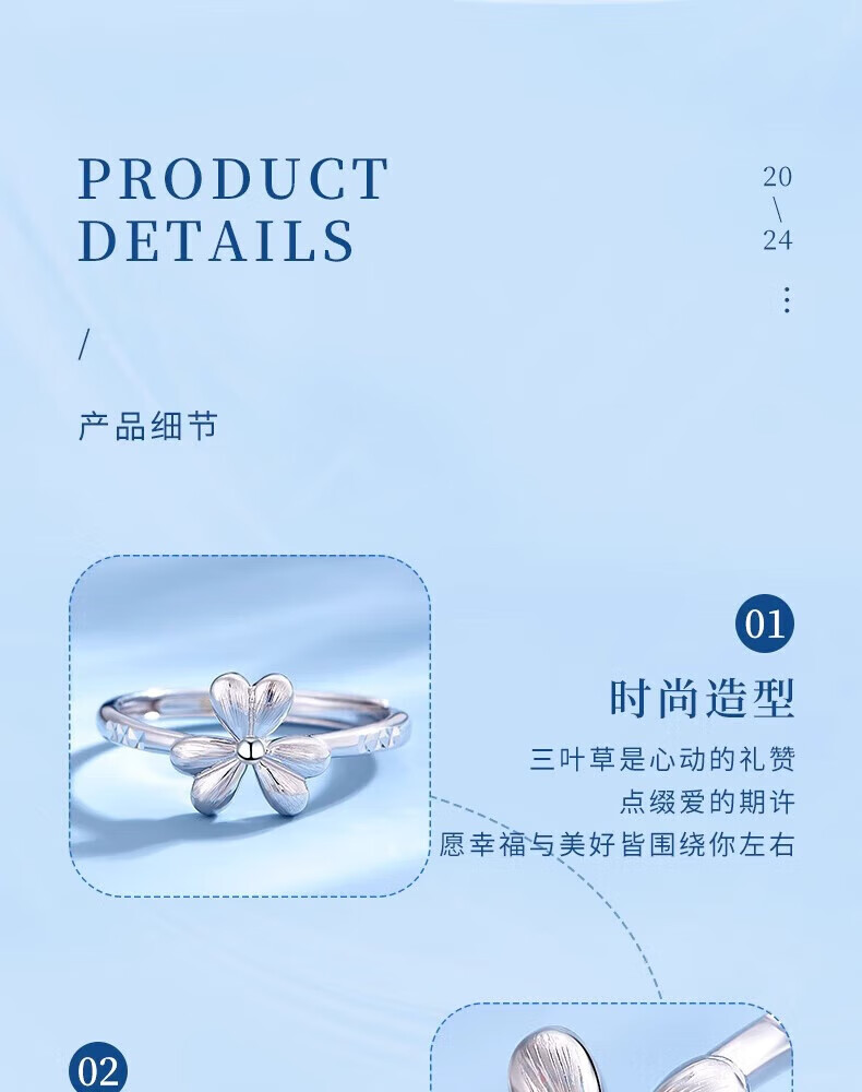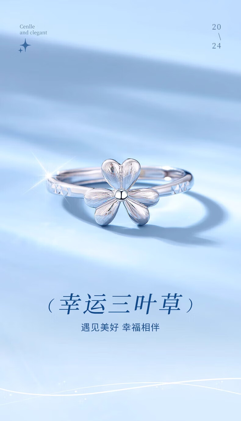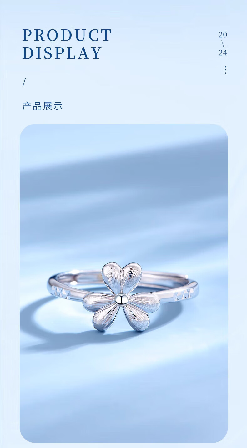 Lao Fengxiang pt950 platinum ring for women platinum lucky clover ring ring Valentine's Day birthday gift for girlfriend and wife platinum clover ring about 2.9g brand gift box
