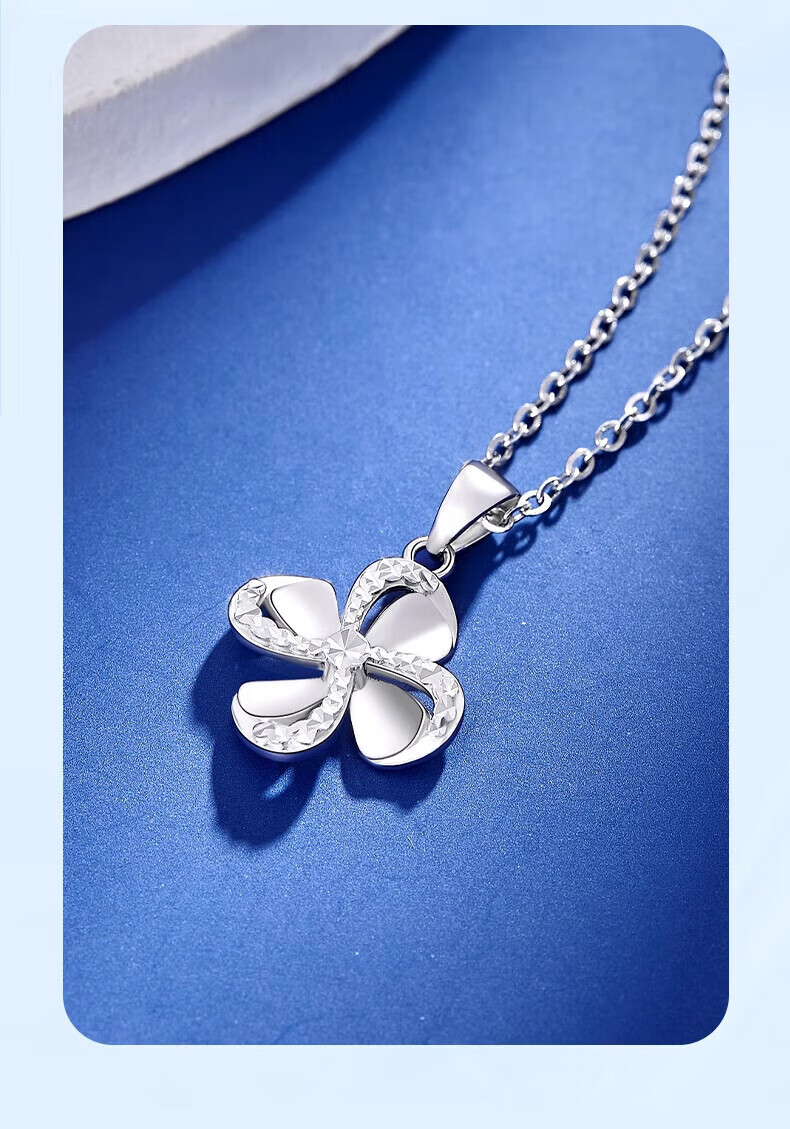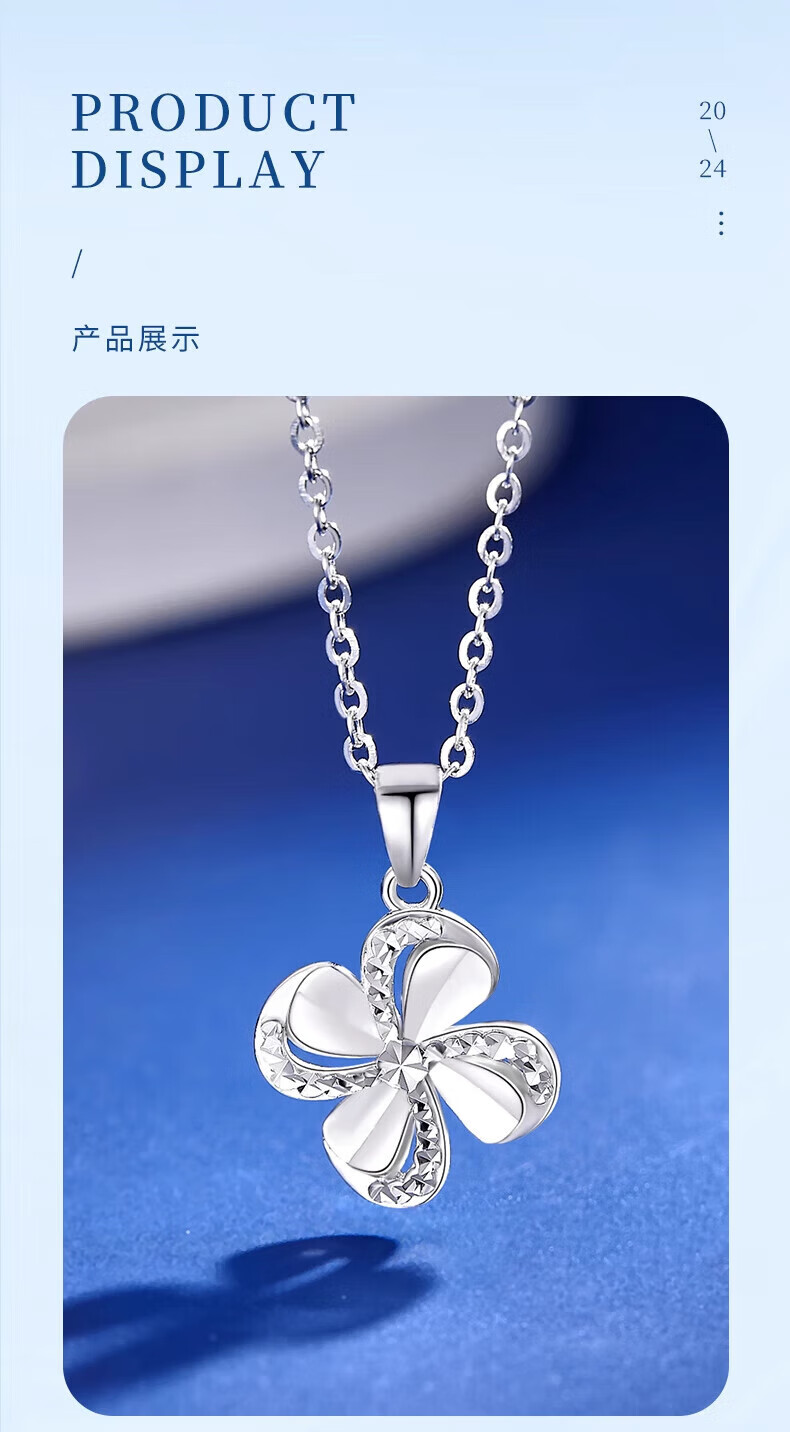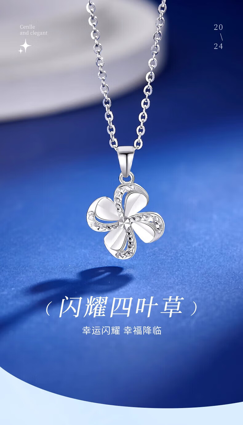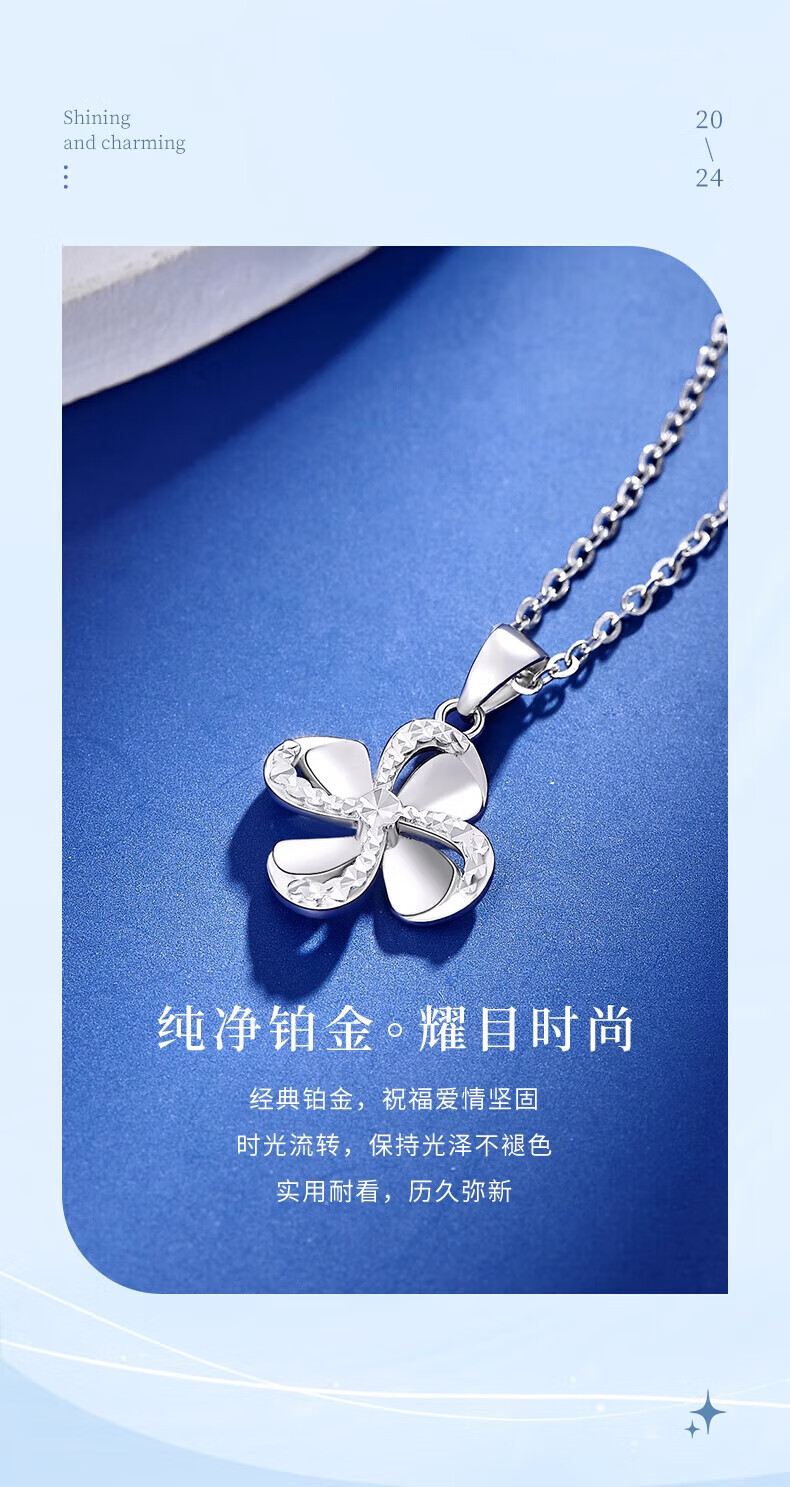 Lao Fengxiang pt950 platinum necklace for women, platinum lucky four-leaf clover pendant, clavicle chain, Valentine's Day birthday gift for girlfriend, platinum four-leaf clover pendant, about 2.7g, free silver chain + brand gift box