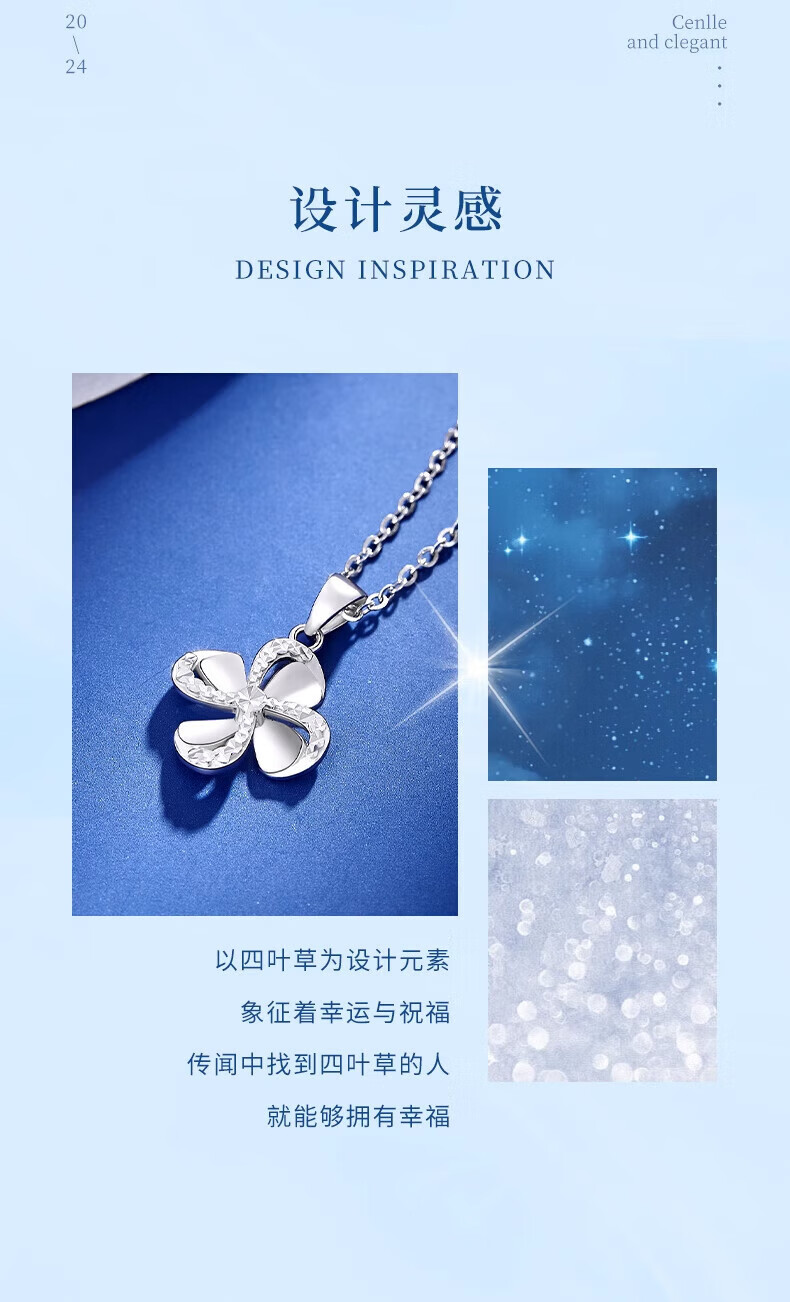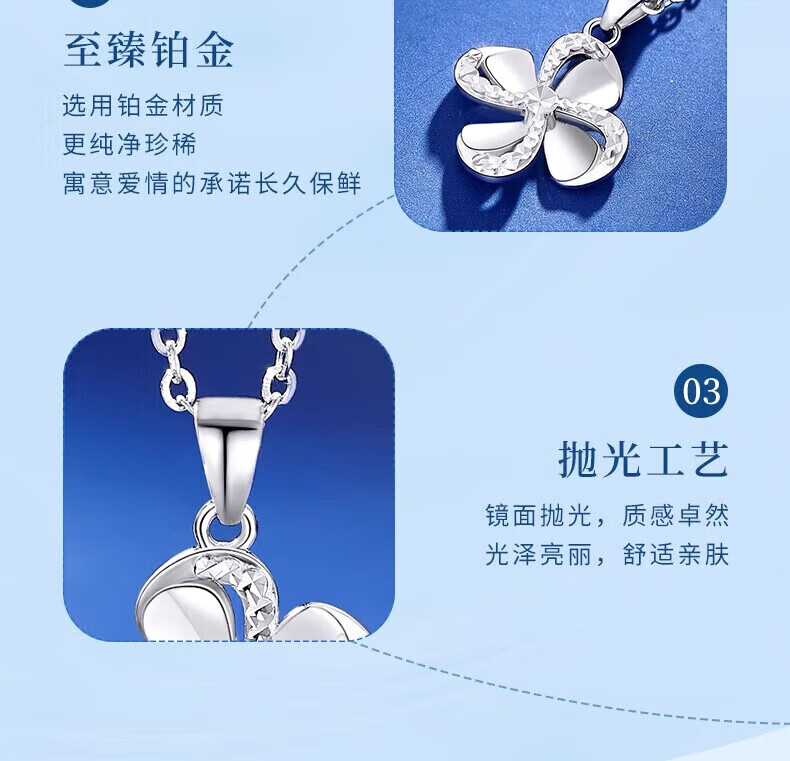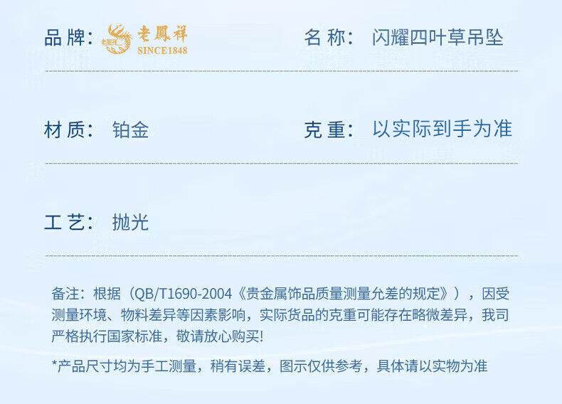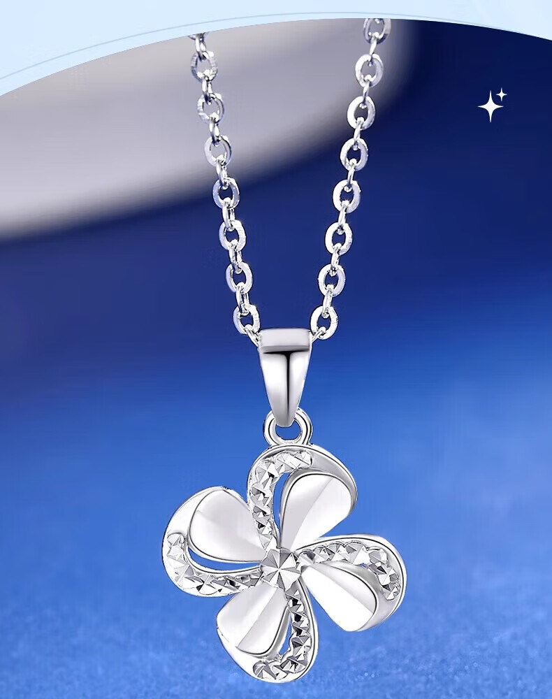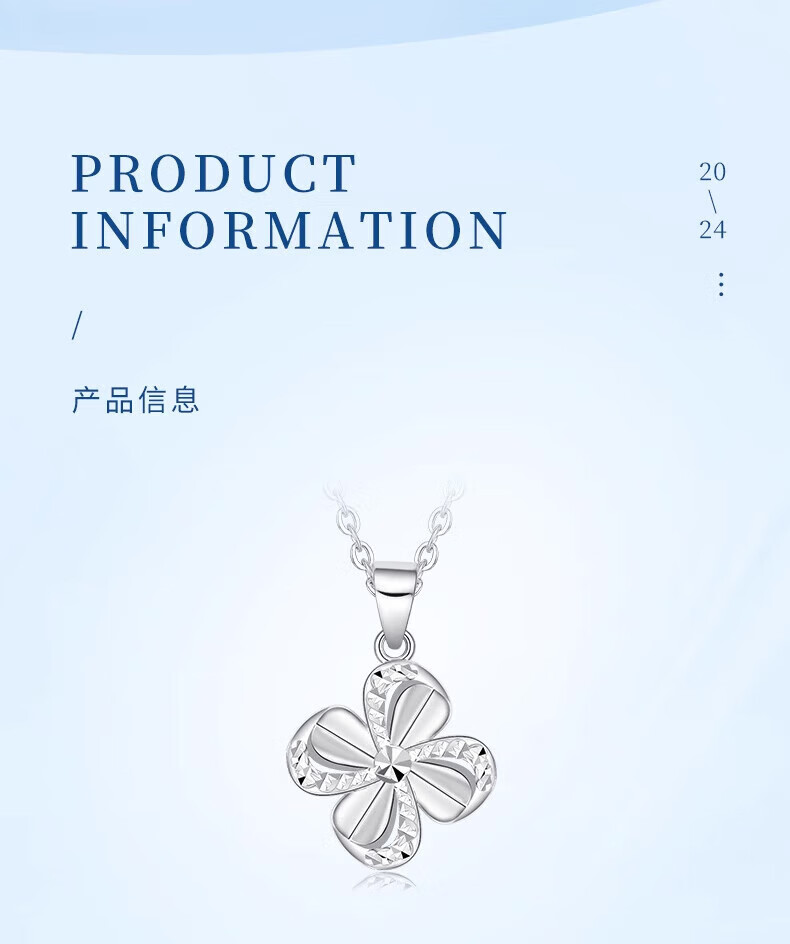 Lao Fengxiang pt950 platinum necklace for women, platinum lucky four-leaf clover pendant, clavicle chain, Valentine's Day birthday gift for girlfriend, platinum four-leaf clover pendant, about 2.7g, free silver chain + brand gift box