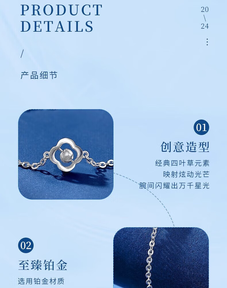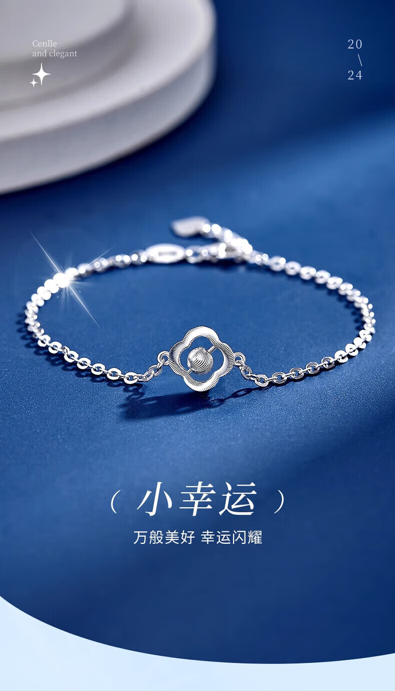 Lao Fengxiang pt950 platinum four-leaf clover bracelet for women, platinum cat eye transfer bead chain, Valentine's Day birthday gift for girlfriend, platinum four leaf clover cat eye bead bracelet, about 3.1g, brand gift box