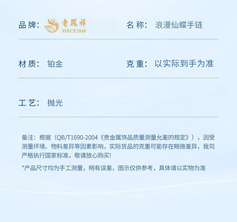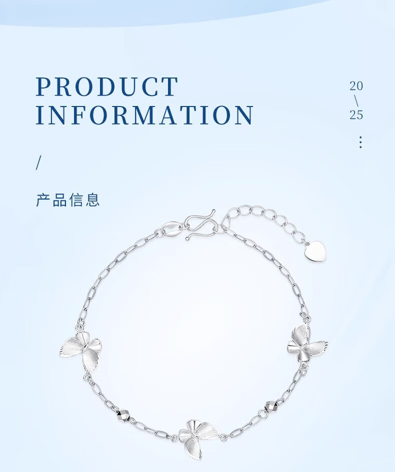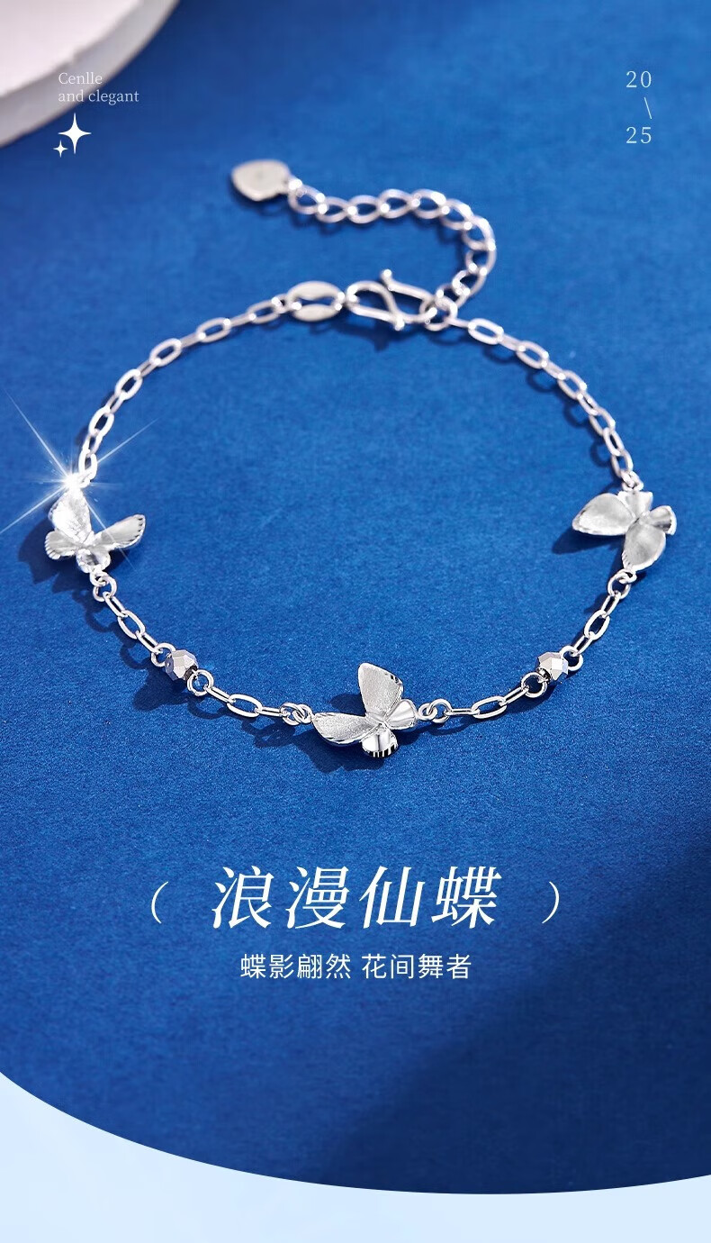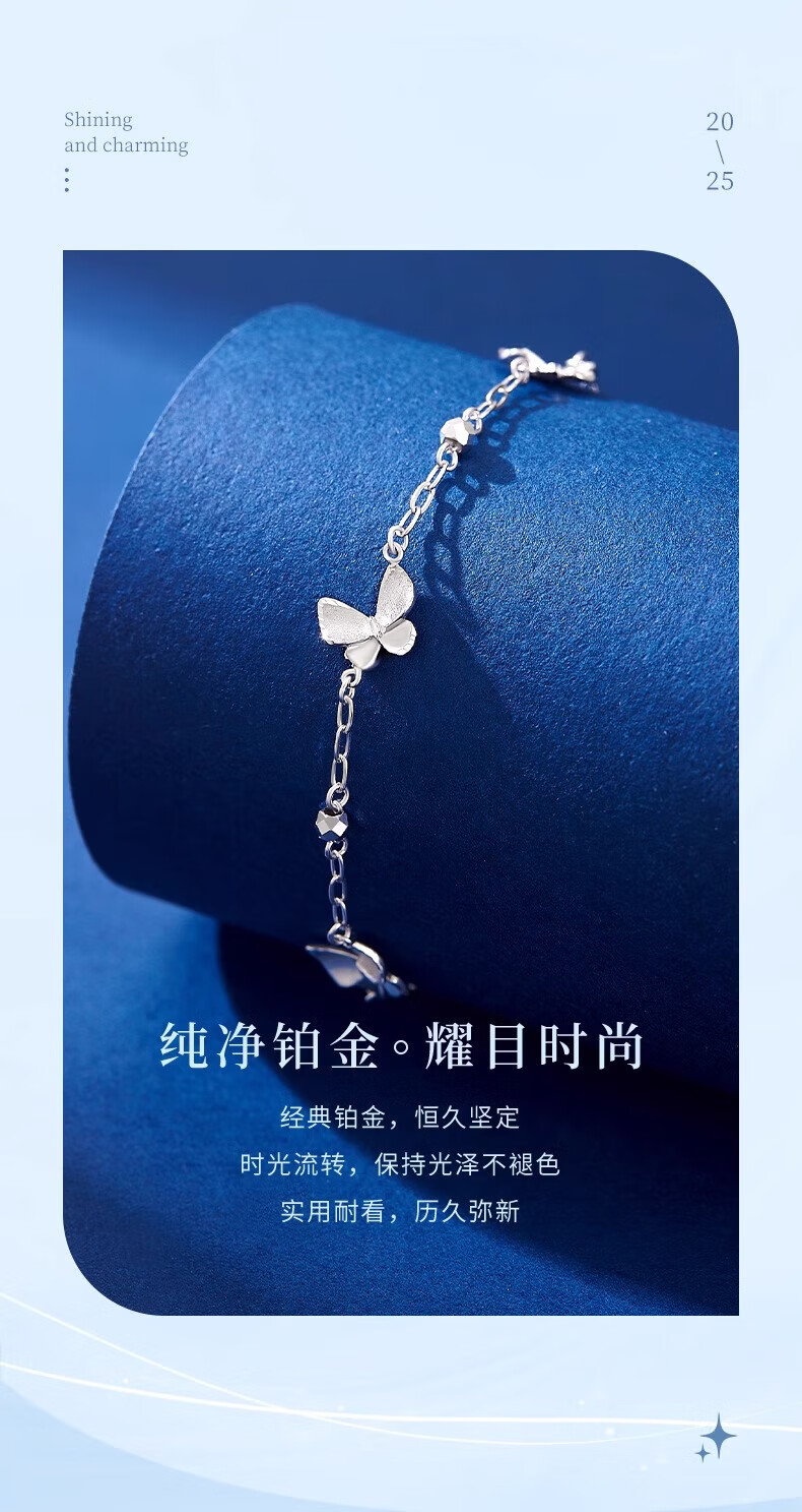 Lao Fengxiang pt950 platinum butterfly bracelet for women, platinum simple chain bracelet, Valentine's Day birthday gift for girlfriend and wife, platinum butterfly bracelet, about 4.2g, brand gift box