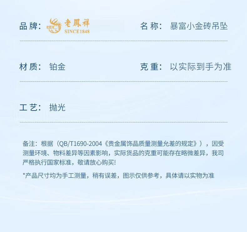 Lao Fengxiang pt950 platinum small gold bar necklace for women, platinum rich small gold brick pendant, Valentine's Day birthday gift for girlfriend, platinum small gold bar pendant, about 5.4g, free sterling silver chain + brand gift box