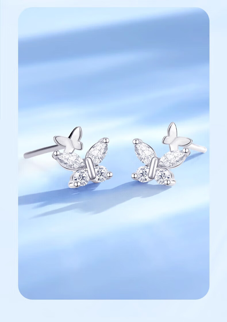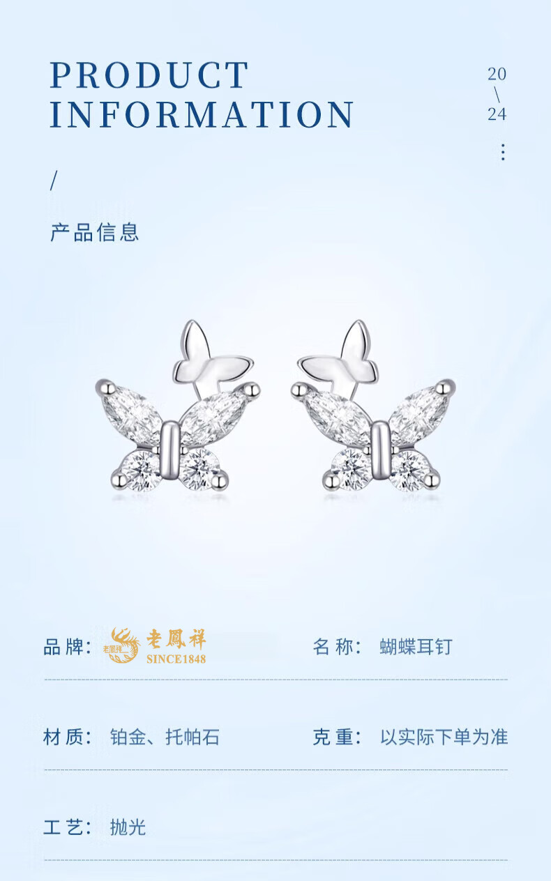 Lao Fengxiang pt950 platinum earrings for women, light luxury niche platinum butterfly earrings, Valentine's Day birthday gift for girlfriend and wife, platinum butterfly earrings, about 1g, brand gift box