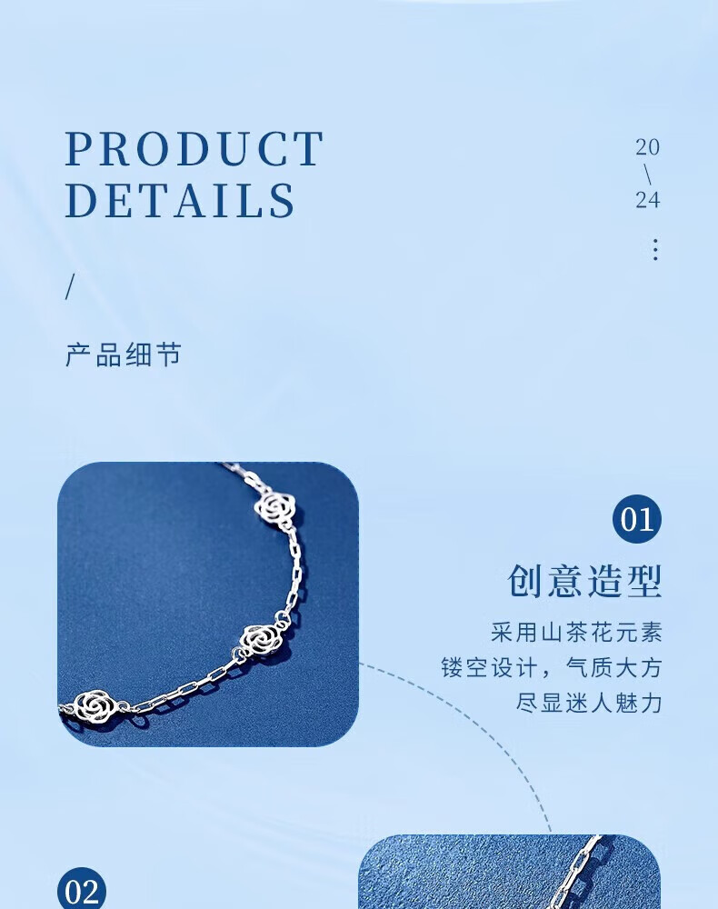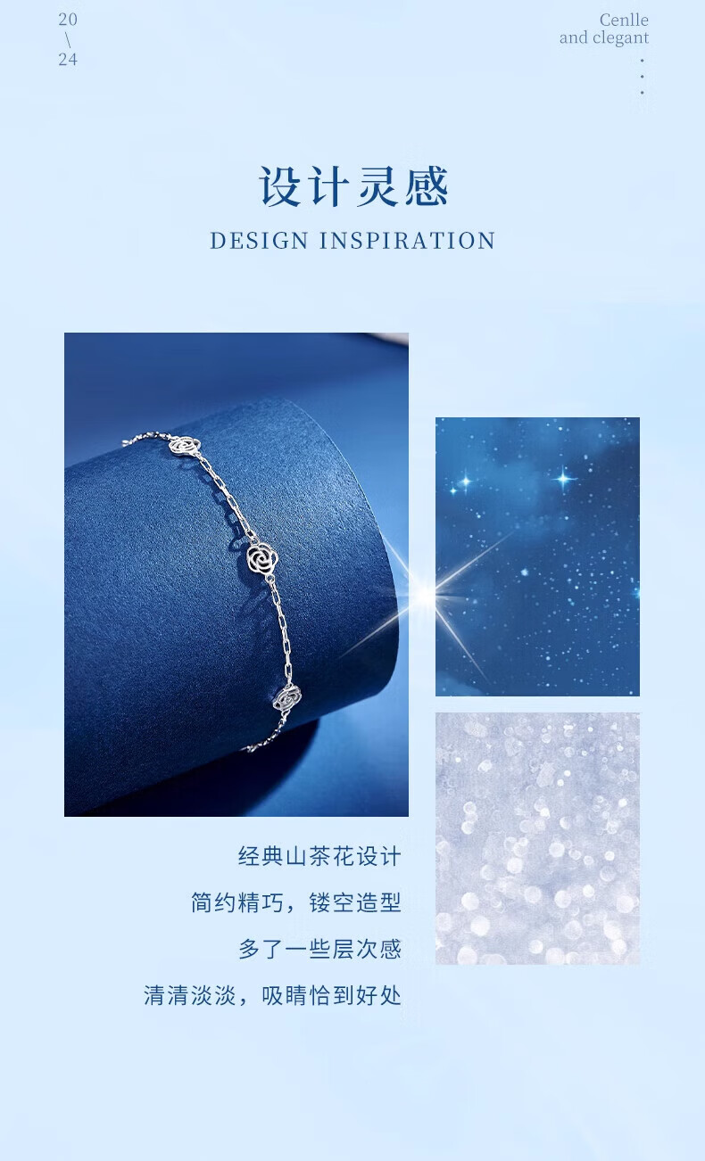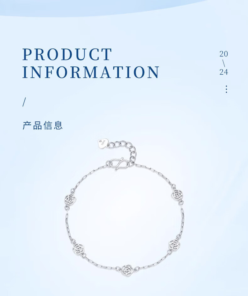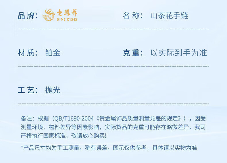 Lao Fengxiang pt950 platinum bracelet for women, platinum camellia bracelet, plain chain, Valentine's Day birthday gift for girlfriend and wife, platinum camellia bracelet, about 2.8g, brand gift box