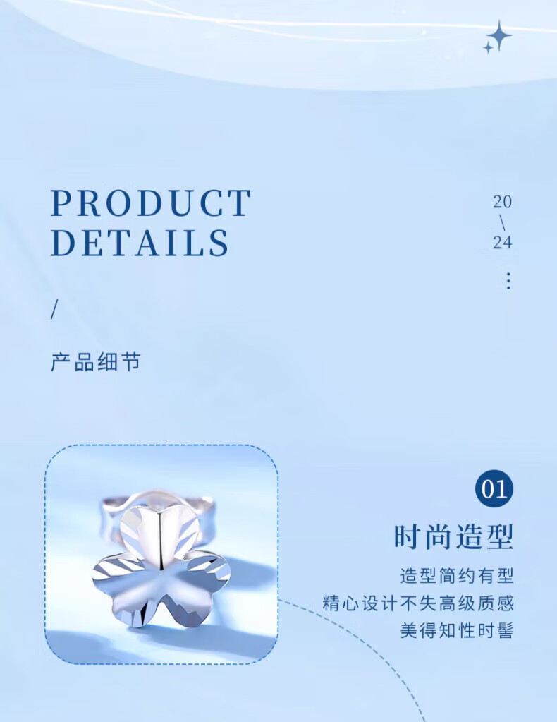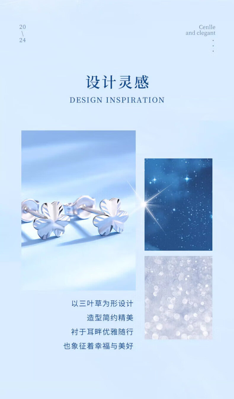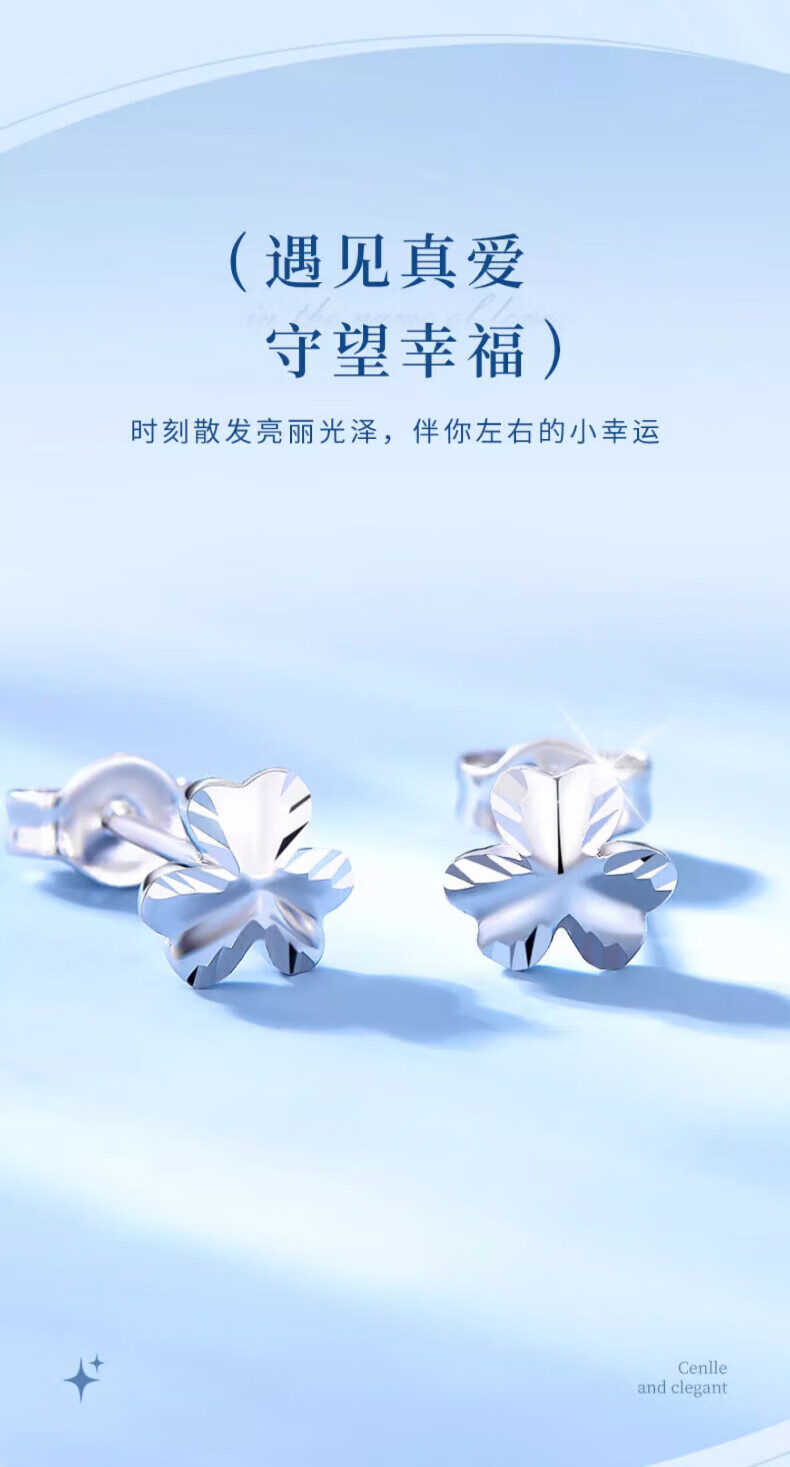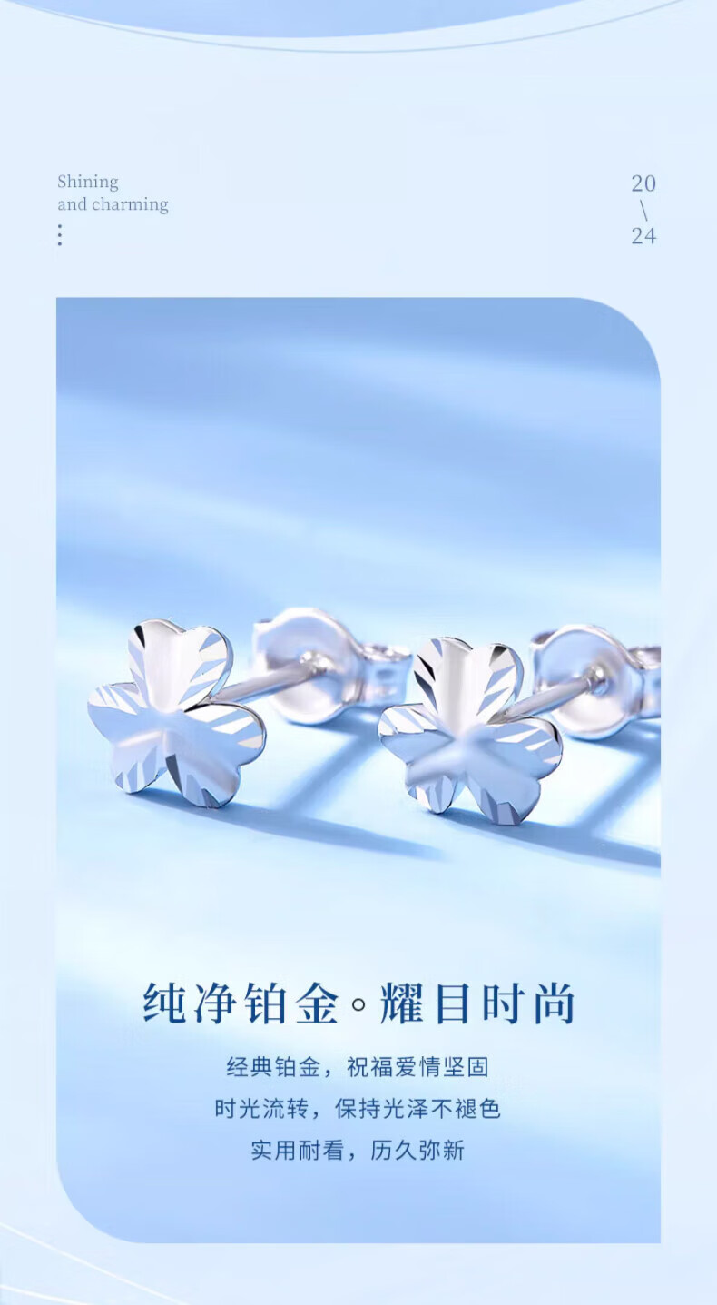 Lao Fengxiang pt950 platinum earrings for women, platinum clover earrings, ear piercing earrings, Valentine's Day birthday gift for girlfriend, platinum clover earrings, about 1.5g, brand gift box