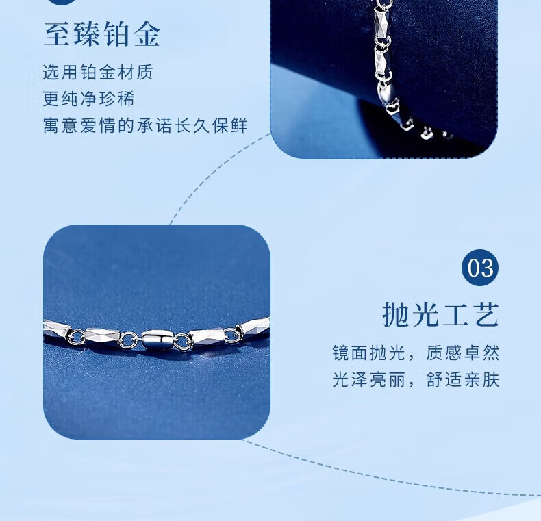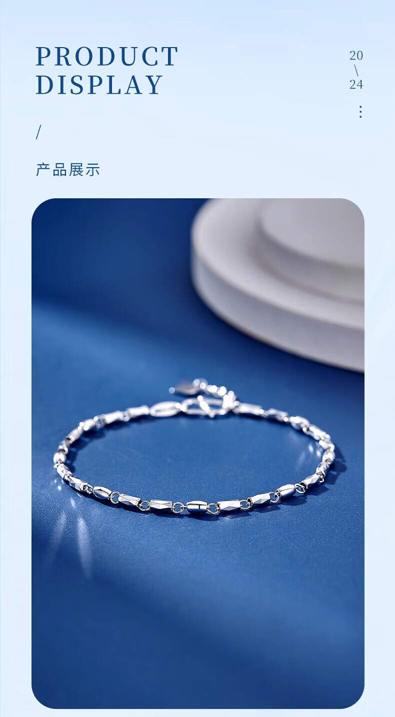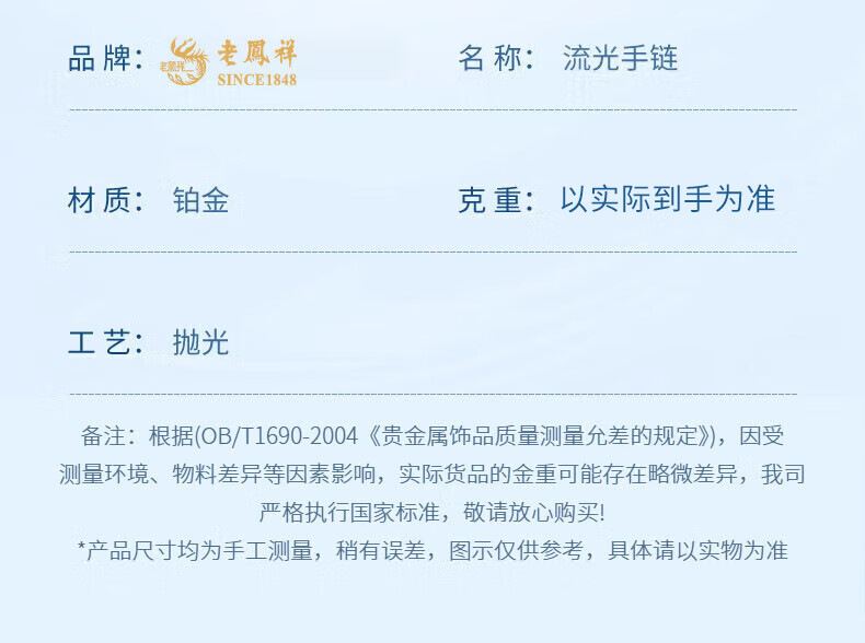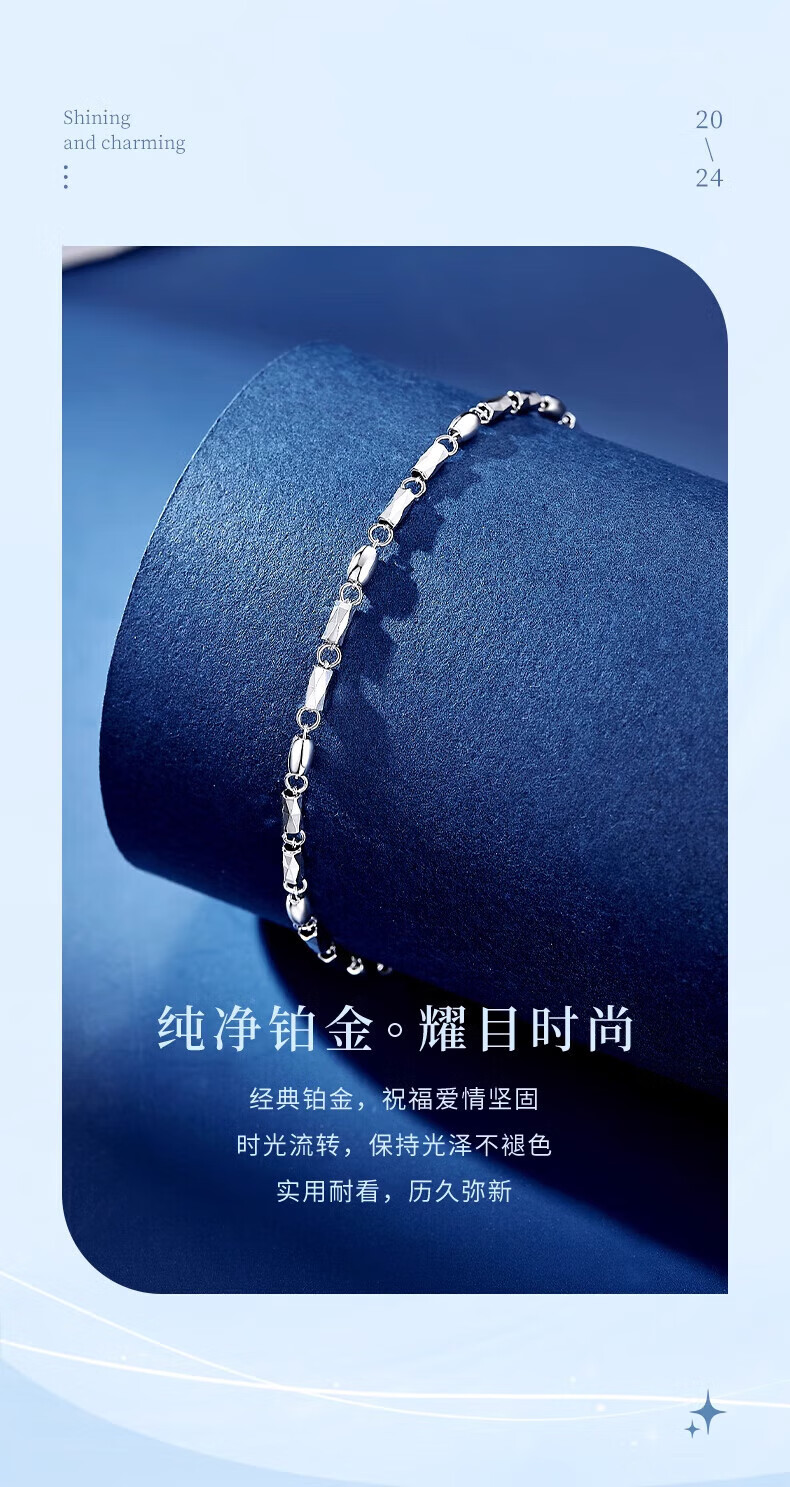 Lao Fengxiang pt950 platinum bracelet for women, platinum streamer bracelet, simple plain chain, Valentine's Day birthday gift for girlfriend and wife, platinum streamer bracelet, about 3.6g, brand gift box