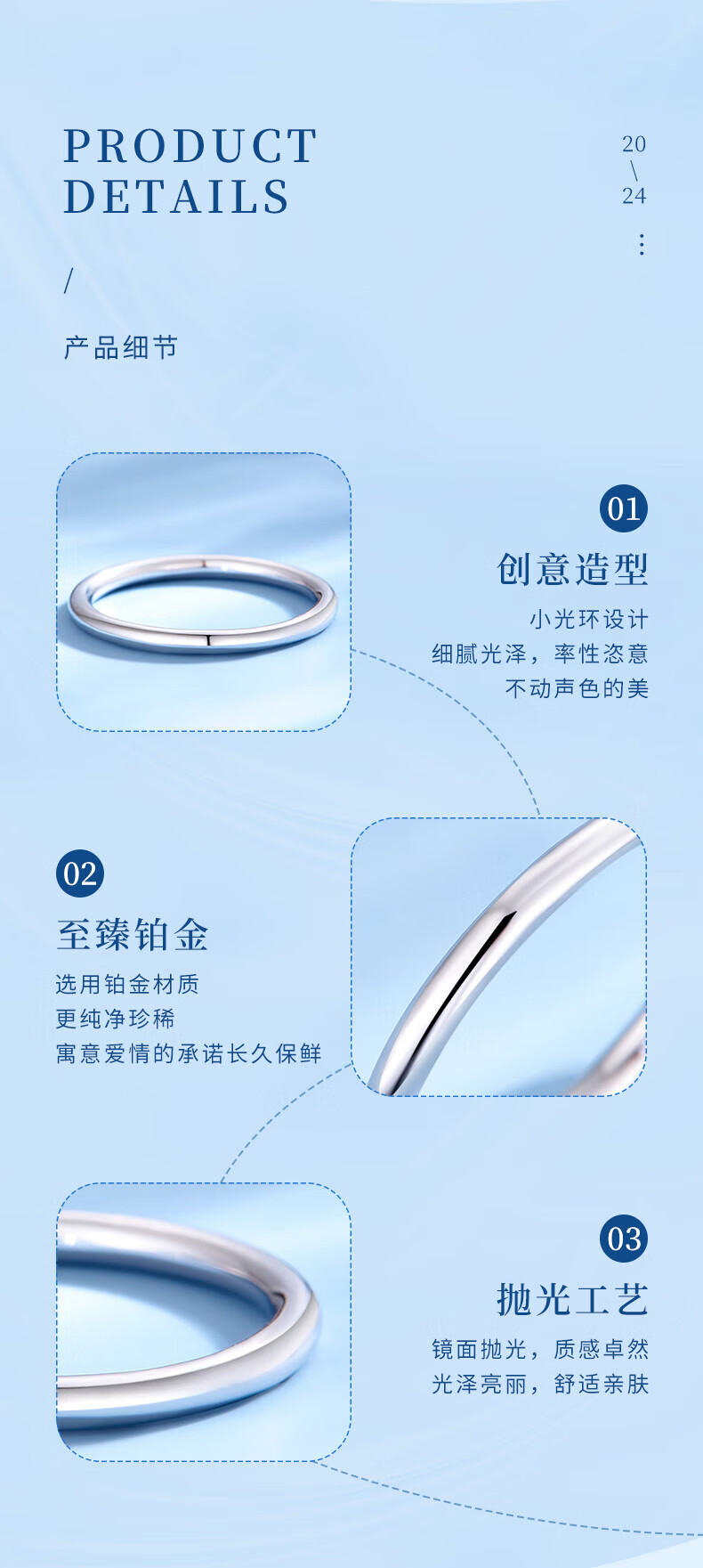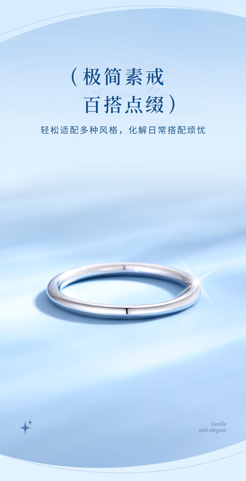 Lao Fengxiang pt950 platinum small aperture ring women's platinum ring ring Valentine's Day birthday gift for girlfriend and wife No. 10 platinum aperture ring about 1.4g