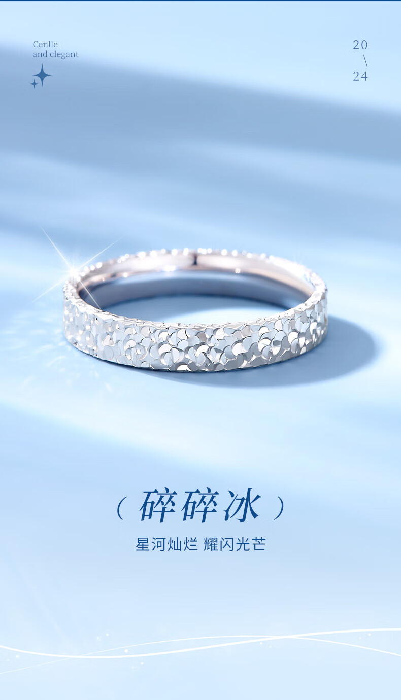 Lao Fengxiang pt950 platinum ring for women, platinum crushed ice ring, ring ring, Valentine's Day birthday gift for girlfriend and wife, No. 10 platinum crushed ice ring, about 4.4g