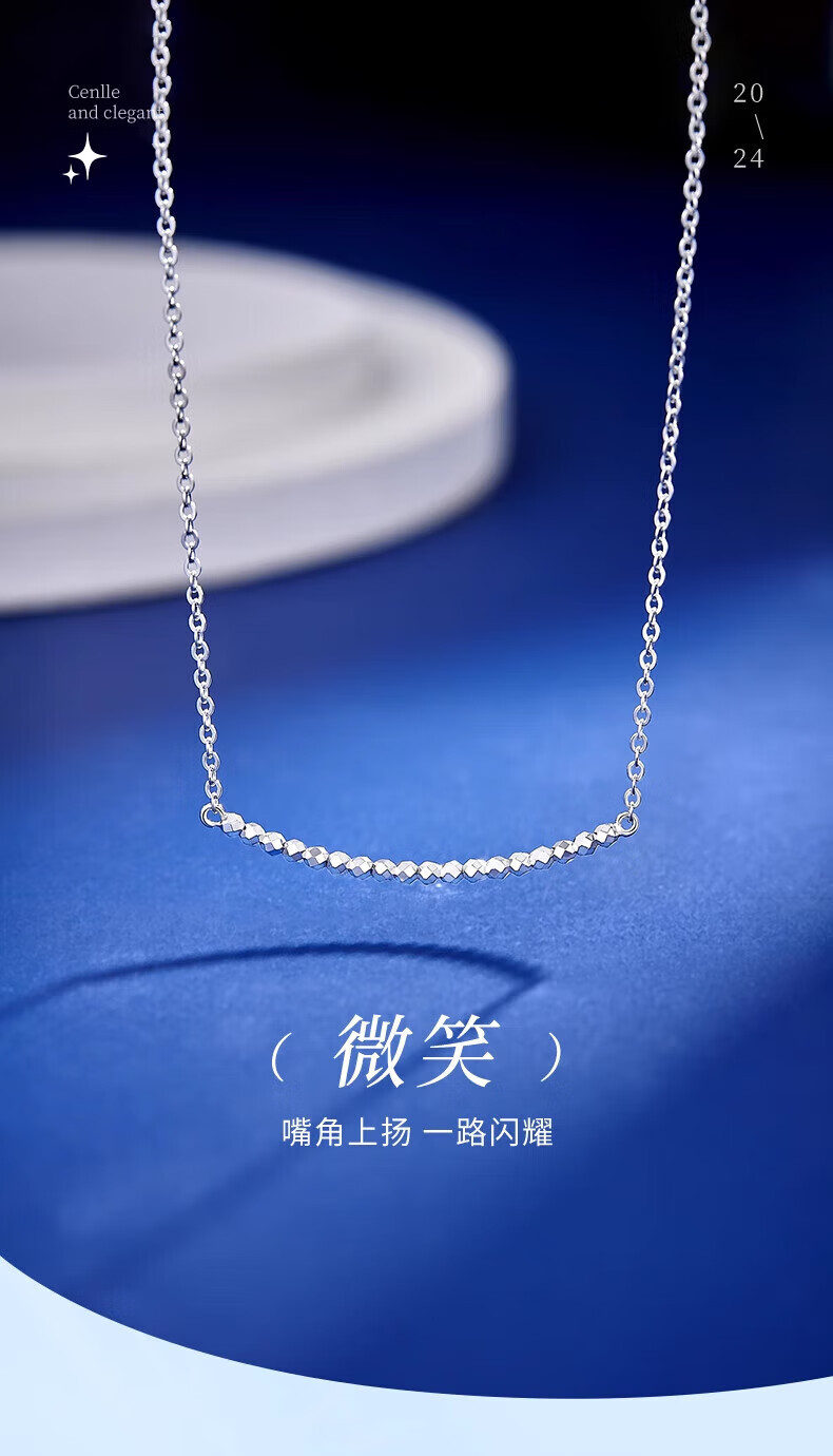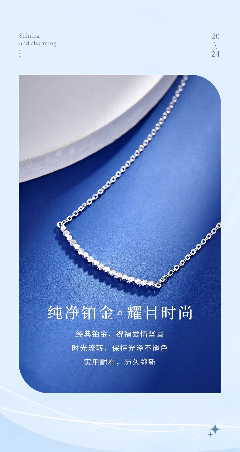 Lao Fengxiang Bundy Beads Platinum Necklace for Women PT950 Smiling Platinum Set Chain Clavicle Chain Wedding and Birthday Gift for Girlfriend Platinum Bundy Beads Set Chain Approximately 3.6g Brand Gift Box