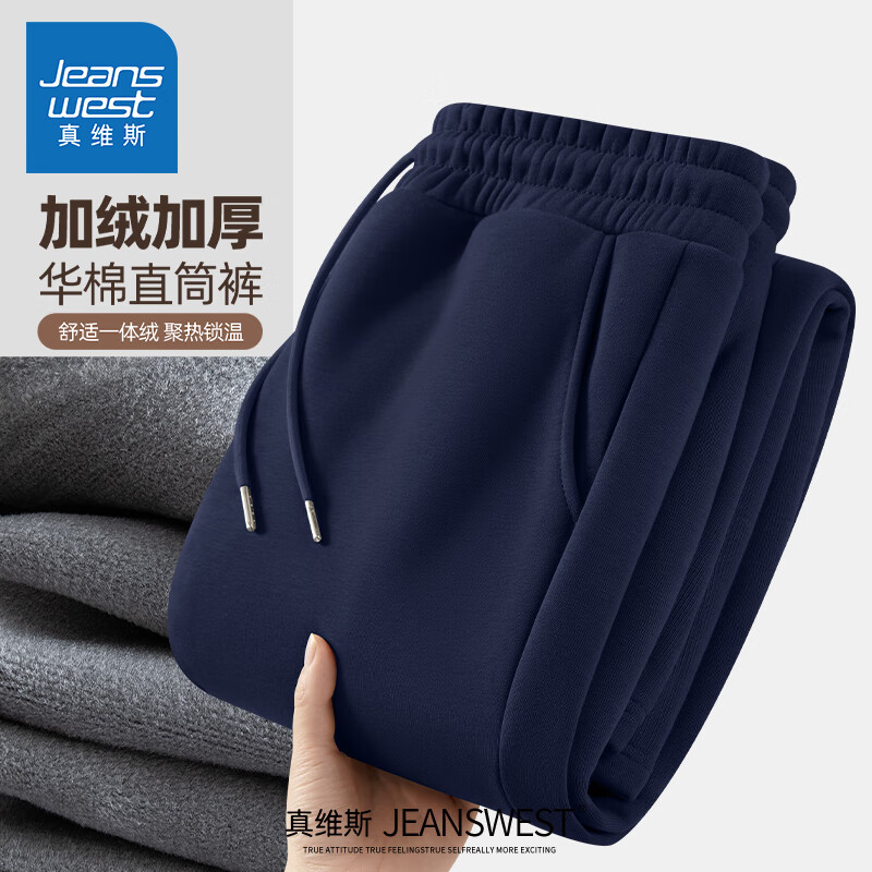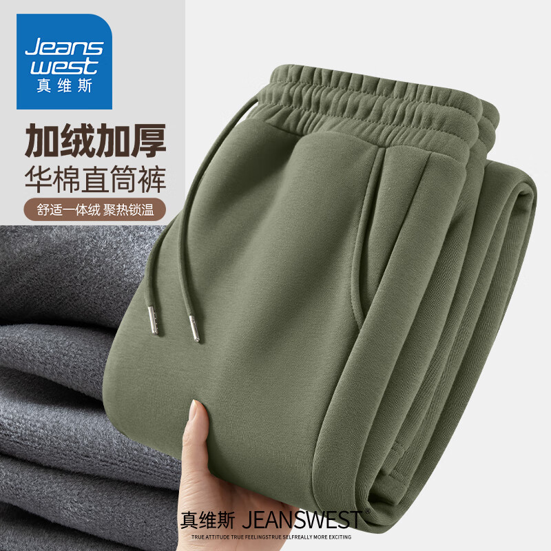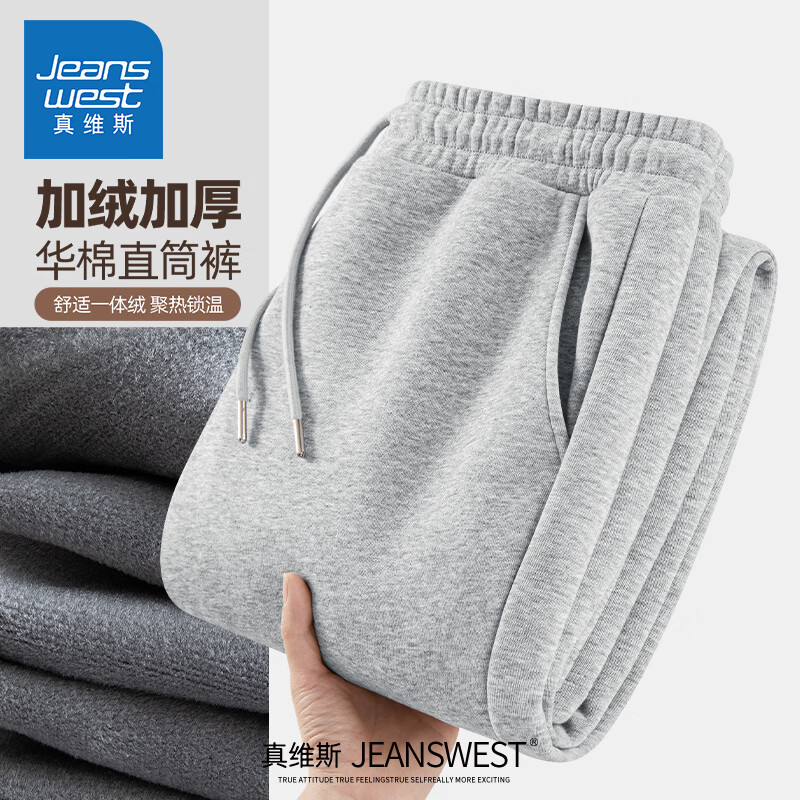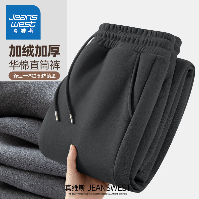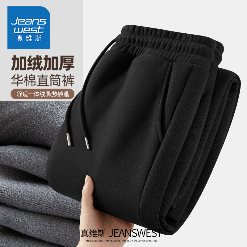 Jeanswest black velvet casual pants for men in winter, thickened warm sports pants for teenagers, loose casual straight pants, velvet straight pants, black (solid color) XL (180) (not easy to pill and not easy to fade)