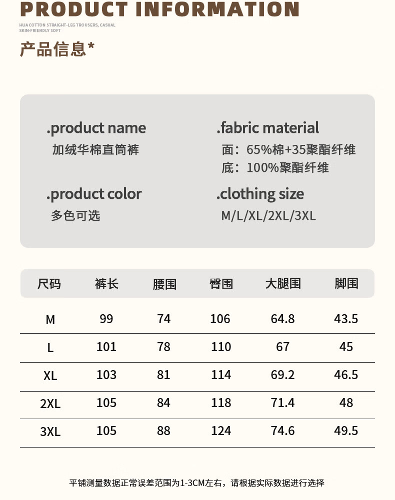 Outseam (cm) 99 cm 101.5 cm 104 cm 106.5 cm 109 cm