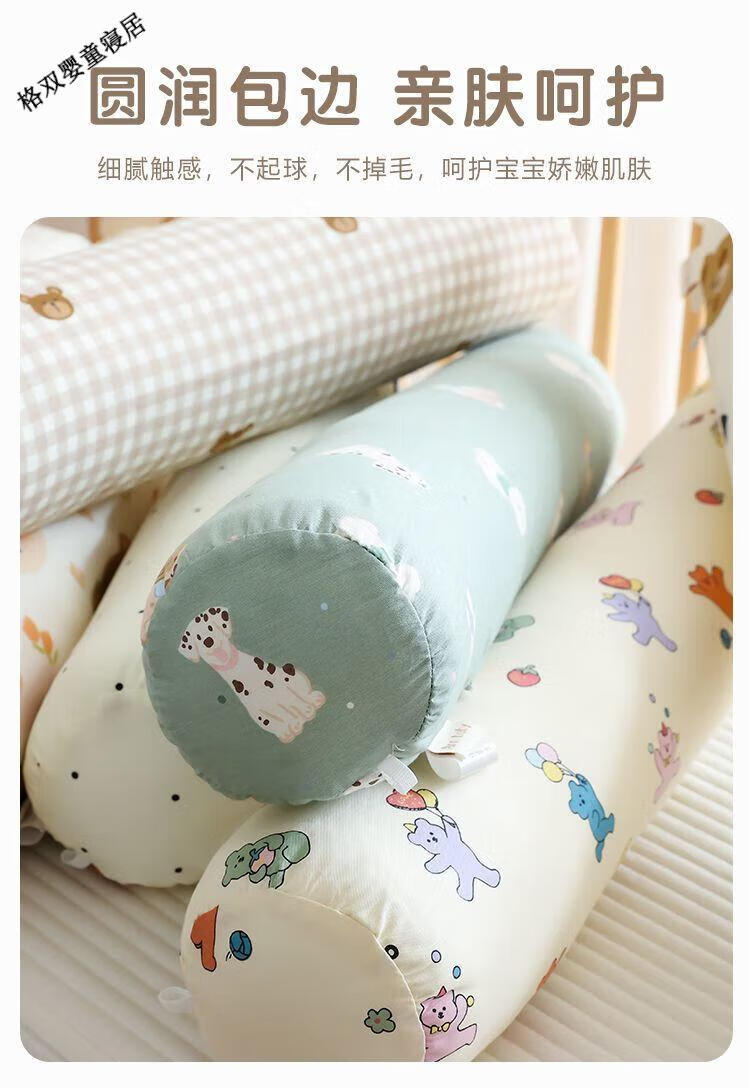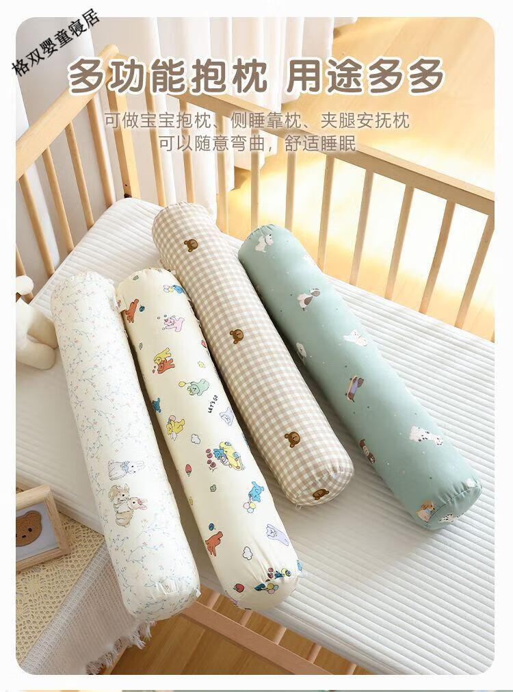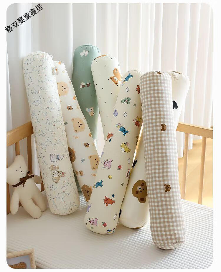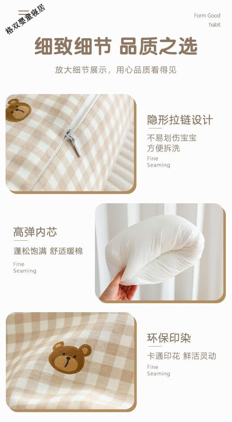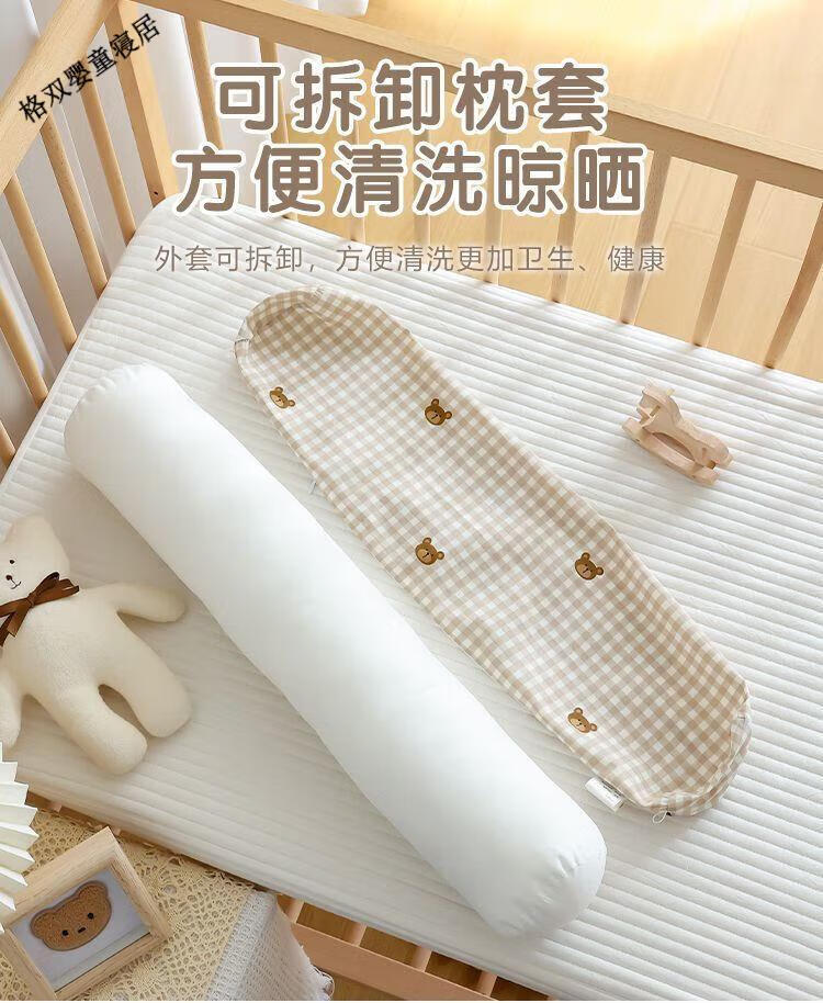 Disney baby pillow pure cotton soothing side sleeping leg clamp cylindrical long pillow newborn baby bed fence anti-collision removable and washable plaid bear-coat + liner 60x11cm