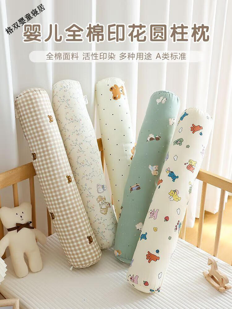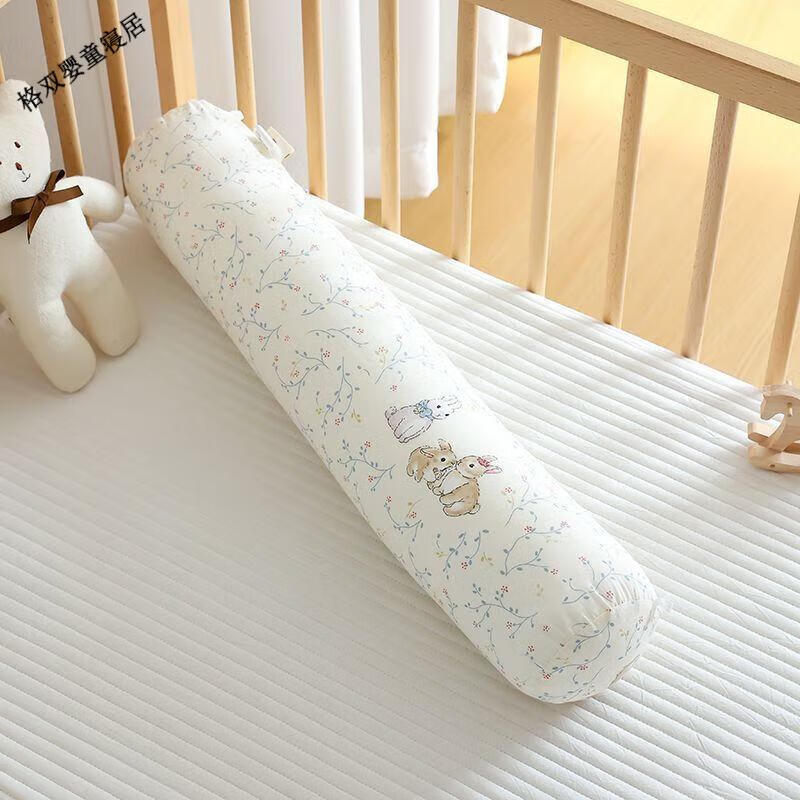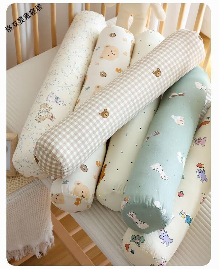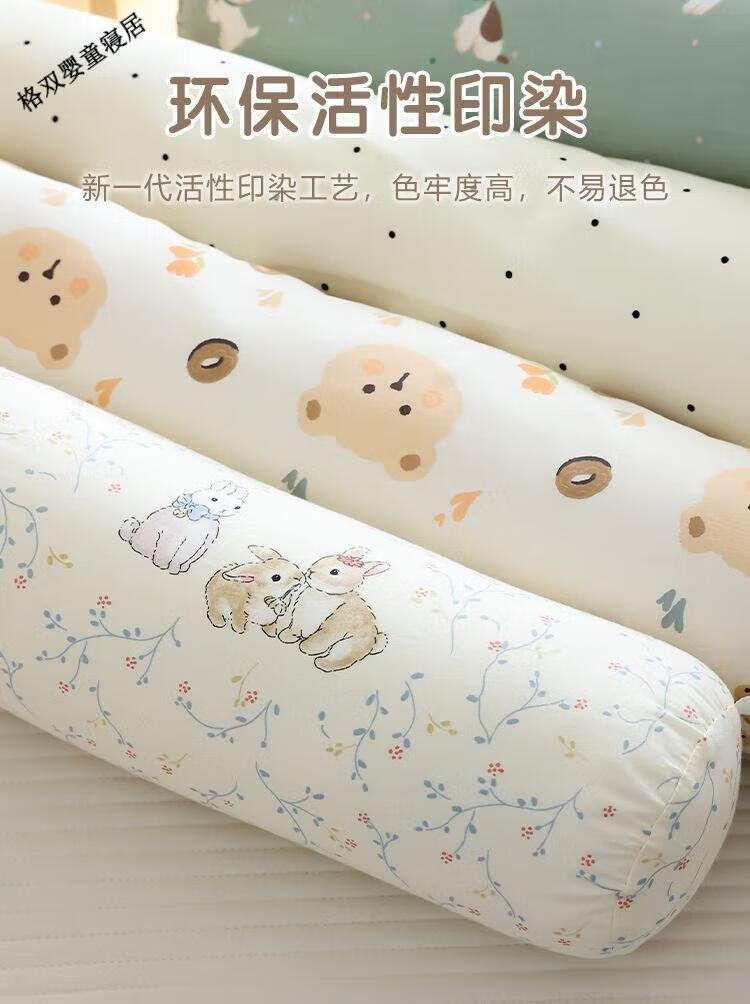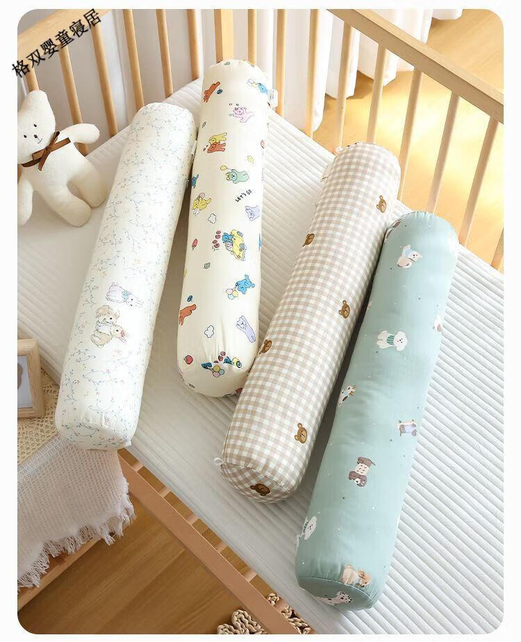 Disney baby pillow pure cotton soothing side sleeping leg clamp cylindrical long pillow newborn baby bed fence anti-collision removable and washable plaid bear-coat + liner 60x11cm