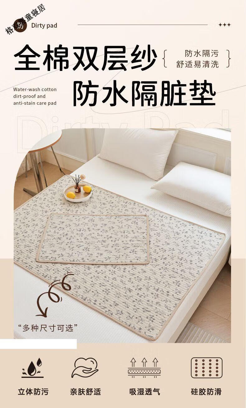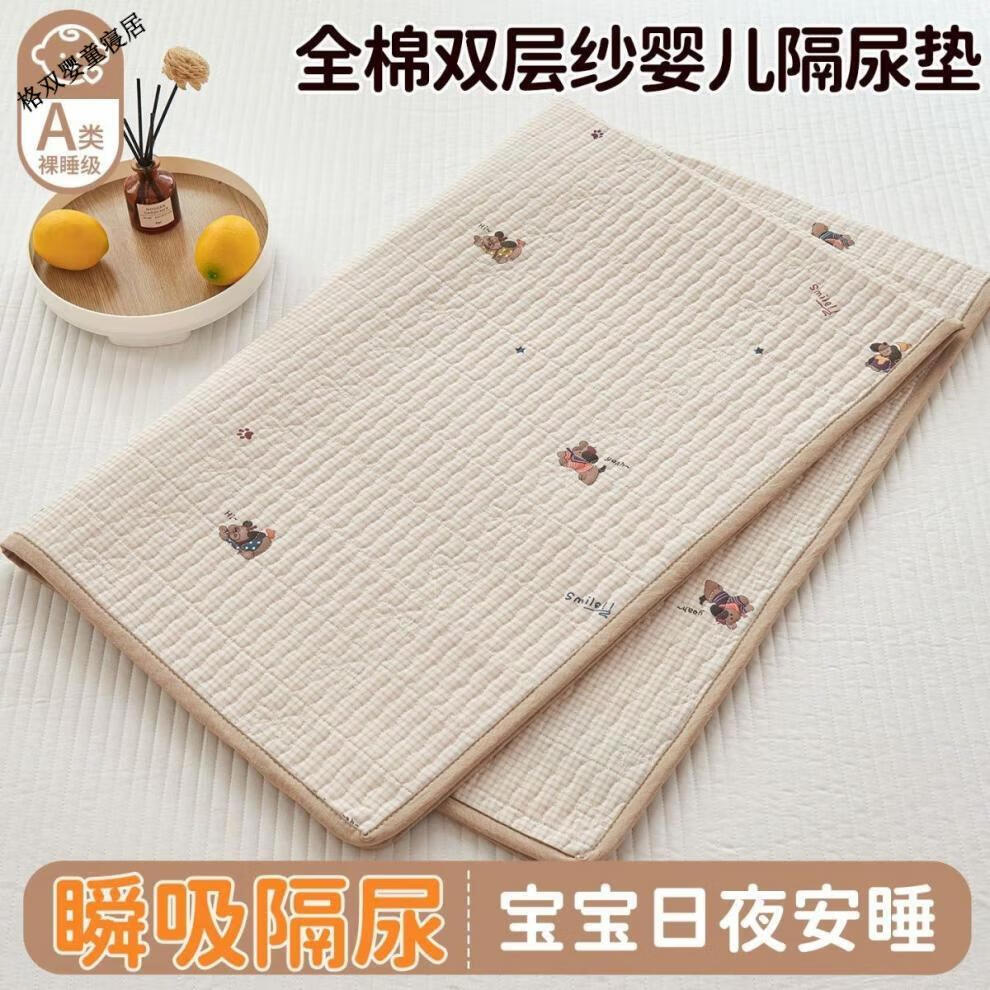 Disney (Disney) Class A cotton double-layer gauze baby diaper pad waterproof pure cotton breathable baby sheet overnight diaper aunt mattress waterproof model-Doudou Good Friends Cotton double-layer gauze diaper pad 100x120cm