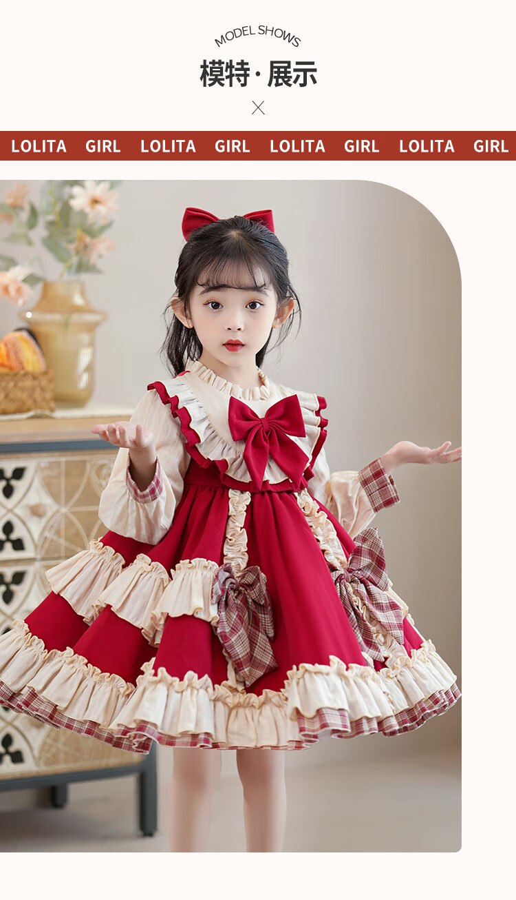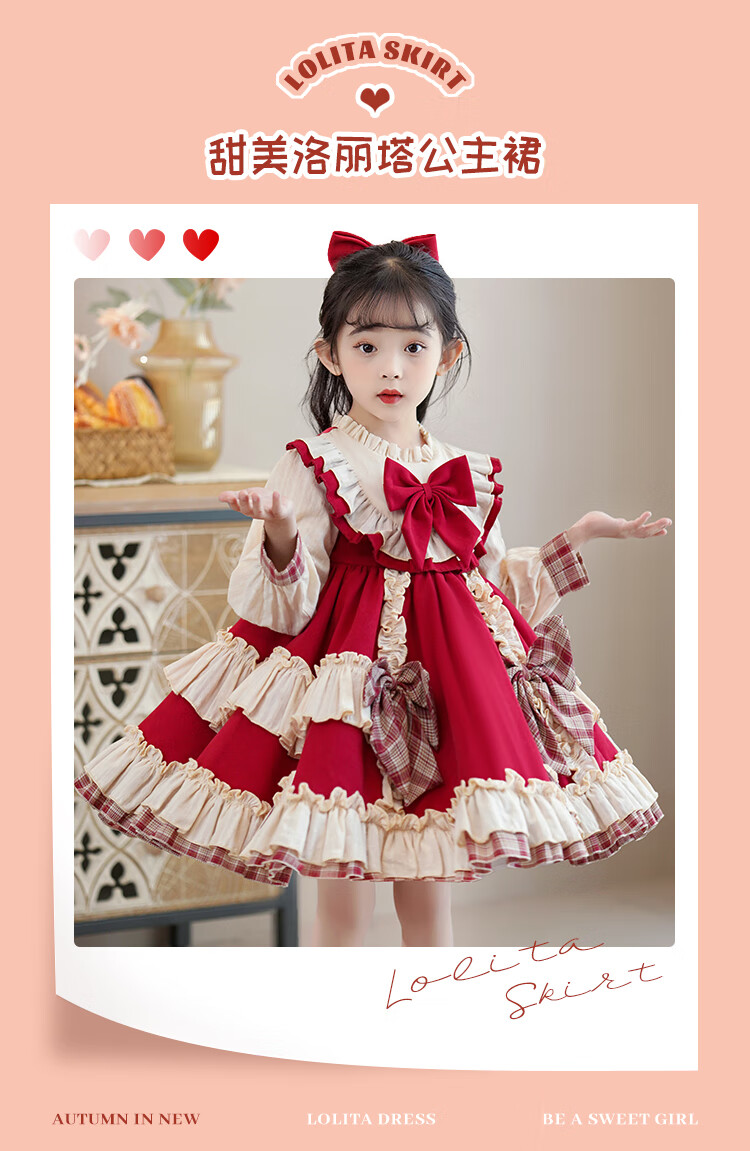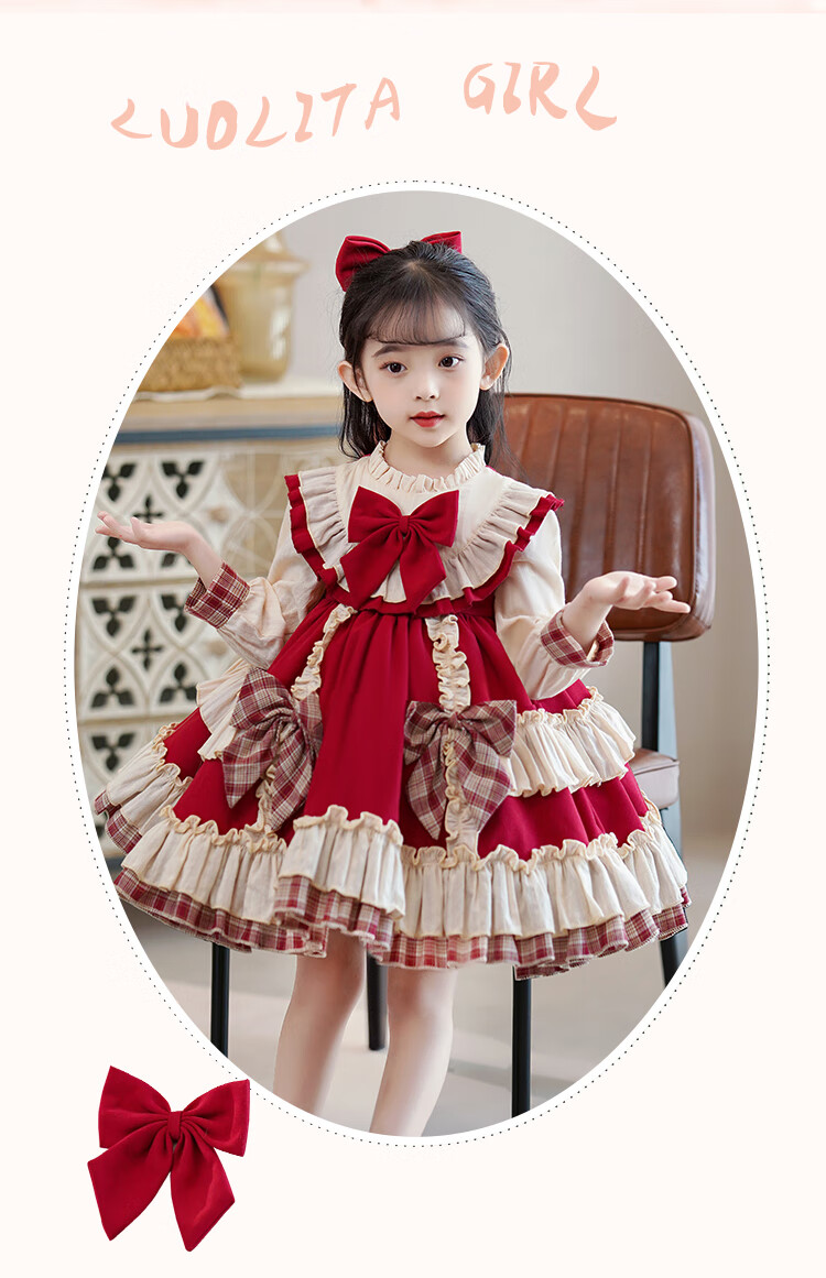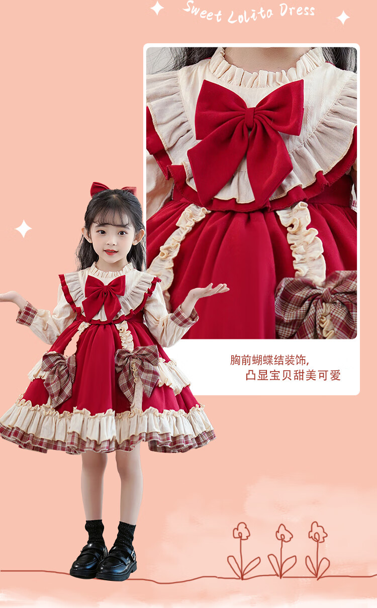 Lolita girls princess dress winter children autumn and winter skirt little girl winter dress plus velvet 2025 new style 2355 red plus velvet 150