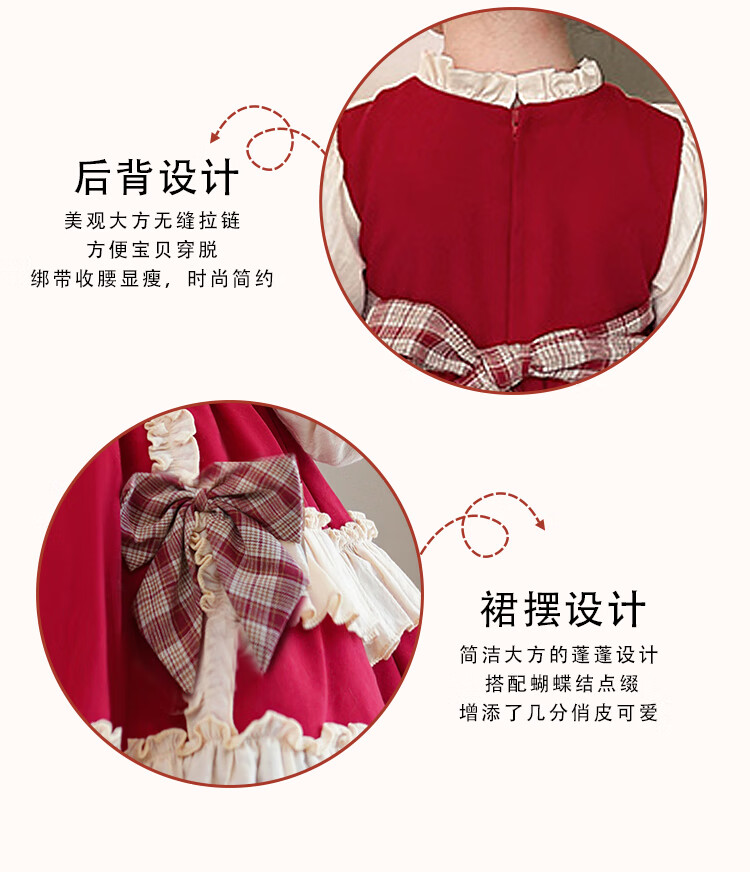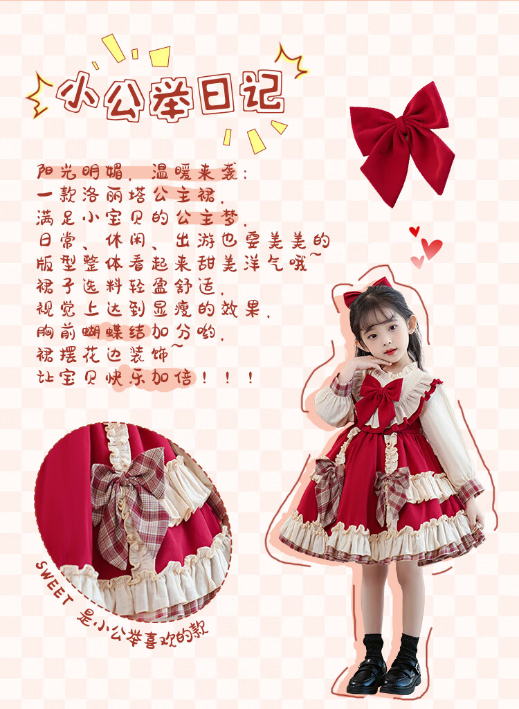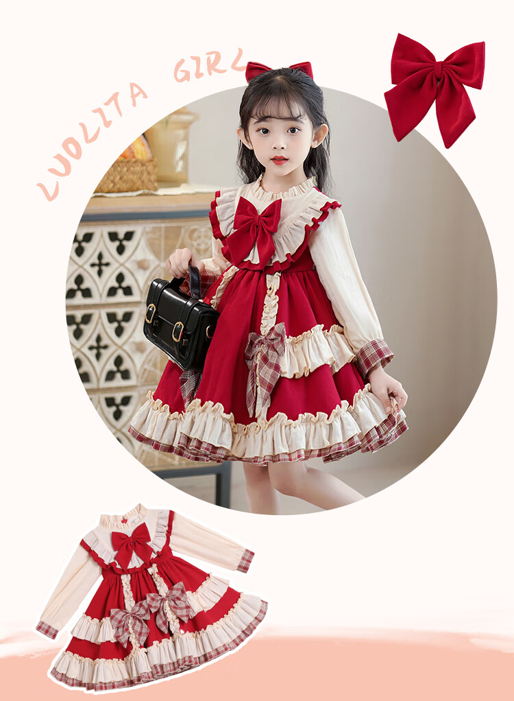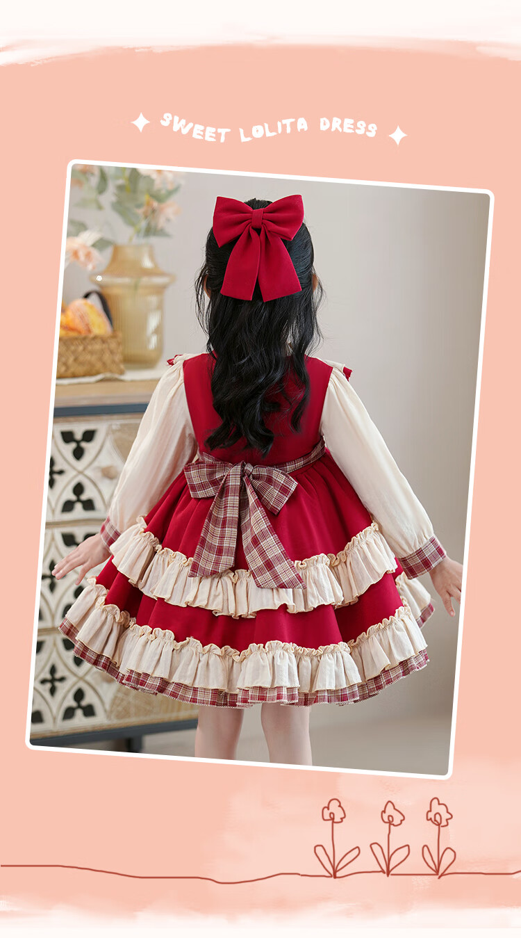 Lolita girls princess dress winter children autumn and winter skirt little girl winter dress plus velvet 2025 new style 2355 red plus velvet 150