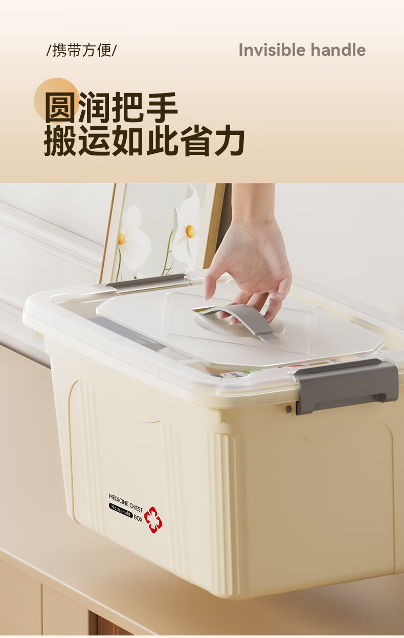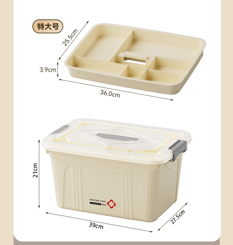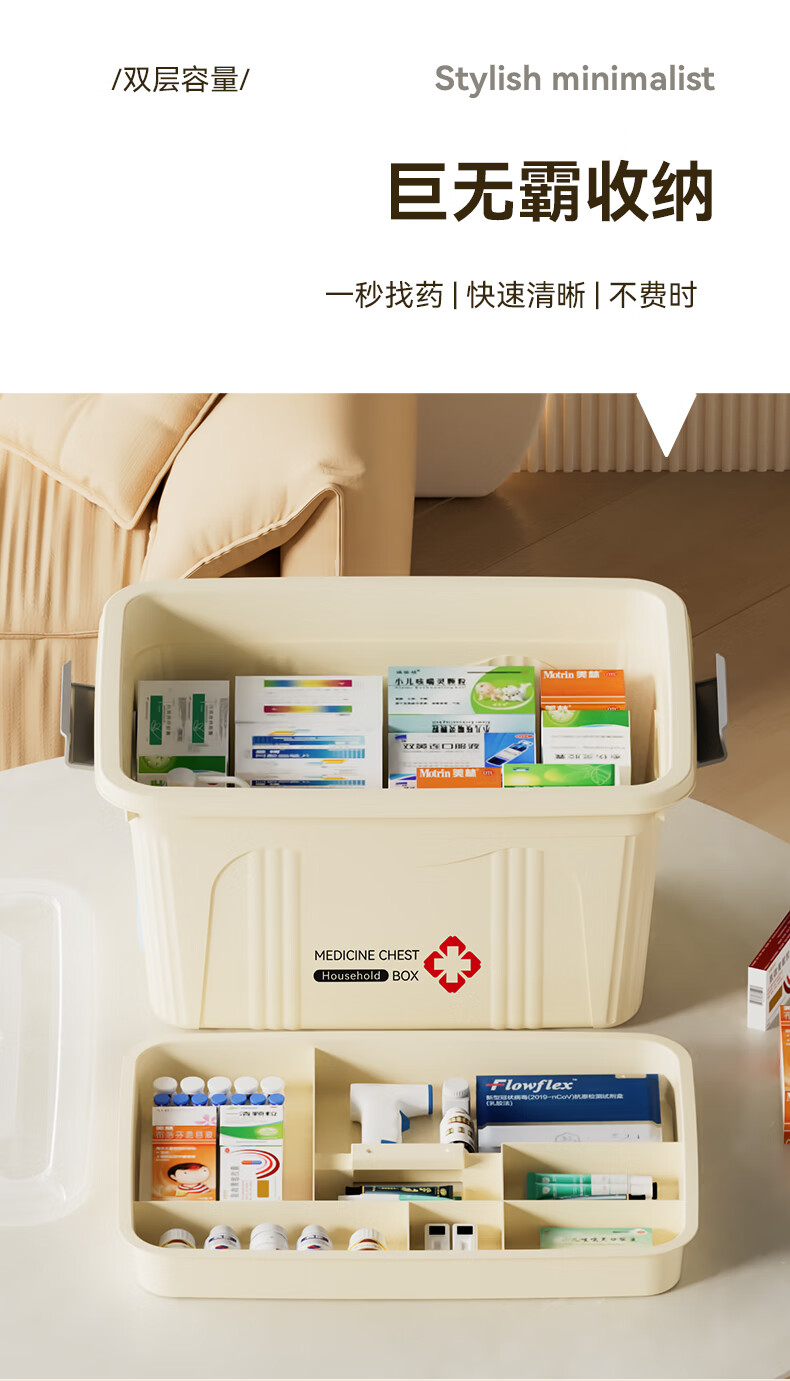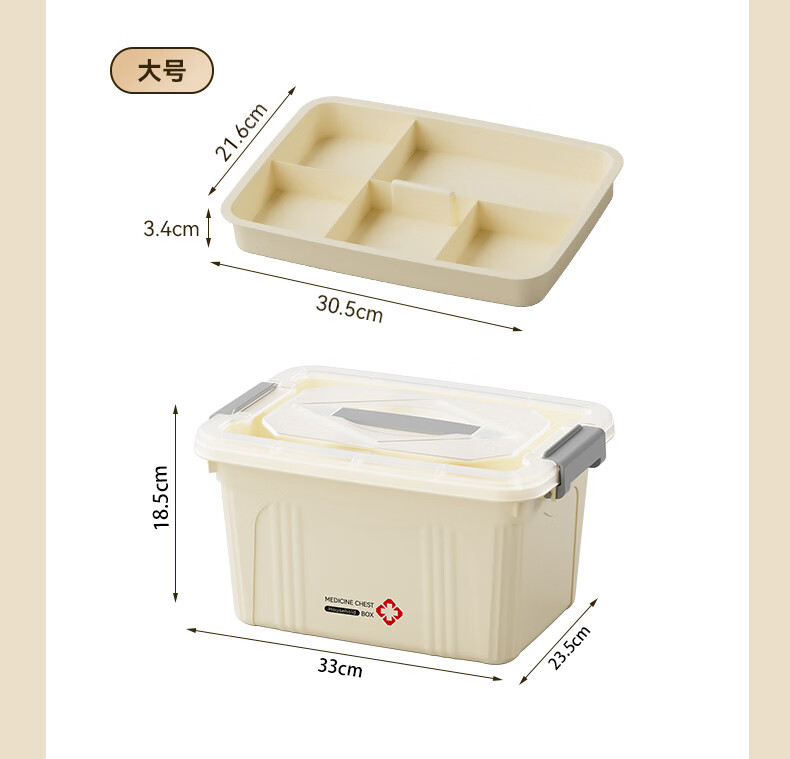 Large medicine box with lid for household clothes, toys, snacks, books, portable storage box, large capacity plastic organizing box 33*23.5*18.5cm medium layered medicine box
