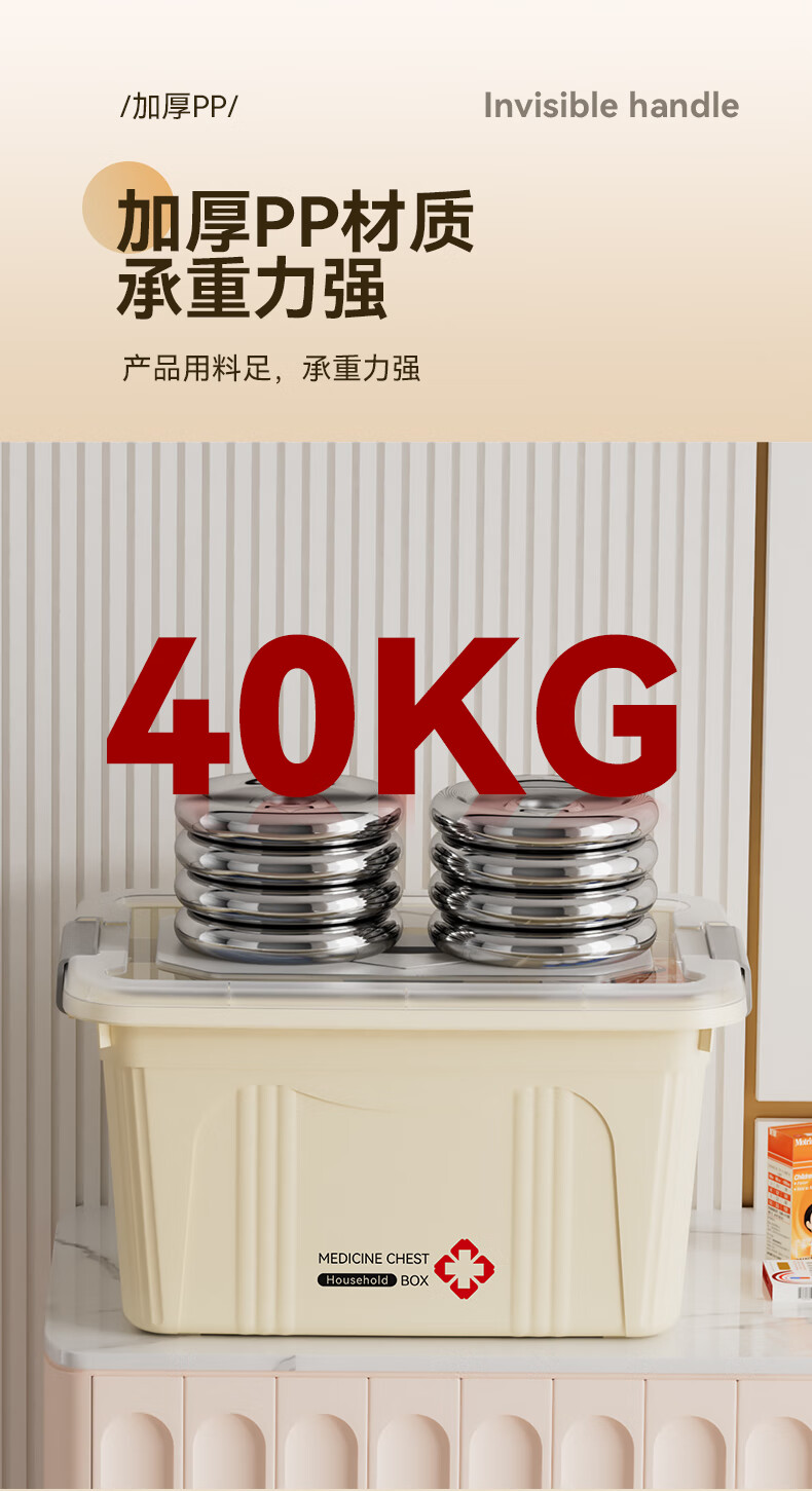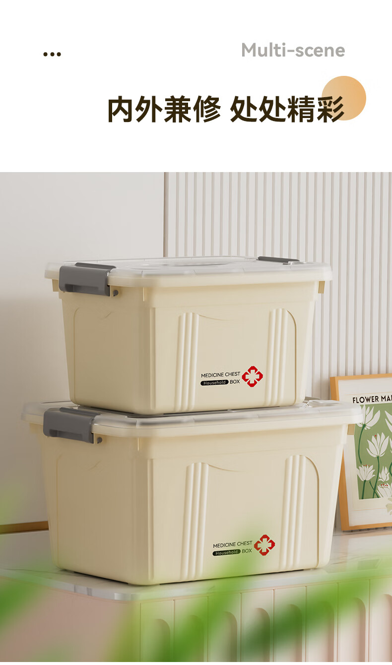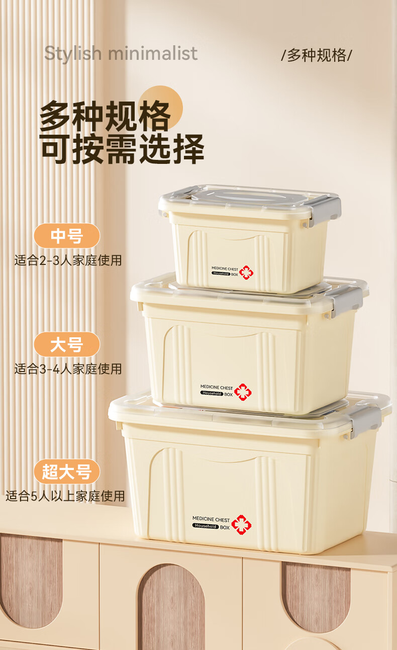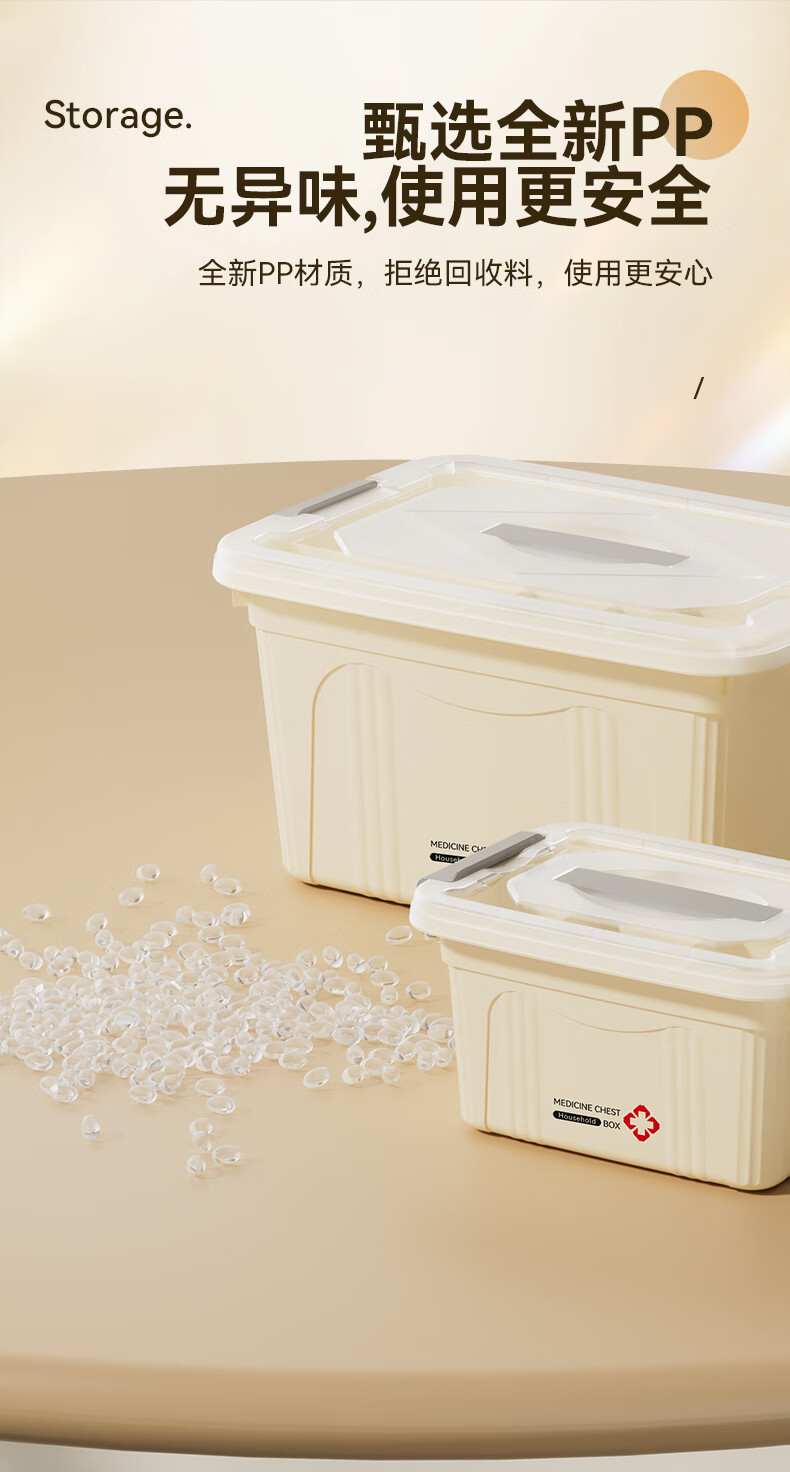 Large medicine box with lid for household clothes, toys, snacks, books, portable storage box, large capacity plastic organizing box 33*23.5*18.5cm medium layered medicine box