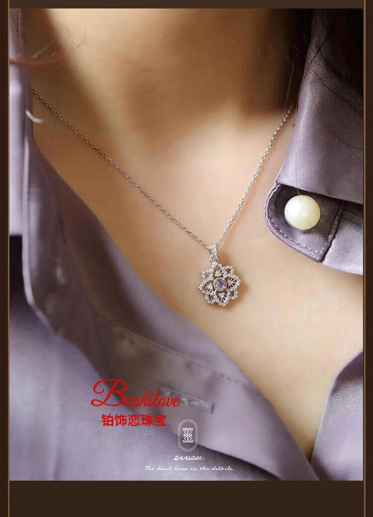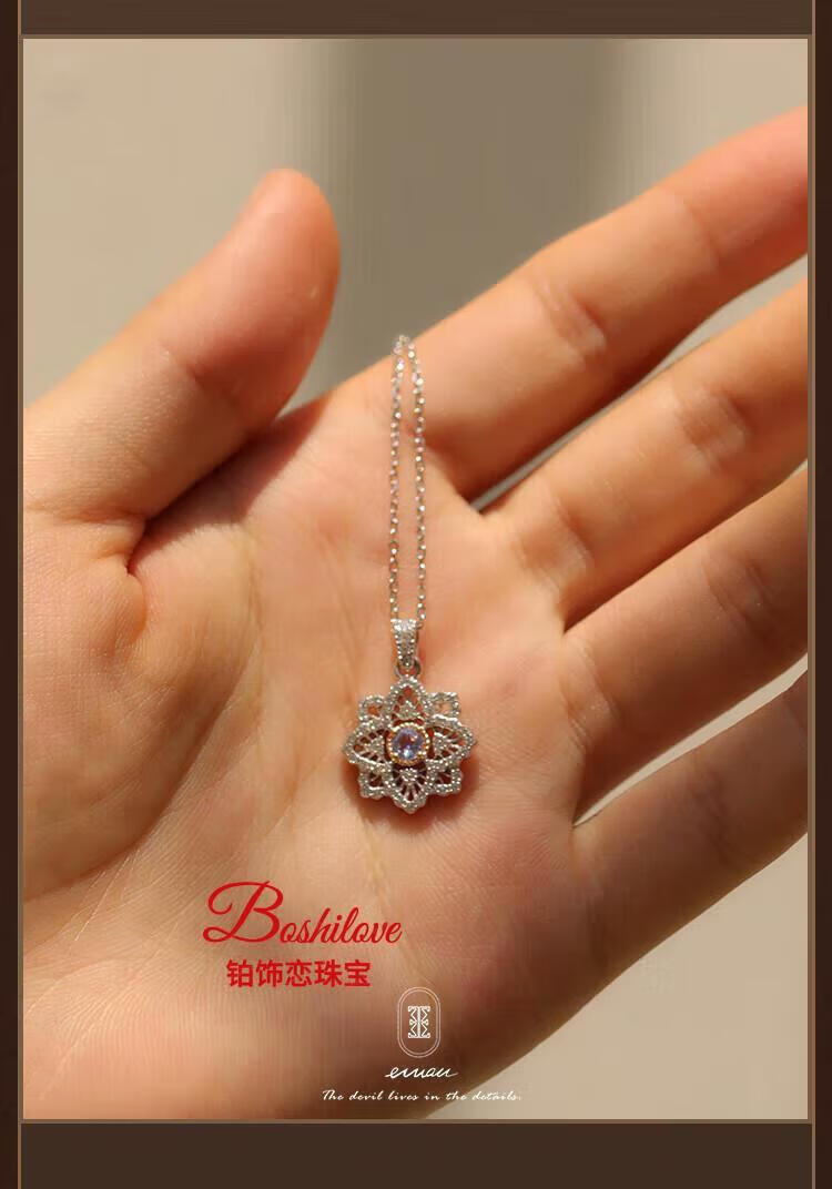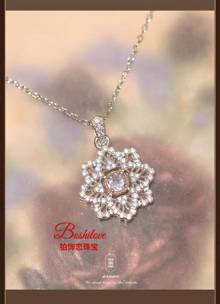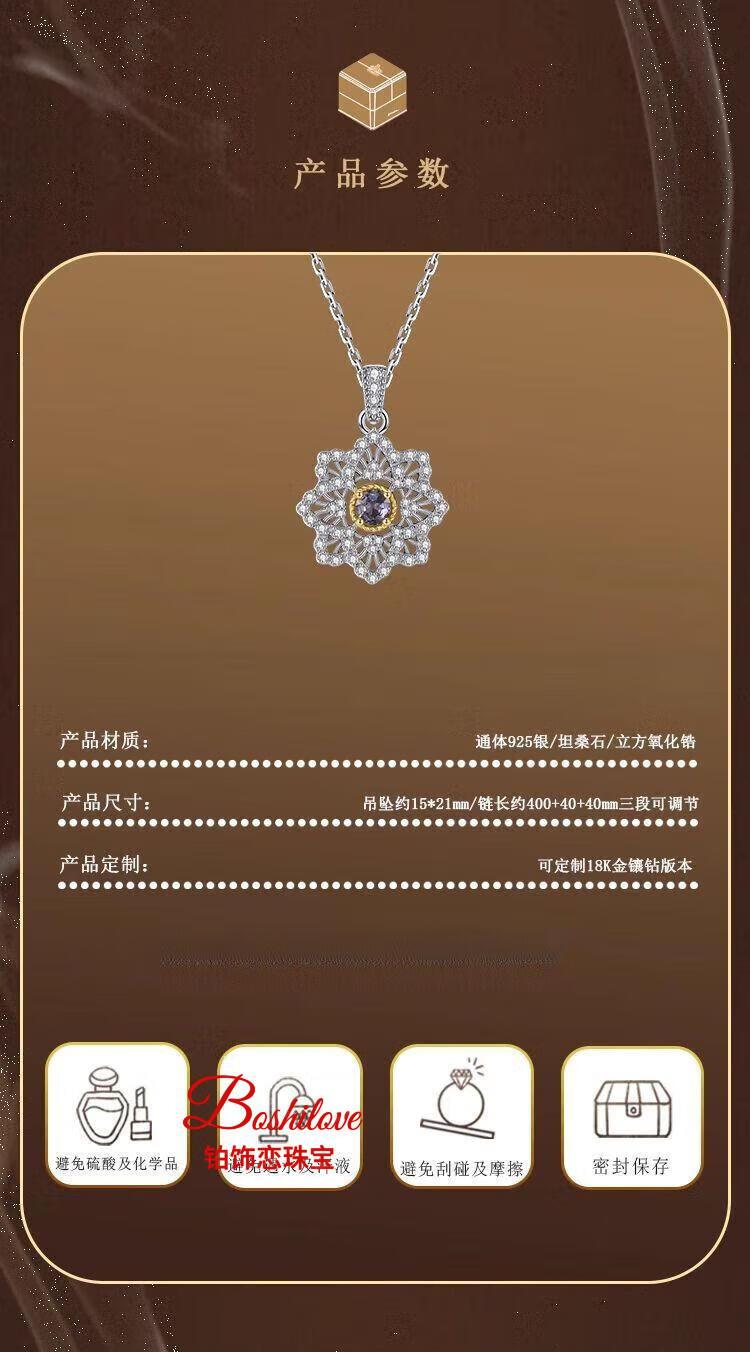 Nayu Tanzanite Necklace Les Kloffman Retro Lace Four-Leaf Clover Silver Micro-Inlaid Clavicle Chain Gift 400+40+40mm Three Sections Adjustable