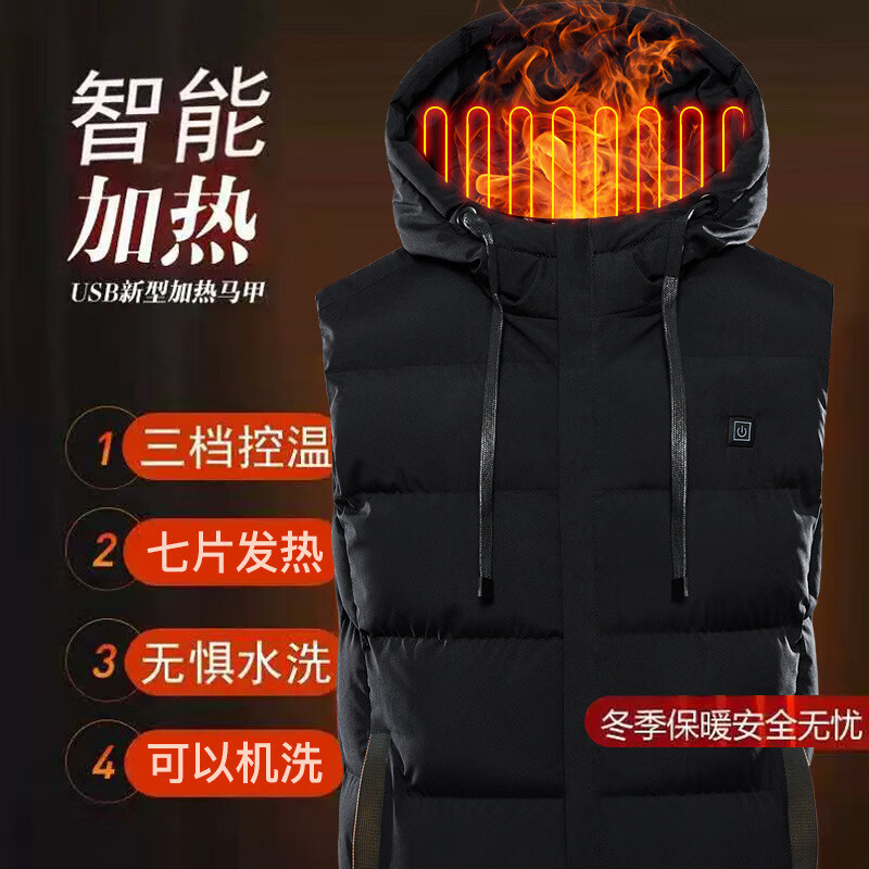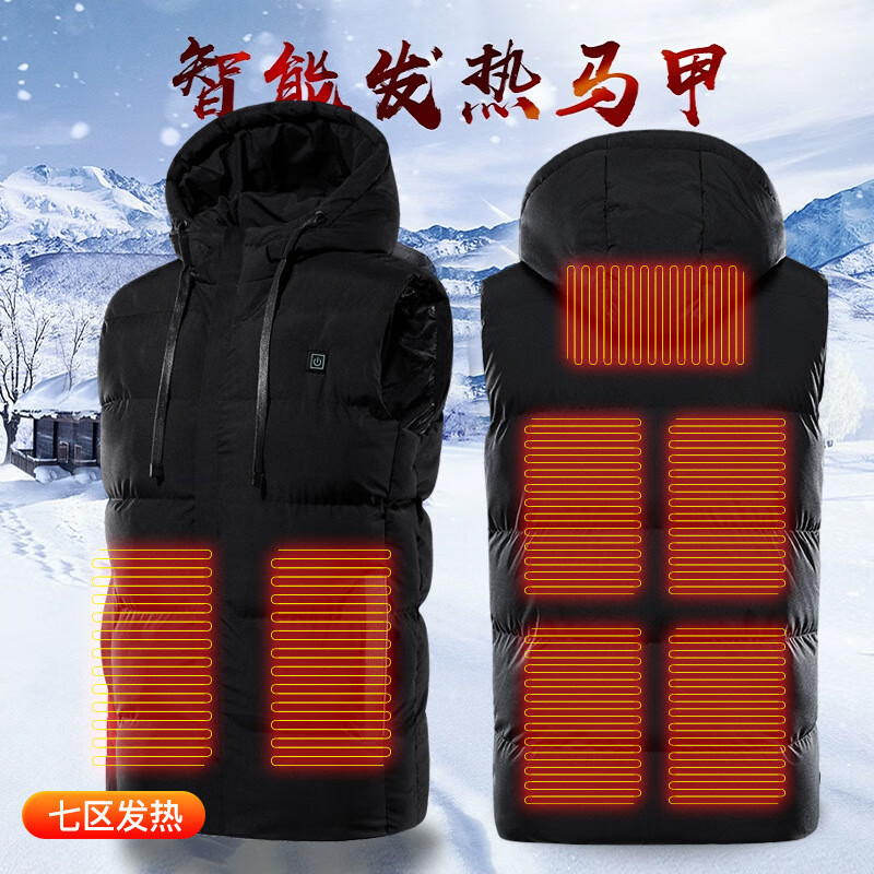 Heated cotton vest, heating vest, electric heating clothes, instant heating vest, outdoor fishing protection, dark blue 9 zone heating 7XL