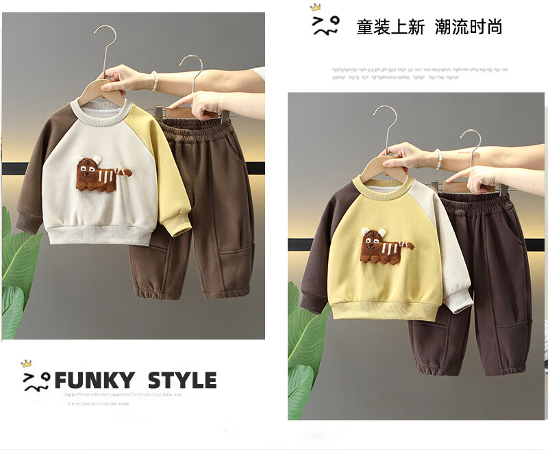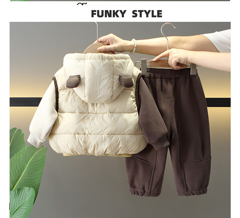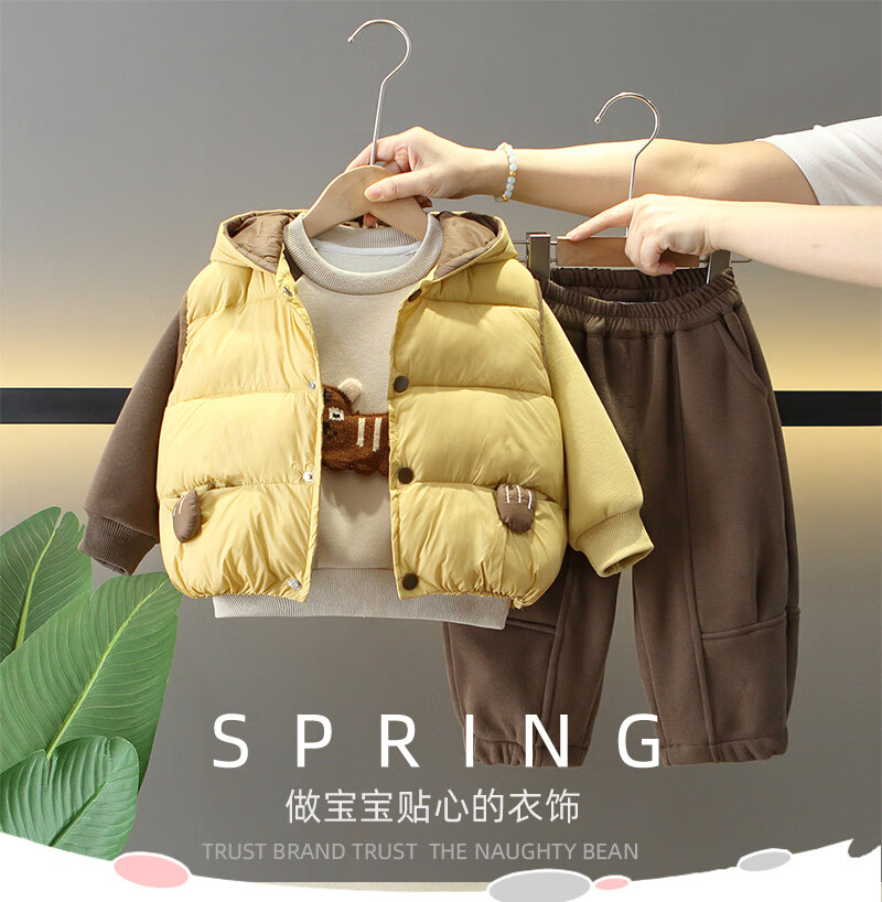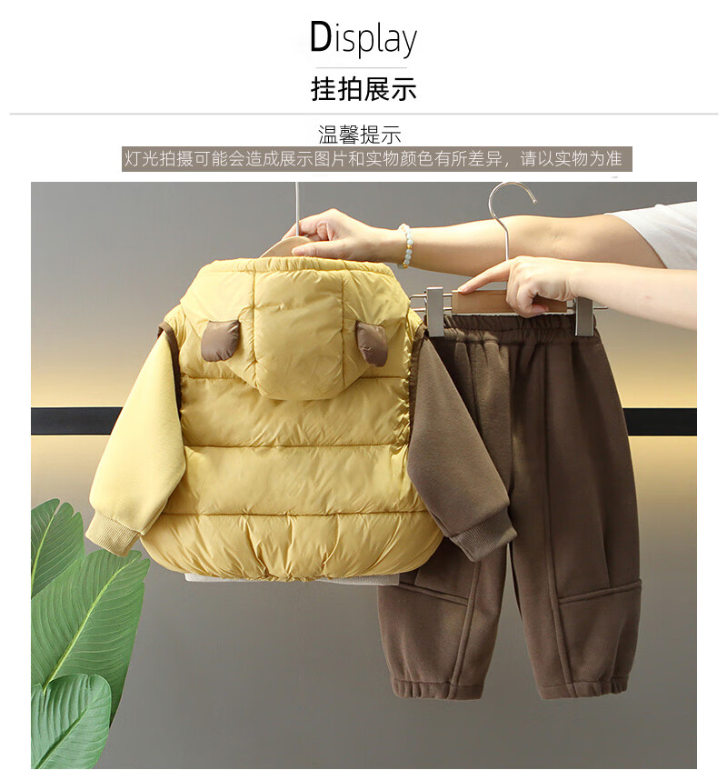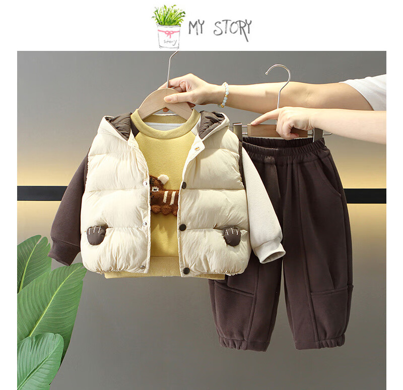 G.duck Little Yellow Duck Boys Winter Clothes Plush Three-piece Set 2025 New Beige 120 cm