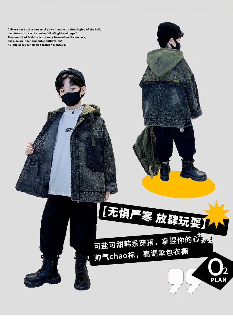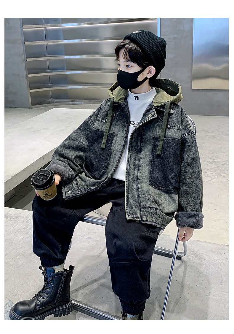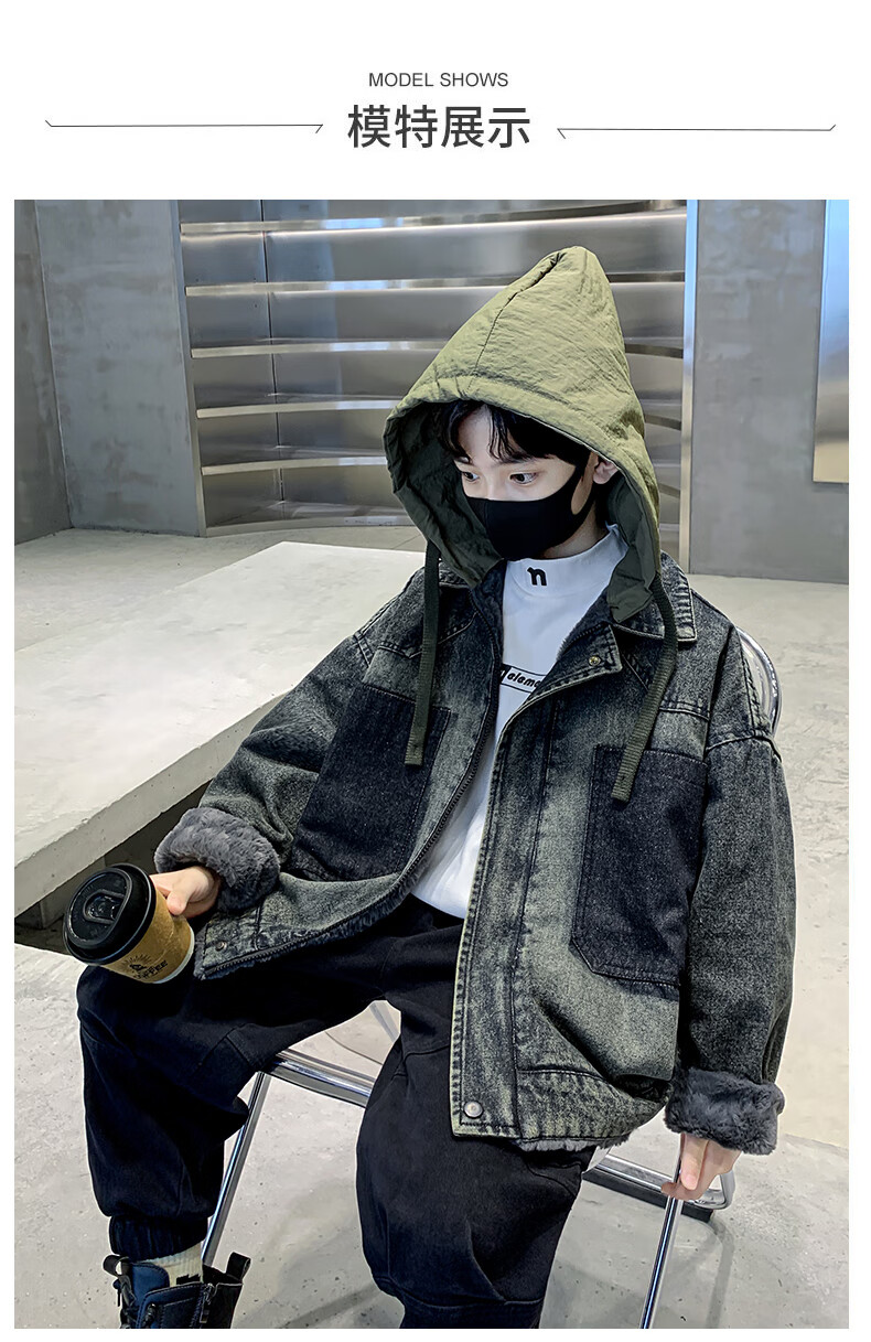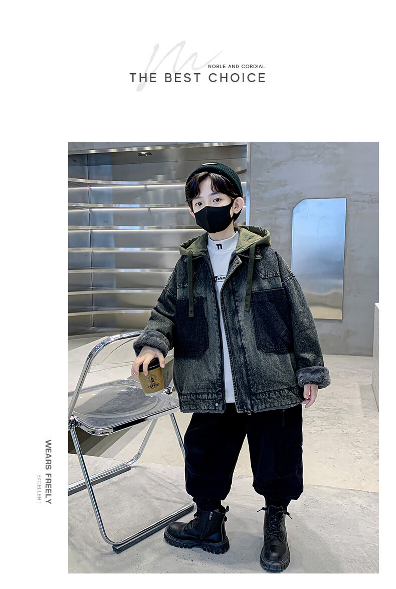 Zengzhi denim boys' velvet denim jacket autumn and winter 2025 new children's winter warm and thickened big children's winter jacket gray blue BB velvet thickened denim jacket 120
