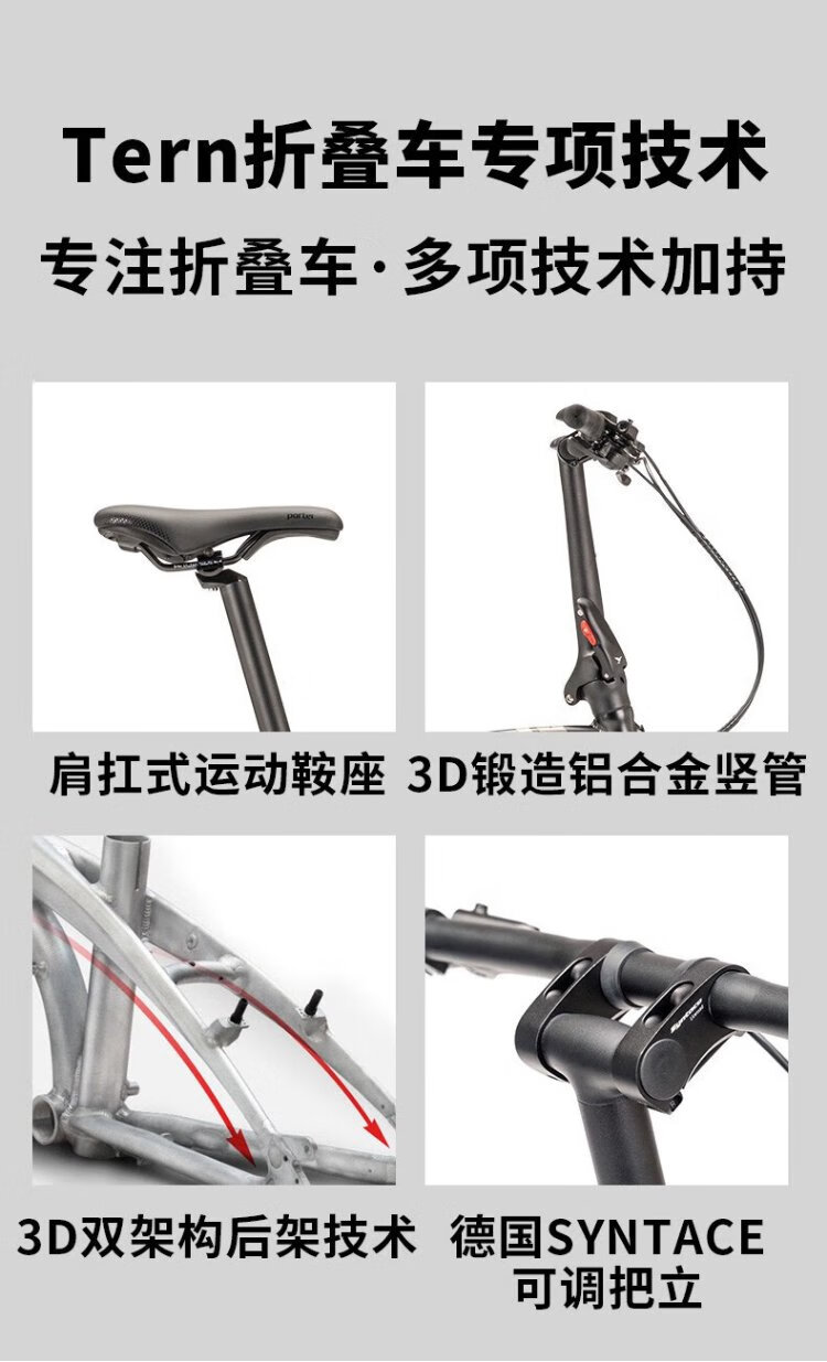 TERN Tern Verge D9 Folding Bike Adult Folding Bike Variable Speed Bike Folding Bike Silver Foil Color Upgraded Three Knife Classic Black-Concas Carbon