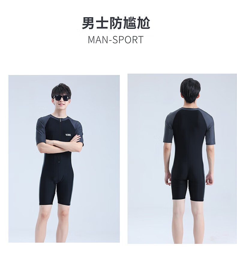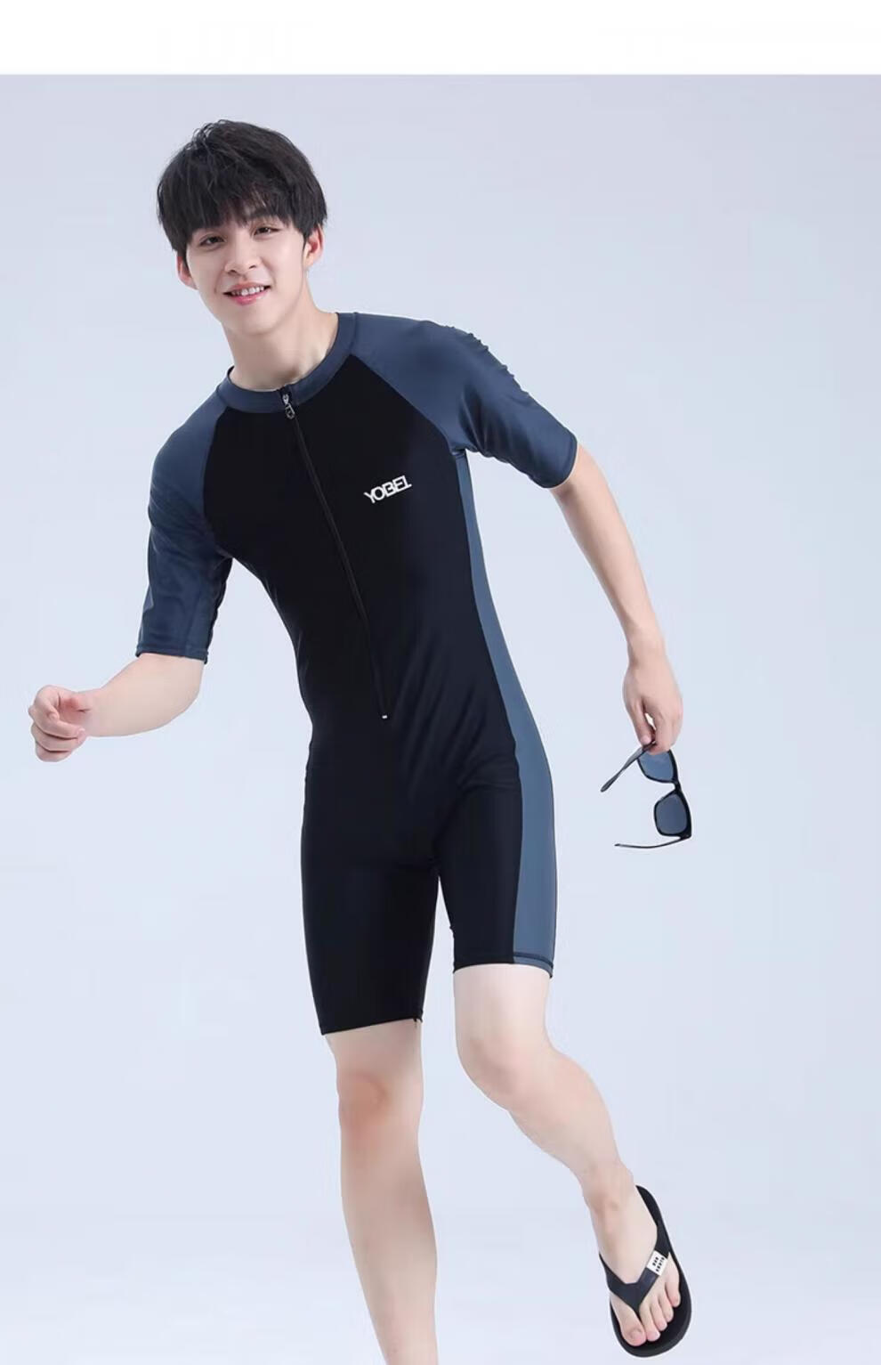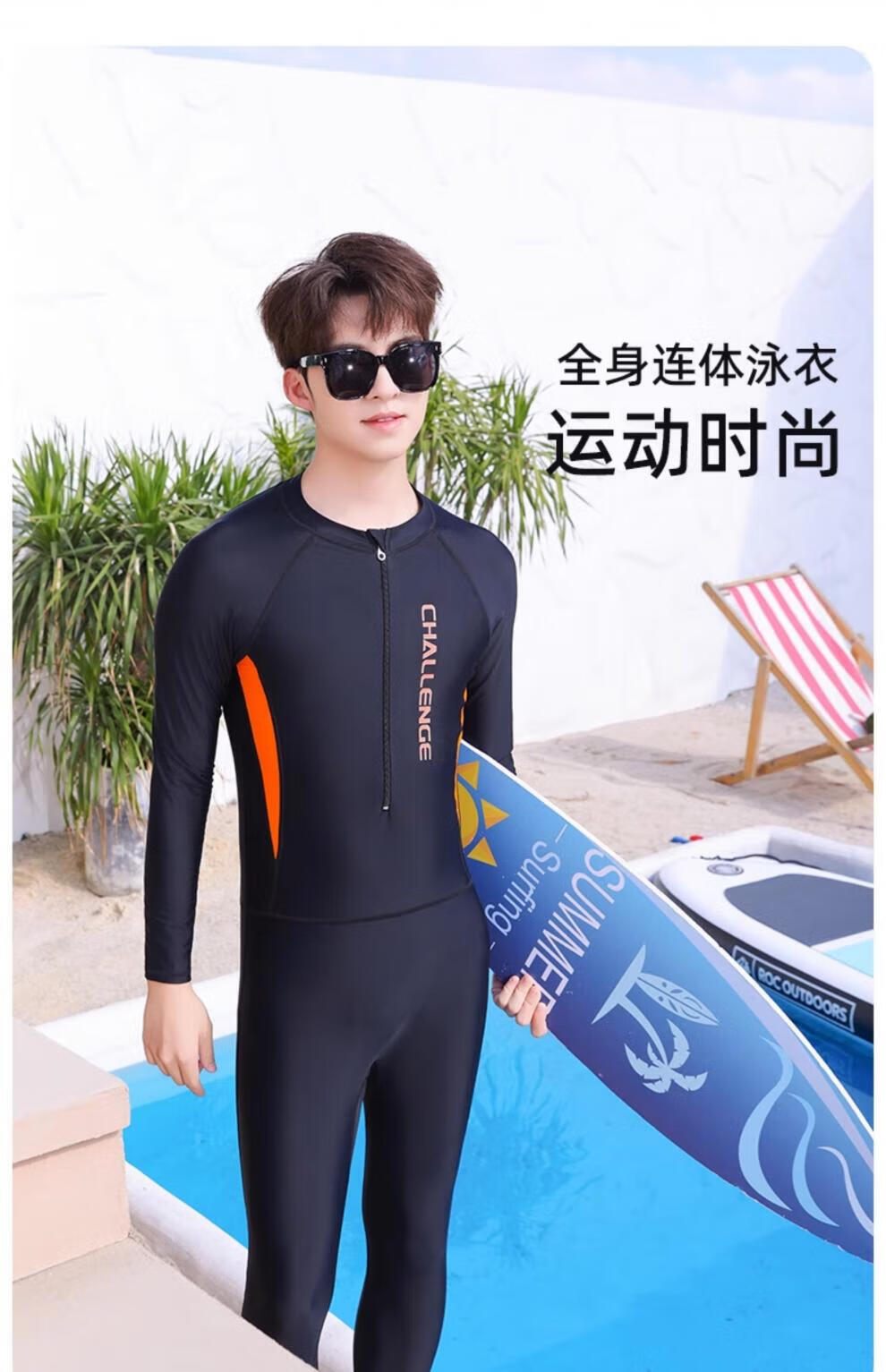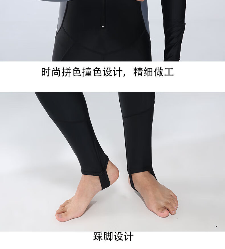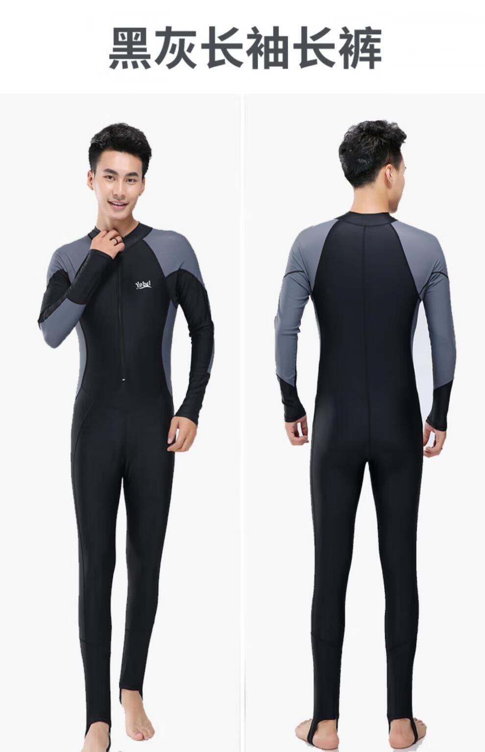 Zailu wetsuit men's one-piece swimsuit jellyfish long-sleeved trousers snorkeling full-body sun protection warm swimsuit plus size surfing black and gray long-sleeved + swimming cap + swimming goggles + ear plugs and nose clip M M recommended 98-115 Jin Jin is equal to 0.5 kg